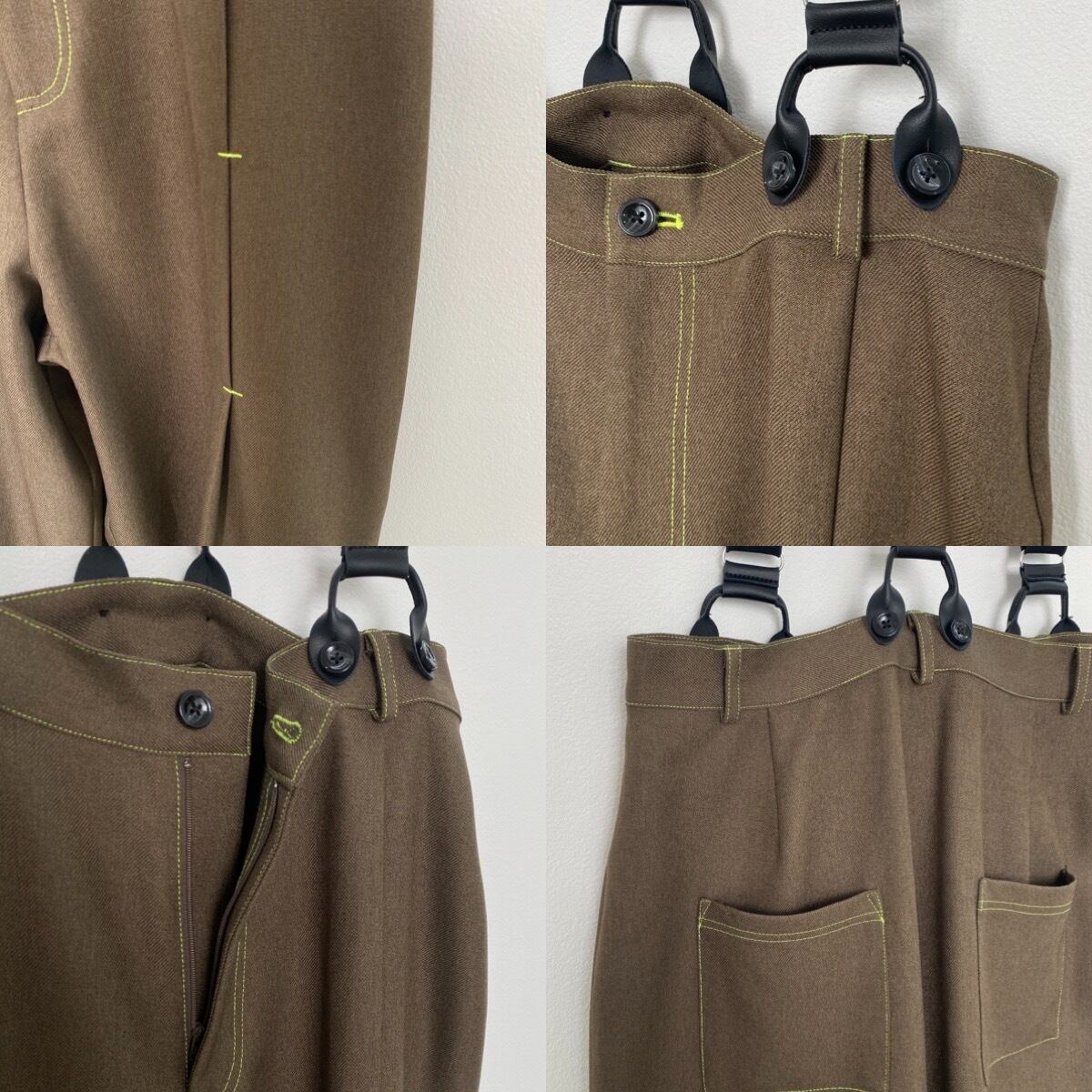2wayで着用頂ける万能サスペンダーパンツ。ほどよくしっかりとした上質な生地を使用している為、よりカーブラインのシルエットが協調されます。あえて違うカラーのステッチを施しコーデのポイントに。サスペンダーを使用しゆるッと着るのはもちろん、ウエストのボタンを切り替えるだけでハイウエストパンツとしても着用出来ます。コーデによって履く位置をチェンジしコーデをお楽しみいただけます。