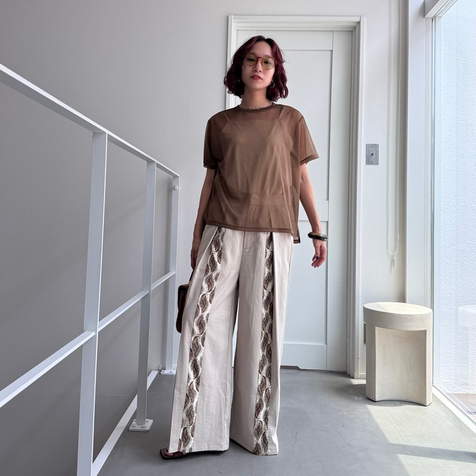 フロントのタックからペイズリー柄が施されたワイドパンツ。ほどよいハイウエストとフロントにタックデザインが入り、腰回りが膨らまないようなすっきりとしたシルエット。大人なペイズリー柄なので子供っぽくならずキレイ目なコーデにもピッタリ。シンプルなトップスに合わせても一気におしゃれコーデが完成します。