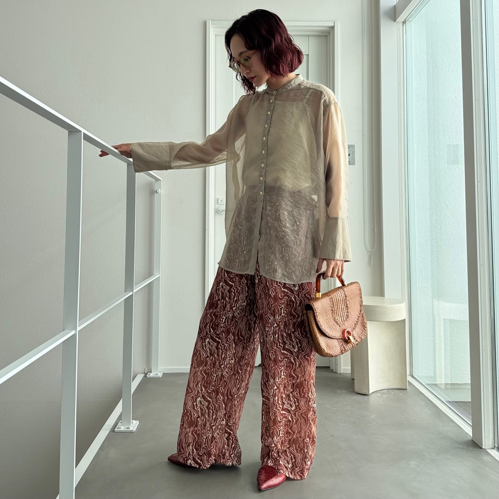 bottom:ウェーブペイント柄PT/オレンジブラウン