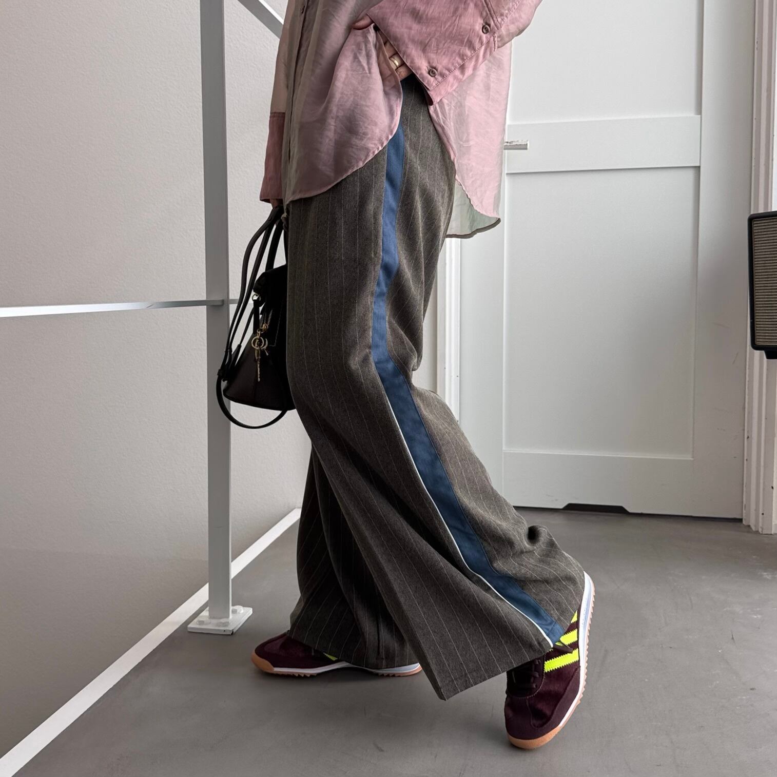 クラシカルなピンストライプパンツにサイドラインをプラスしたトラックスパンツ。 サイドラインに施した配色カラーデザインも相まって縦のラインがスタイルアップ効果アップ◎ ほどよくワイドなシルエットながらも動きやすく、シンプルにシャツやTシャツを合わせるだけで、こなれ感のある大人スタイルが完成します。