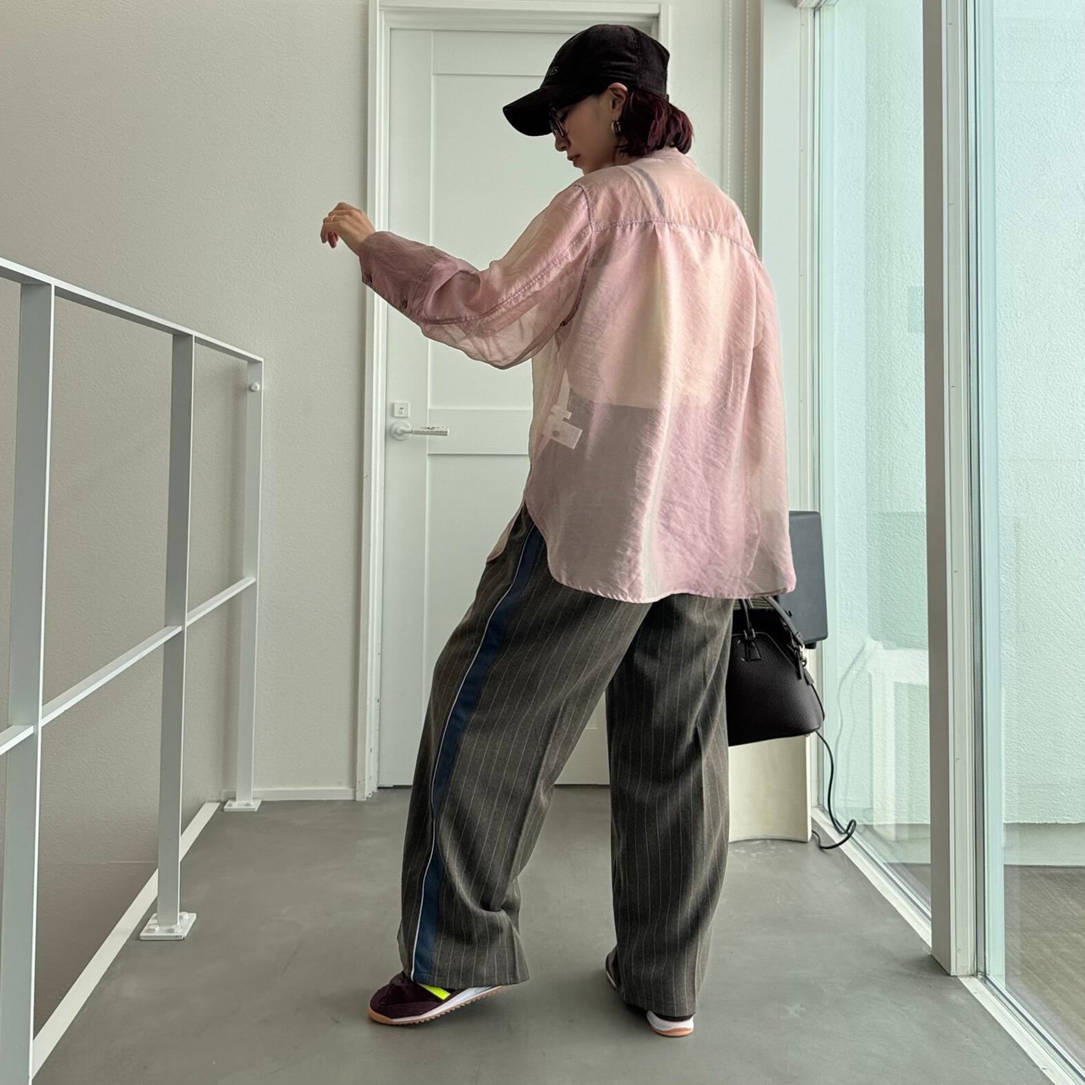 tops:光沢シアーワイドカフスSH/ピンク