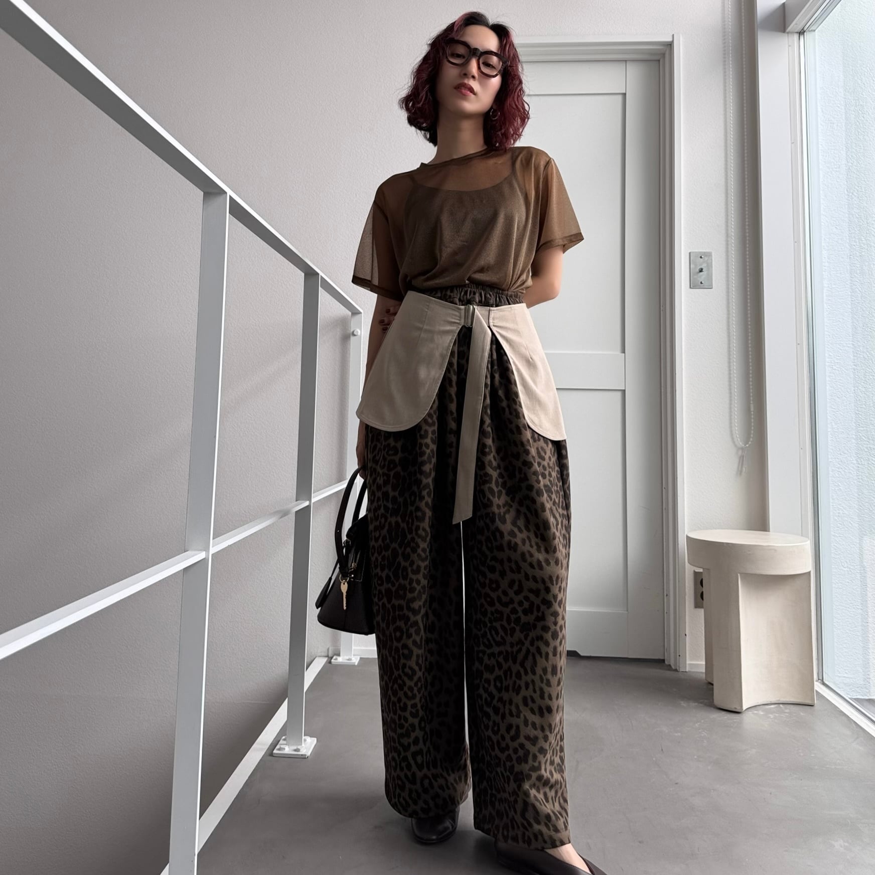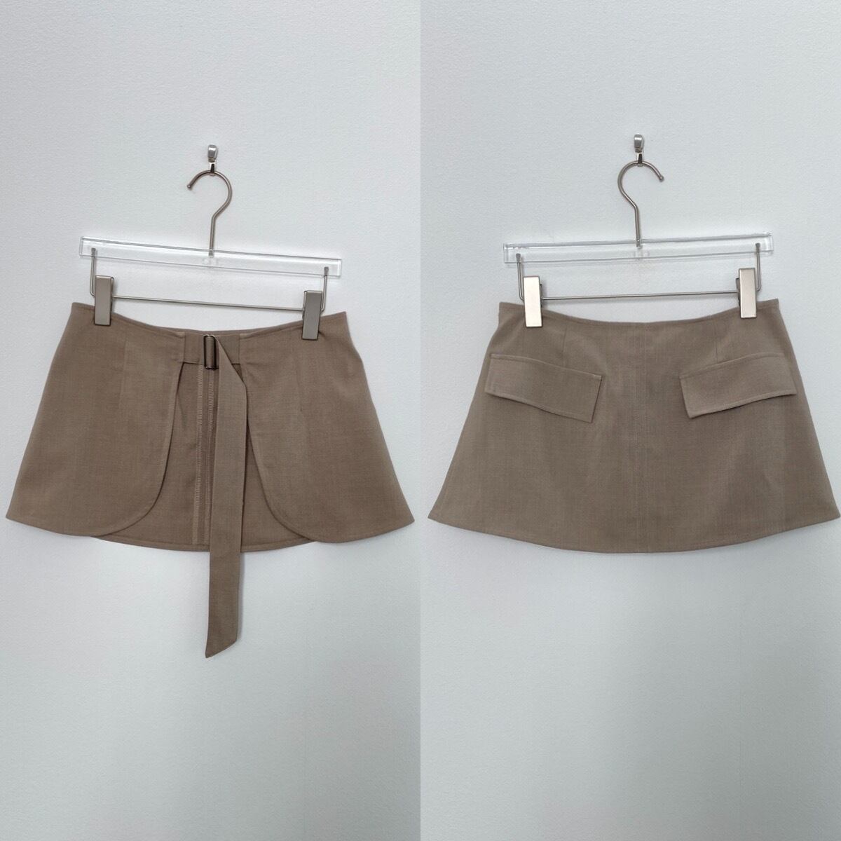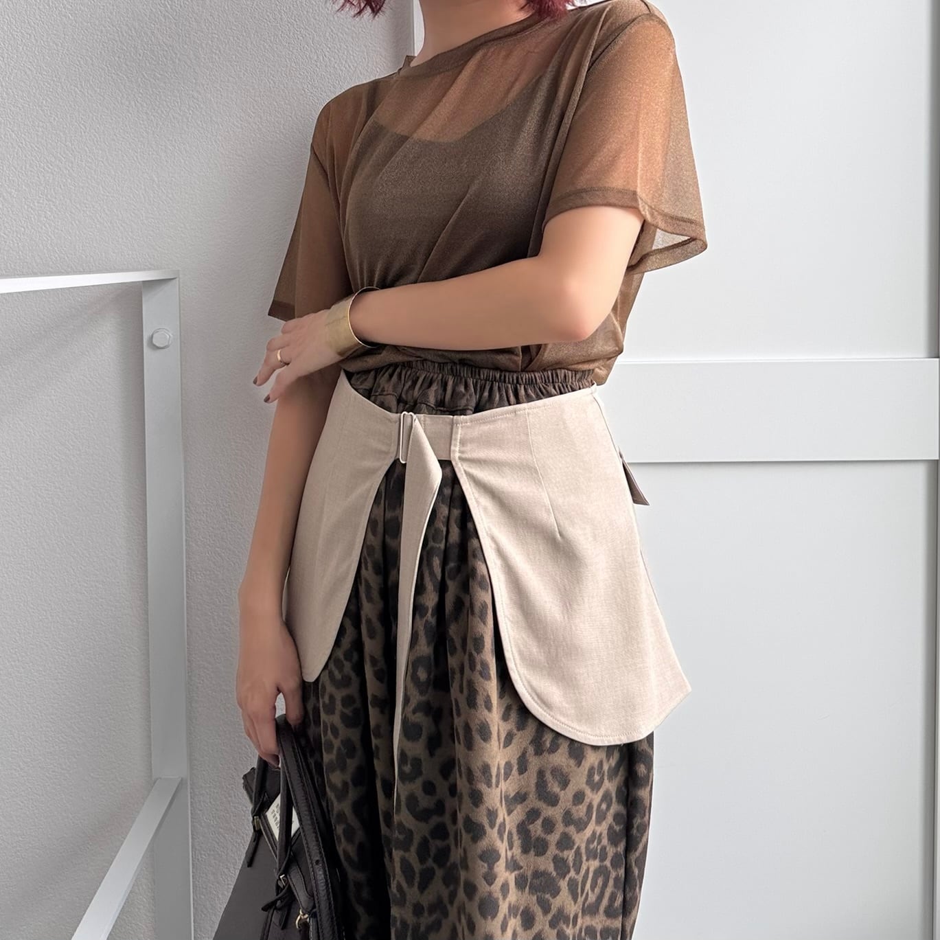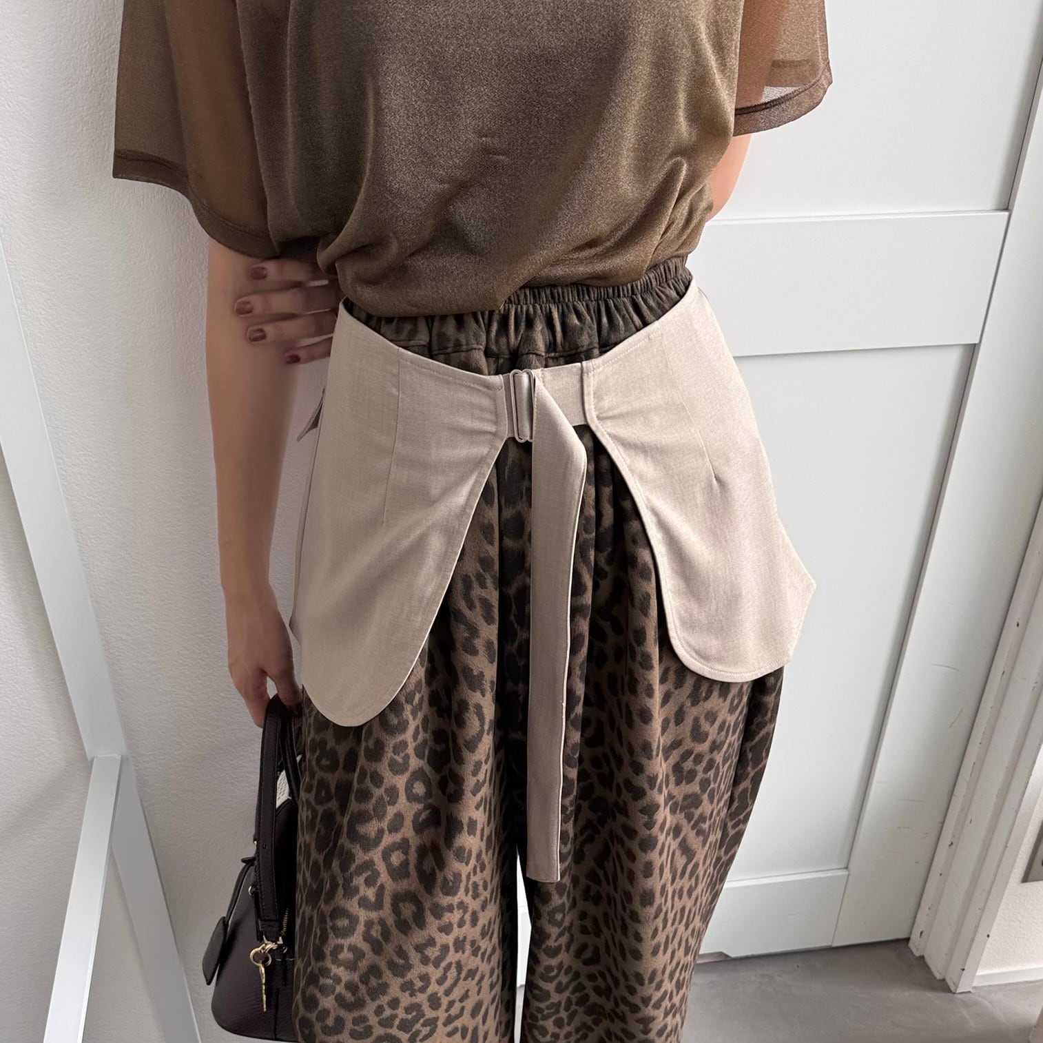 スタイリングのプラスワンアイテムとして取り入れていただきたいラップベルト。ボトムの上に重ねてポイントになるよう、レイヤードスカート風に。フロントのベルト位置でウエスト調節できます。シンプルなロングスカートやスラックスパンツと合わせることで新鮮なスタイリングに仕上がります。ワンピースのウエストマークとして合わせていただくのもオススメ。