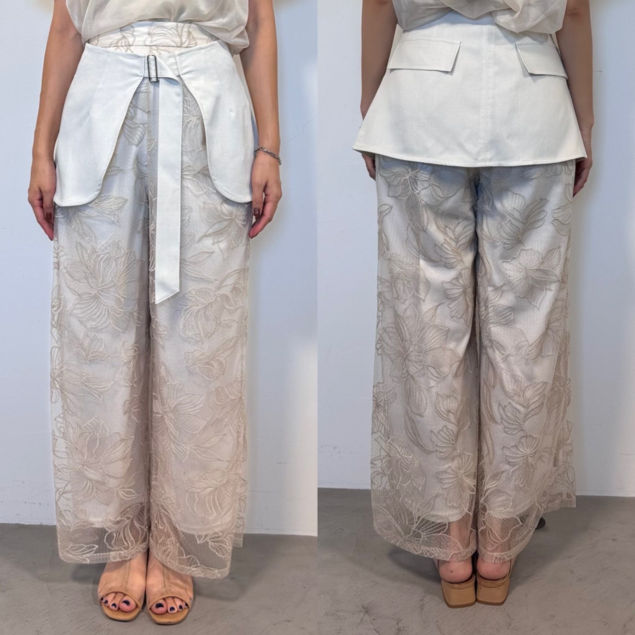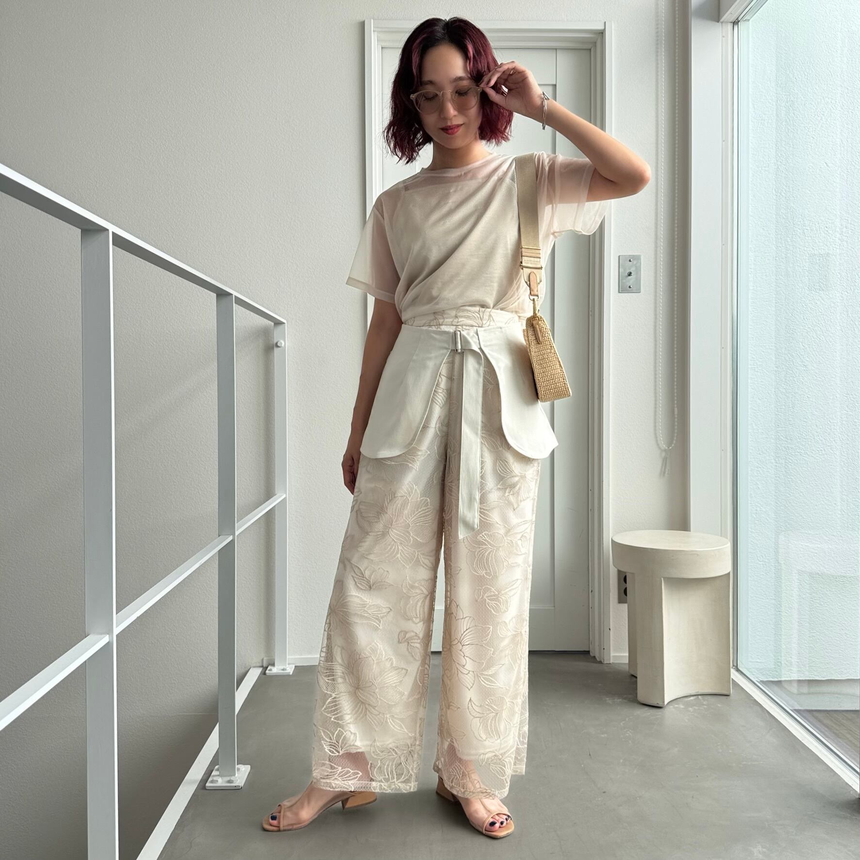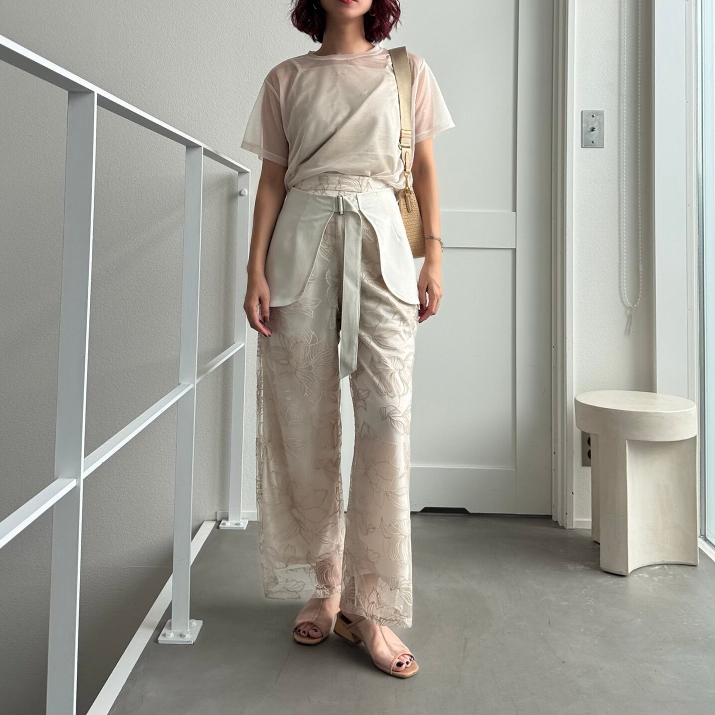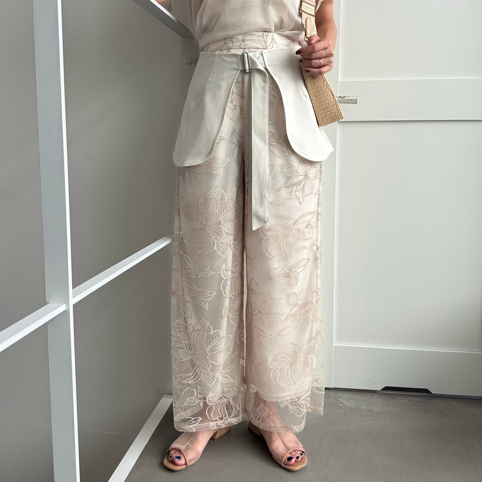 bottom:フラワー刺繍ストレートPT/ライトベージュ