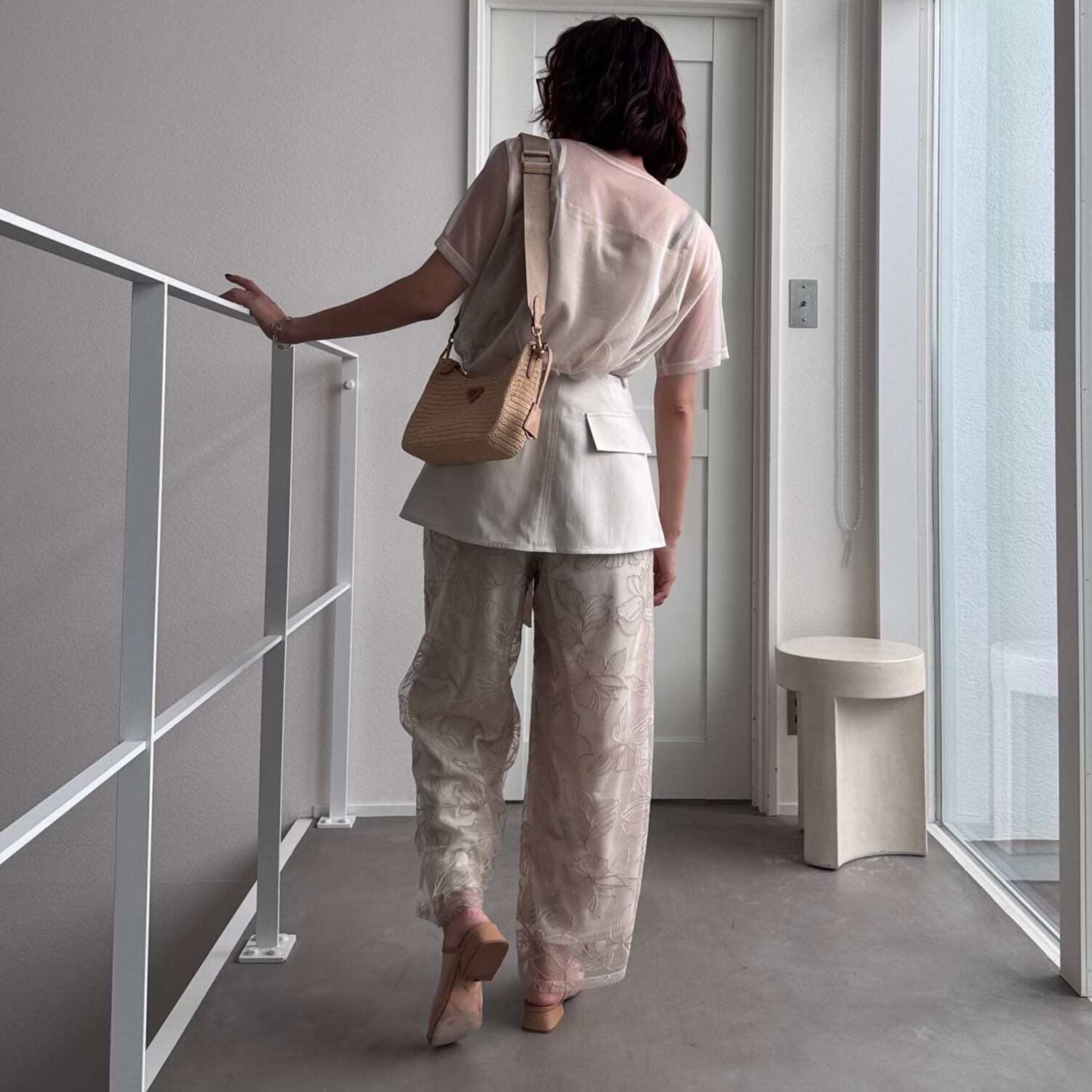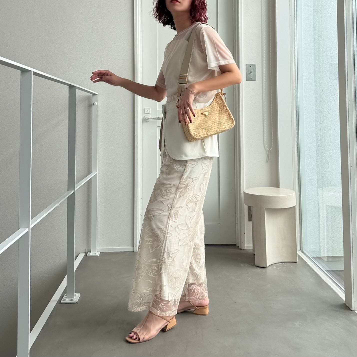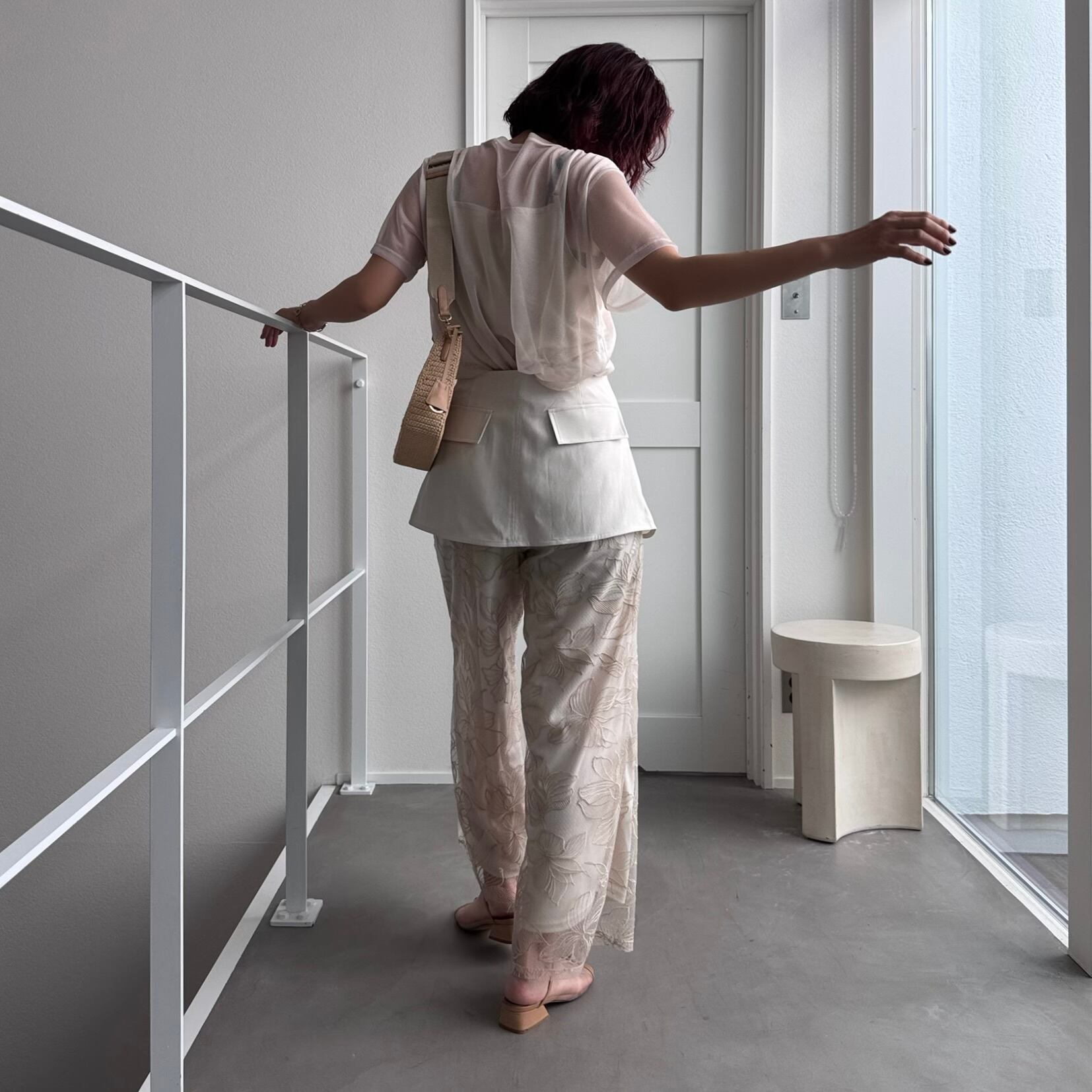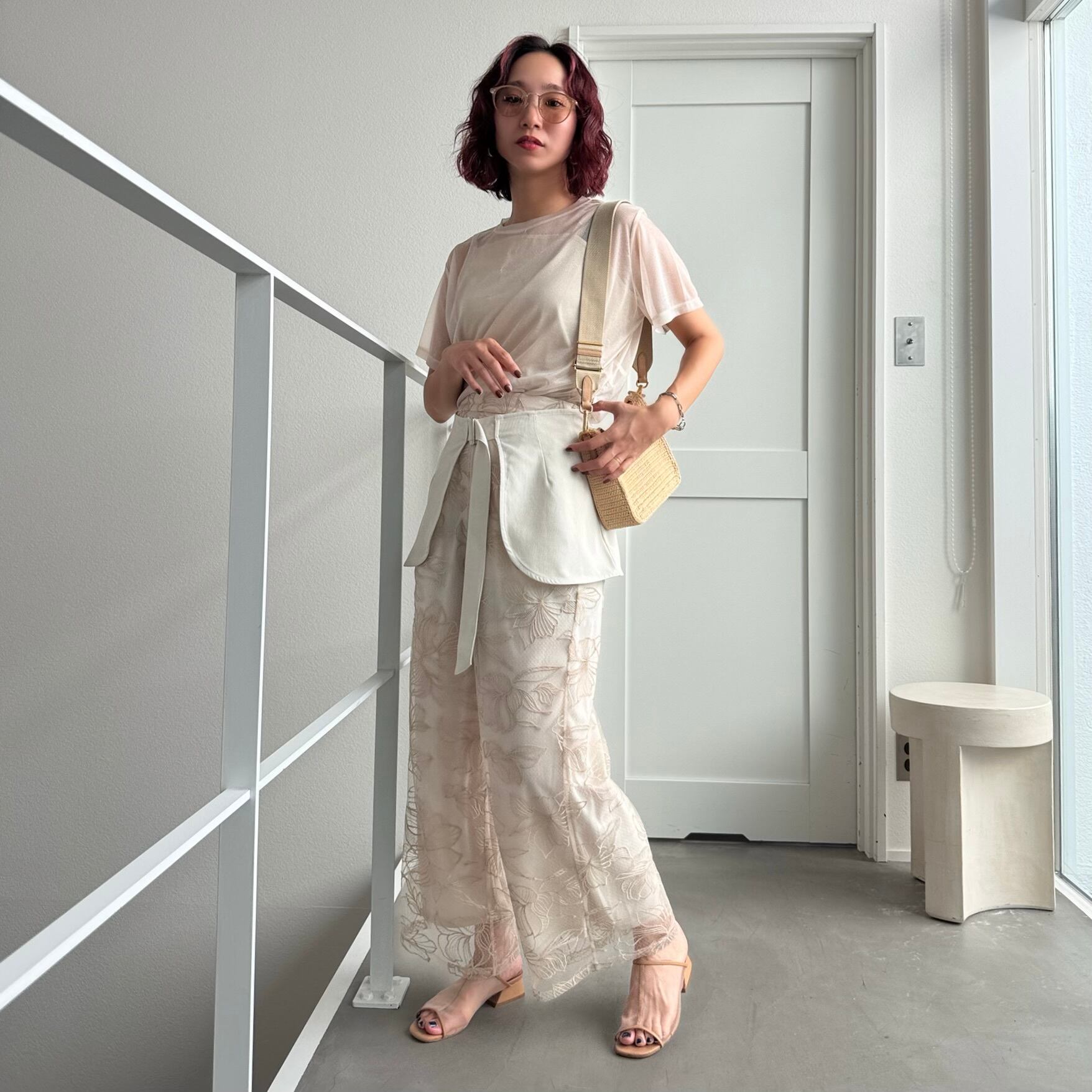 bottom:フラワー刺繍ストレートPT/ライトベージュ