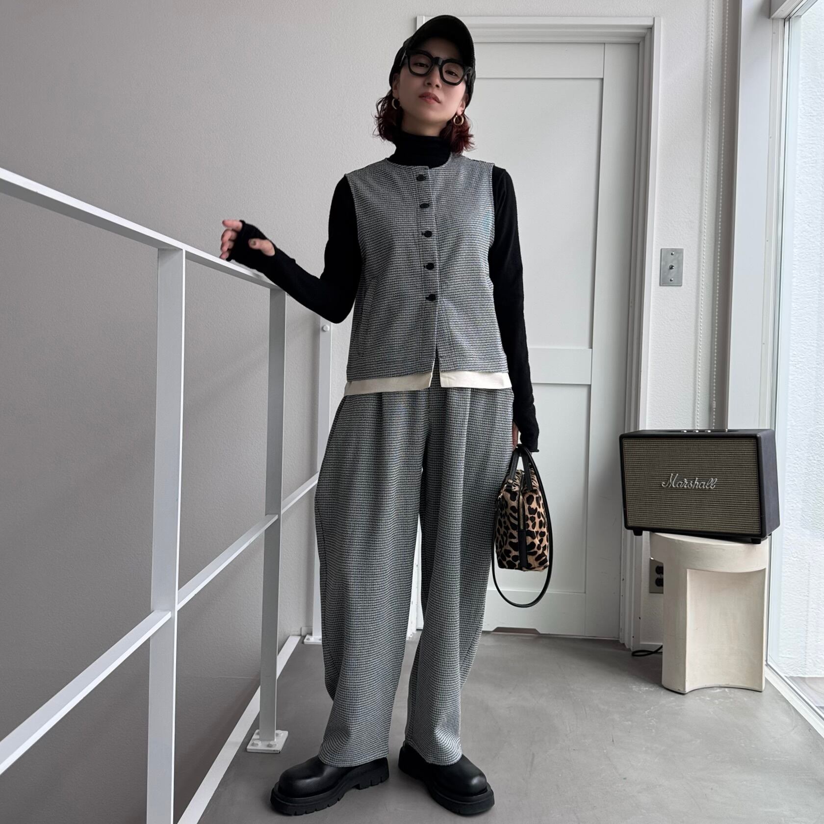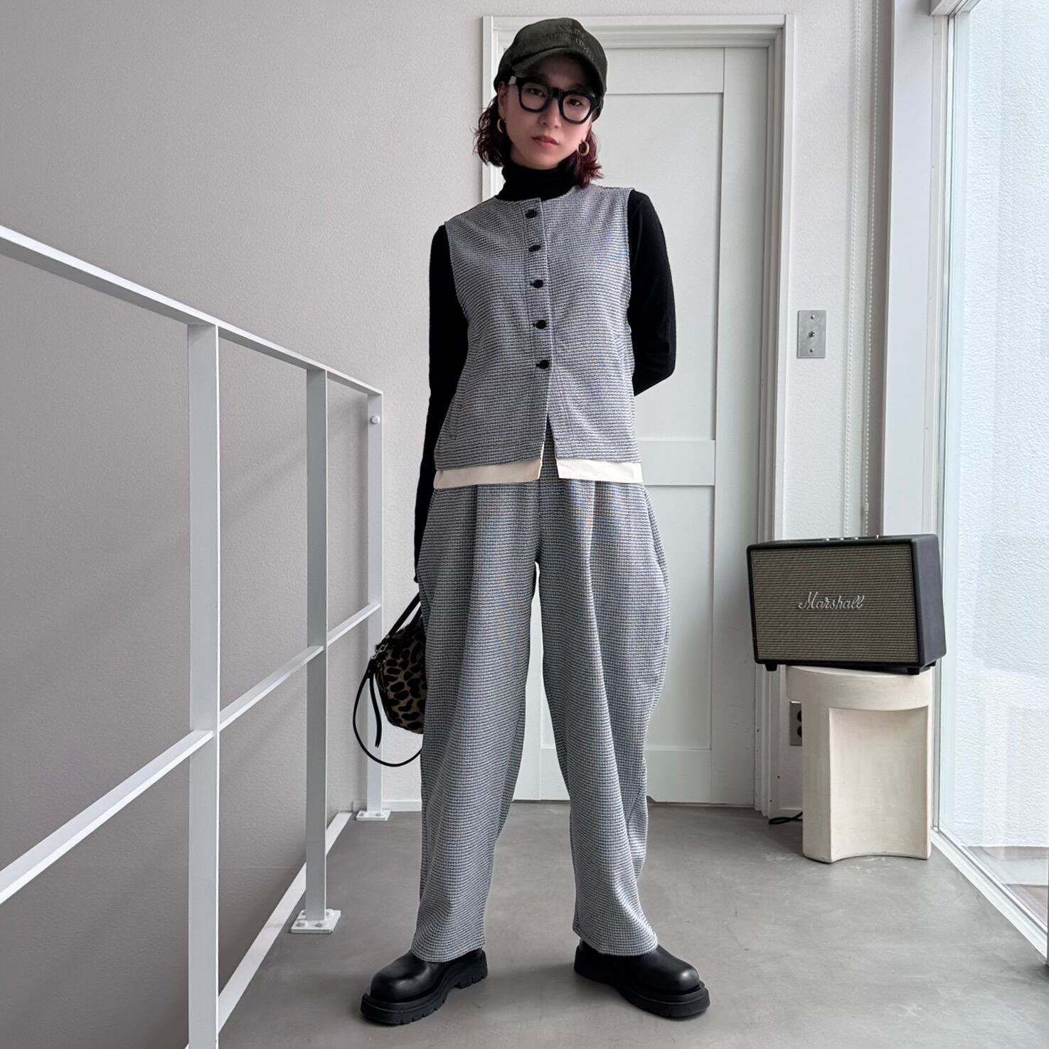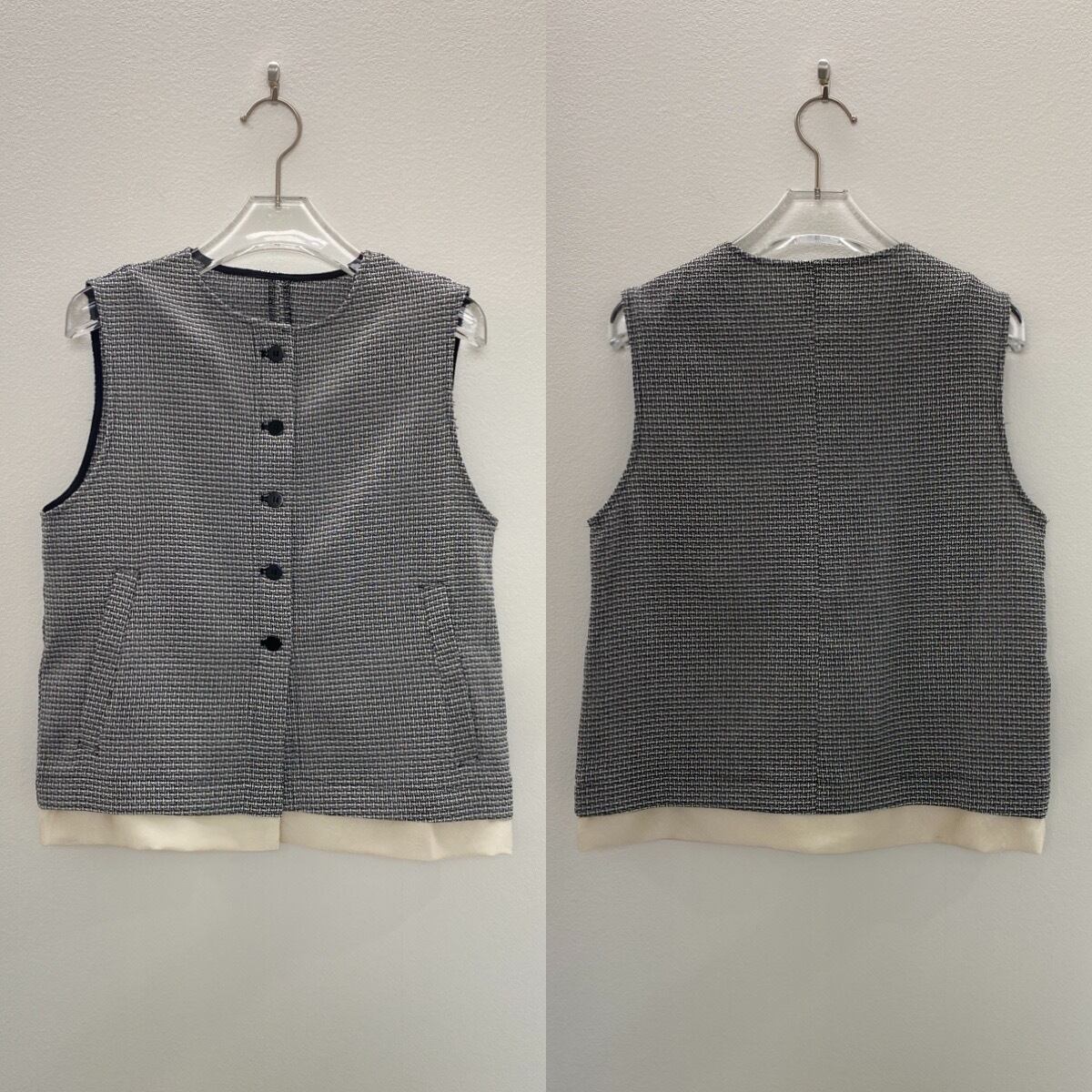 柔らかな生地感のツイードベスト。立体感のあるツイード生地はレイヤードしやすい薄手のサラッとした肌触りです。暑い時期はタンクやシアーアイテムとのレイヤードコーデがおススメ。長く着用頂けます。スタンダードなジャストなサイズ感なのでスッキリとした着こなしが出来ます。ボタンを開けてジレのように着用しても◎
