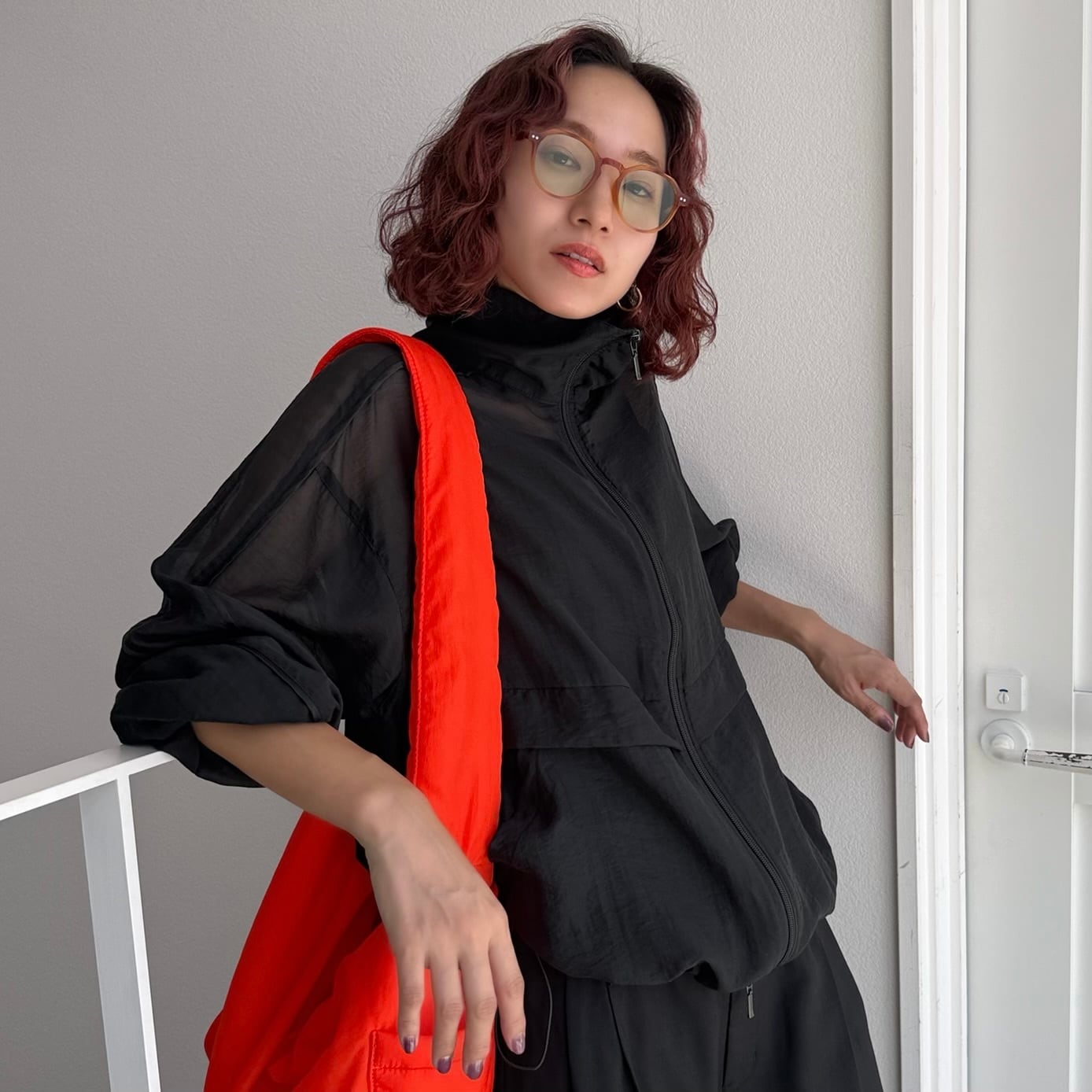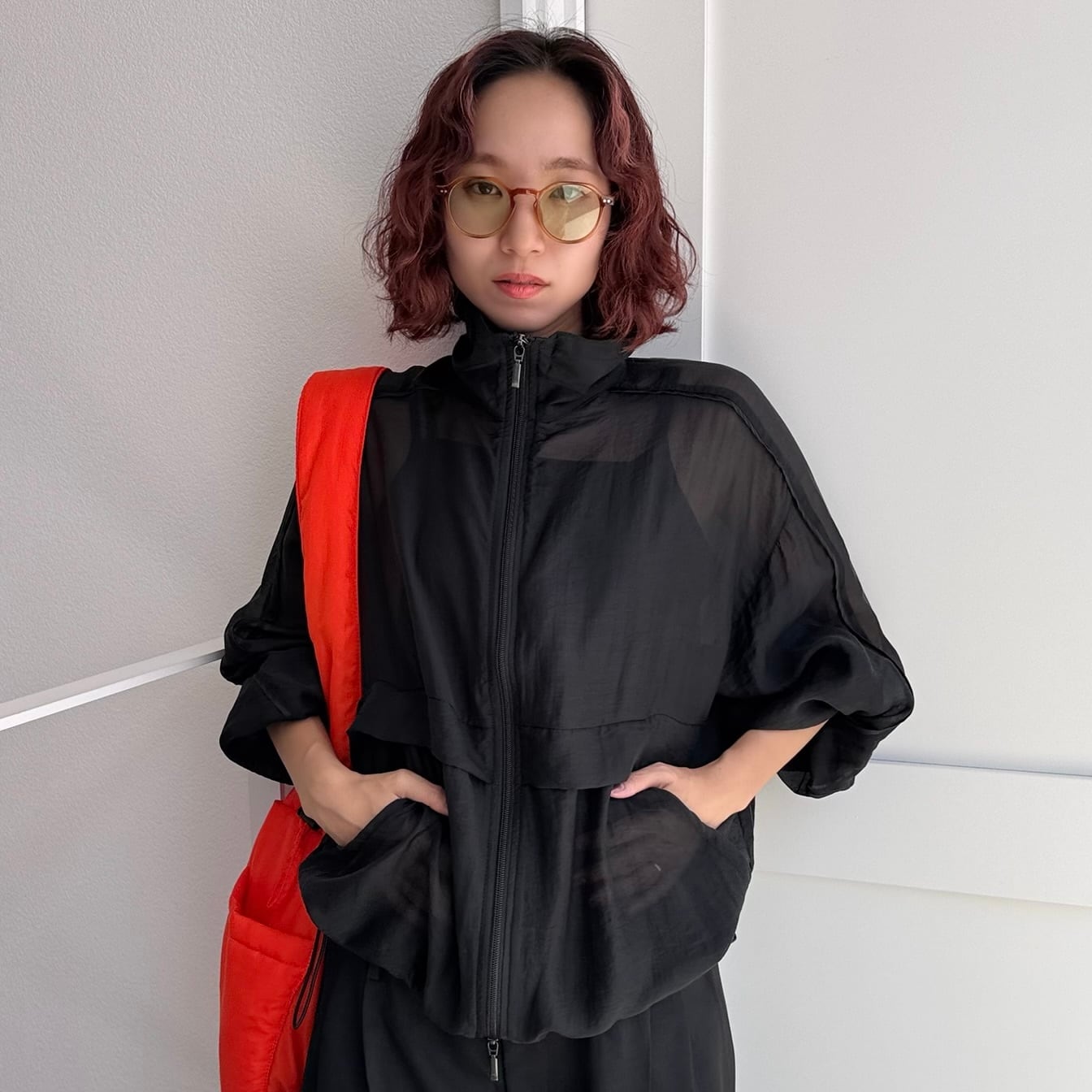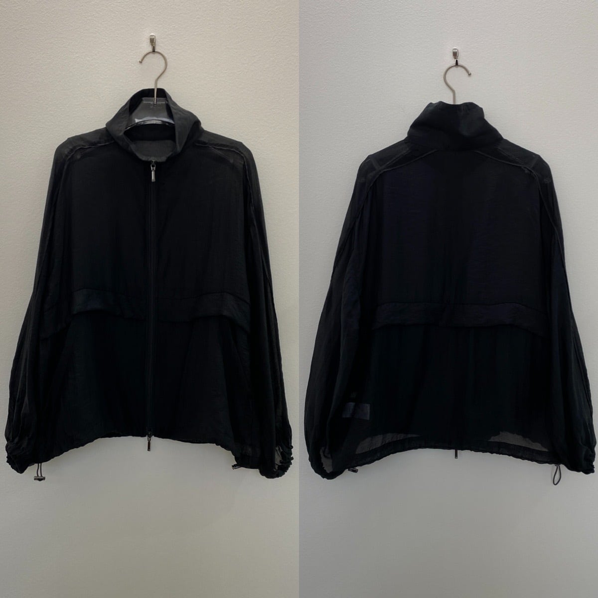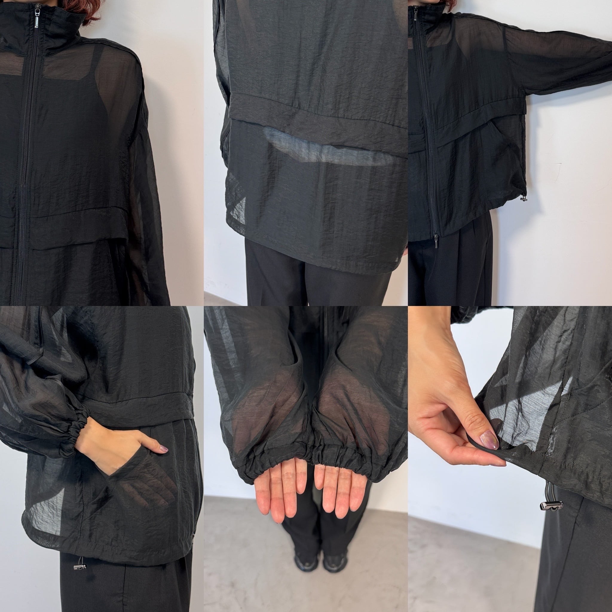 柔らかいシアー素材で着心地も良いシアーブルゾン。サテン生地の細いサイドラインのパイピングもポイントです。袖口がゴムなので使い勝手が良く、袖を上げて着用しても落ちてくる心配はございません。上下どちらからも調節できるダブルジップタイプなのでコーデのバランスもとりやすく、ジップを上まで閉めればハイネックに◎夏場の日焼け対策としても使えるアイテムです。
