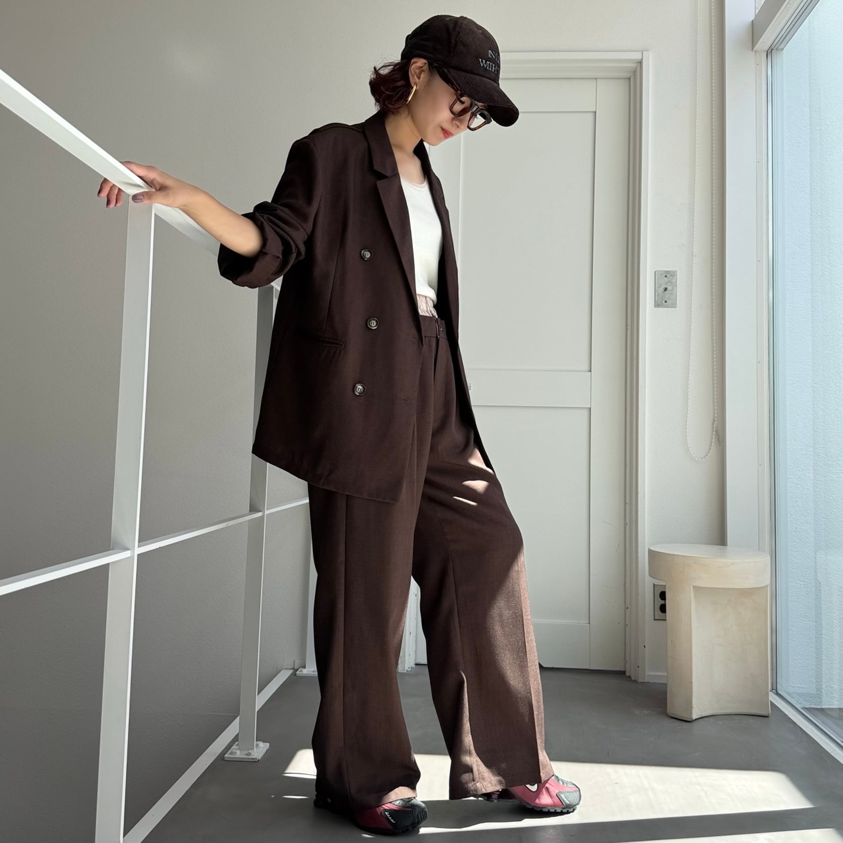 jacket:麻タッチダブルブレストJK/ダークブラウン