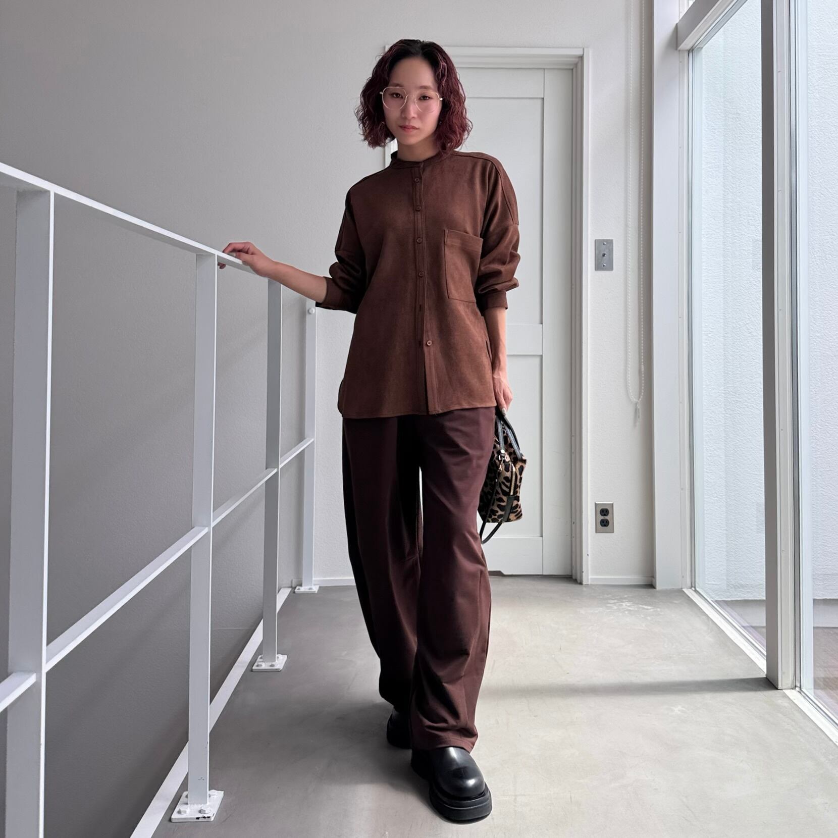 滑らかな肌触りが着心地の良いスウェードオーバーシャツ。オーバーサイズですが落ち感のある素材を使用している為スッキリとしたコーデが完成します。裾がラウンドしておりサイドのスリットがこなれ感もプラス。羽織としても重宝します。