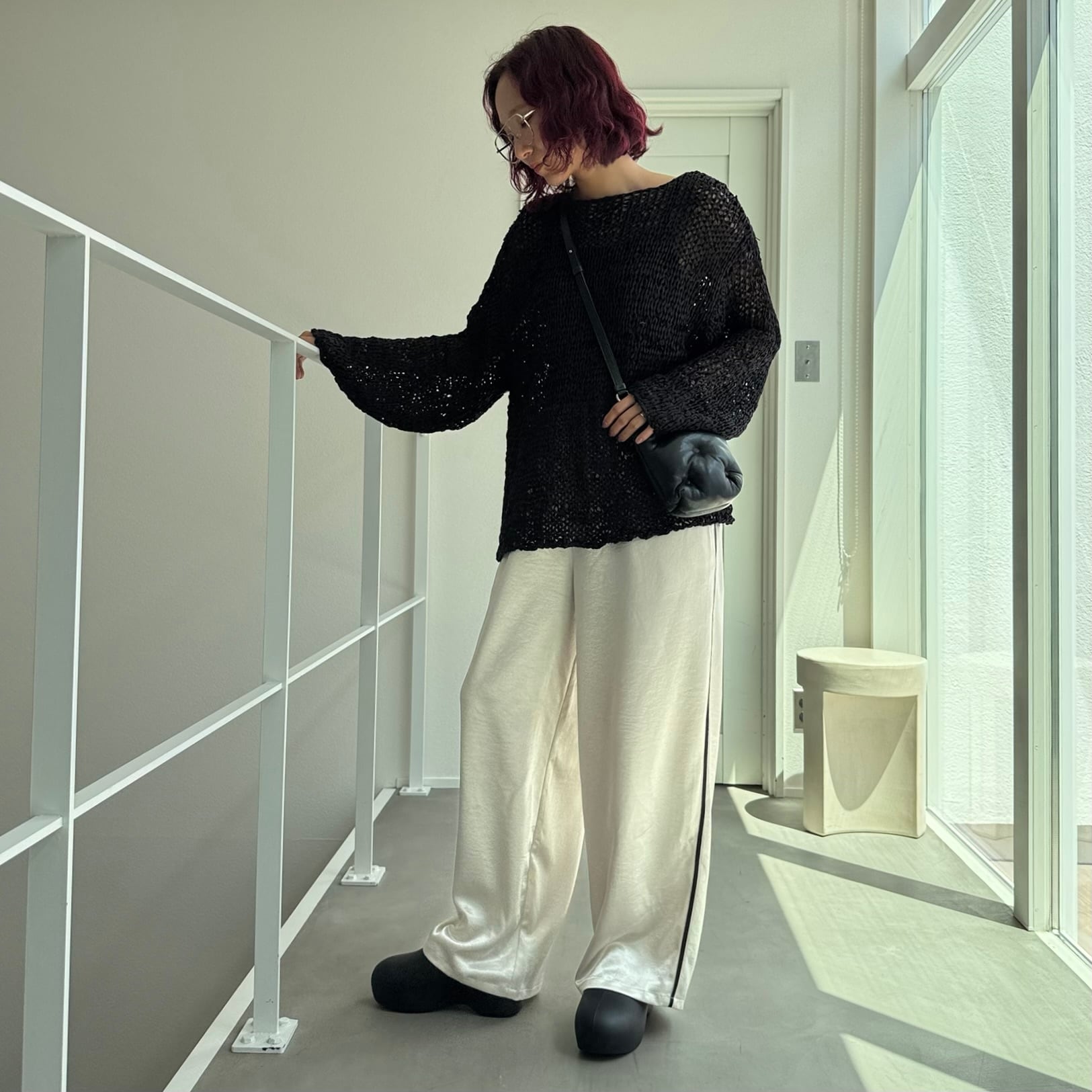 tops:ペーパーヤーン編みPO/ブラック