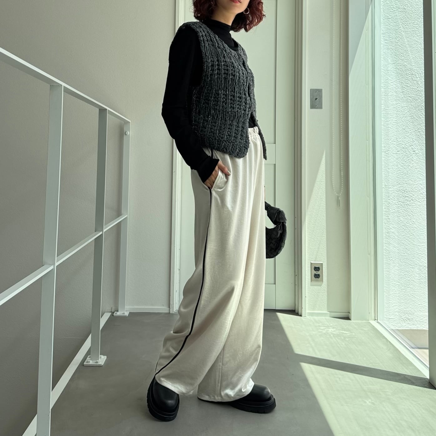 vest:ローゲージmixニットvest/チャコール
