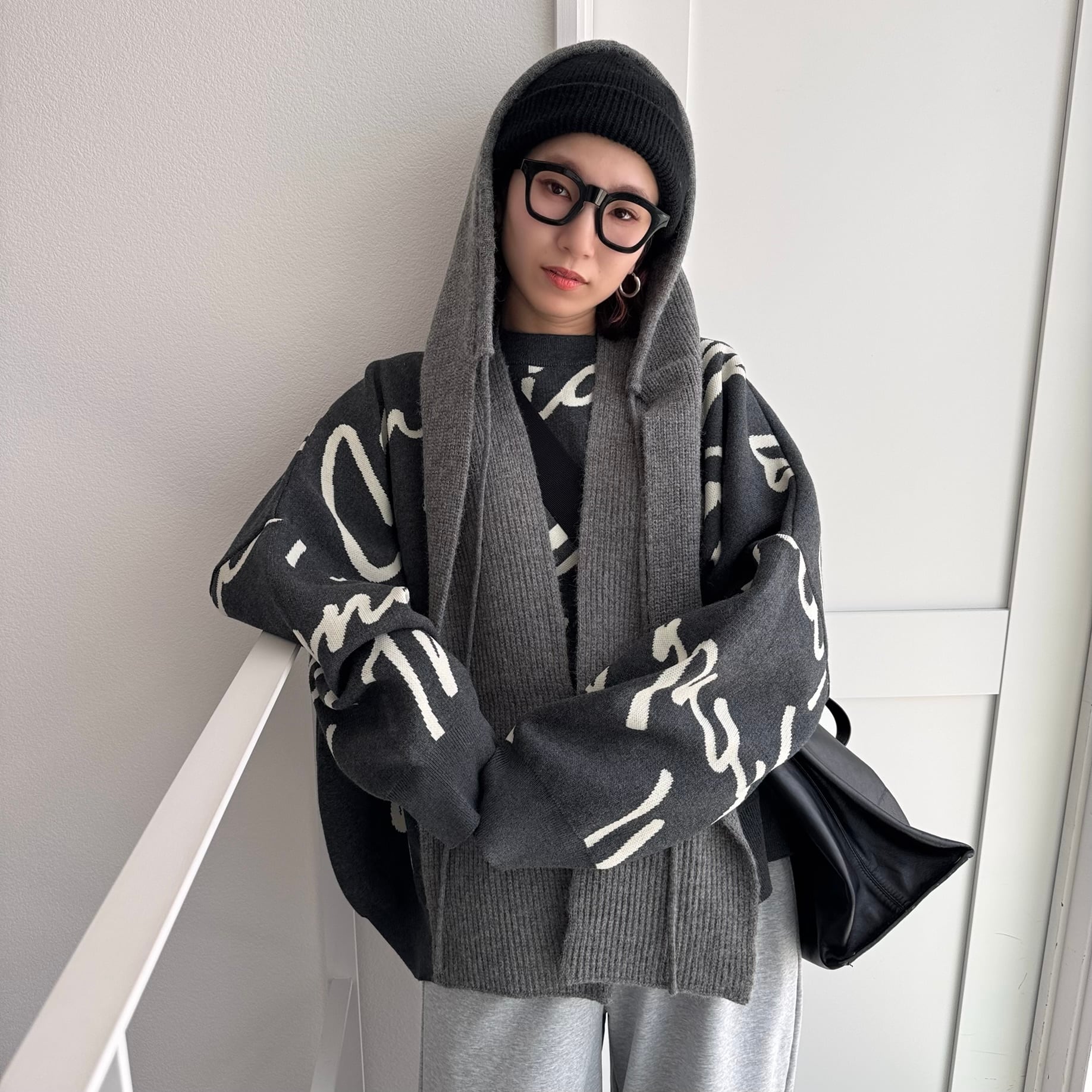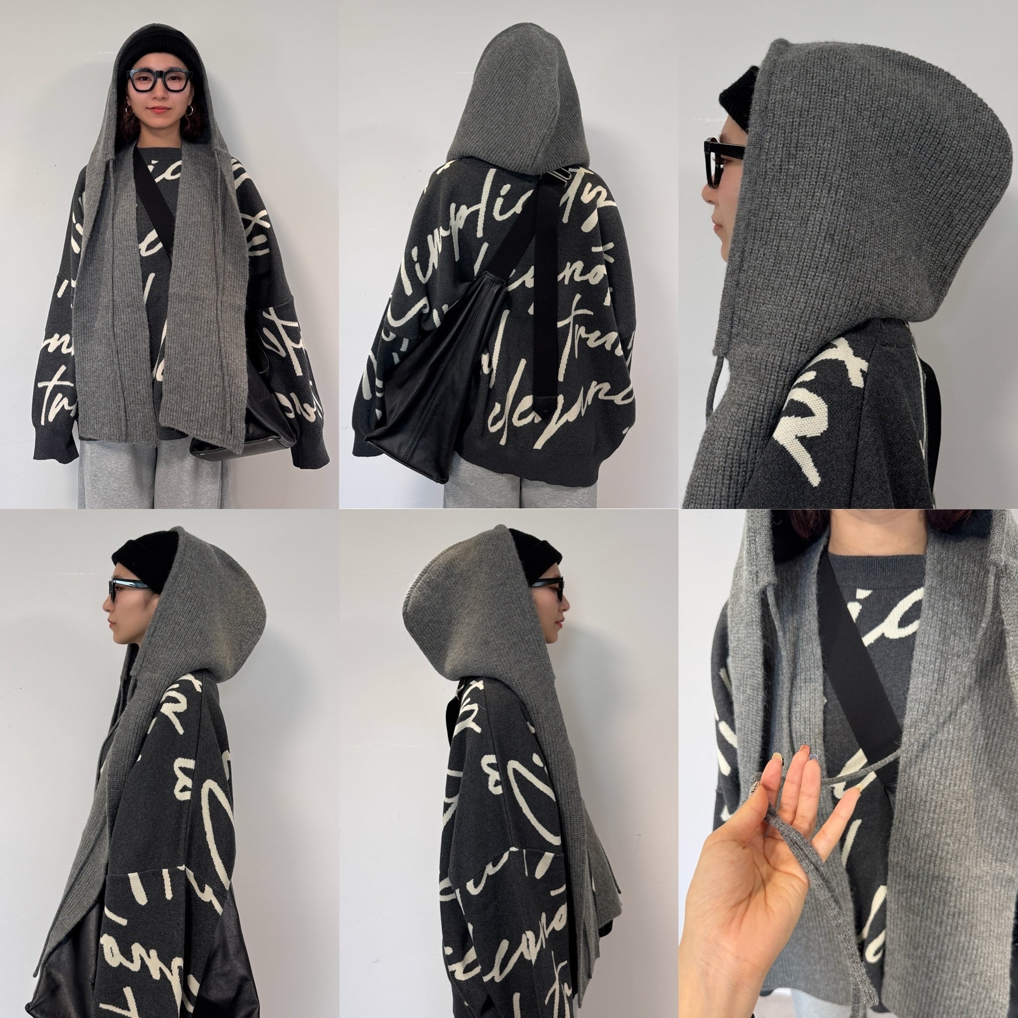 いつものコーデのプラスするだけでトレンドコーデが完成するバラクラバフードマフラー。マフラー部分はあえて長さのあるデザインなのでそのまま巻かずにおろしても◎、首もとにぐるっと巻いたりとコーデに合わせてアレンジ可能です。防寒としても活躍するので重宝します。