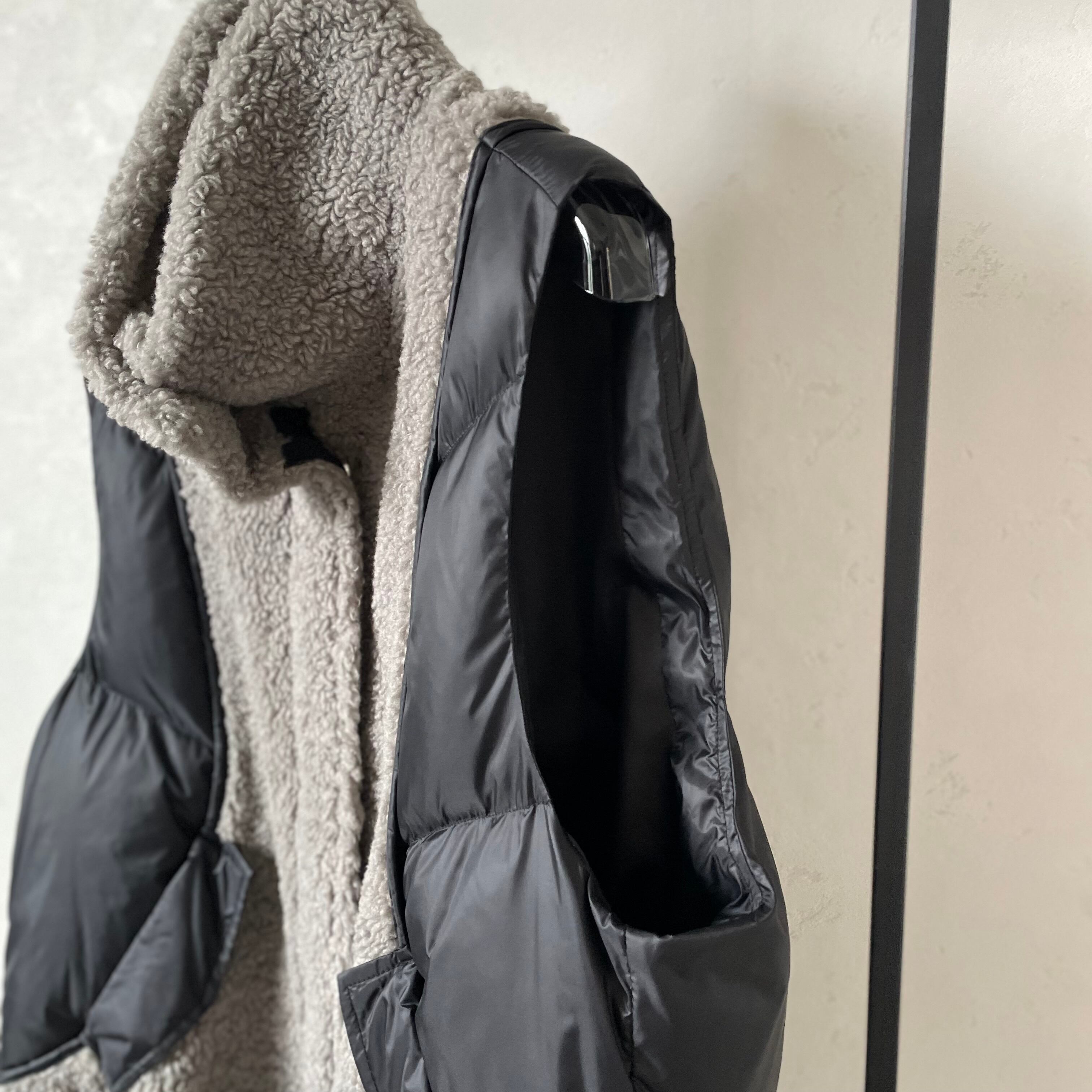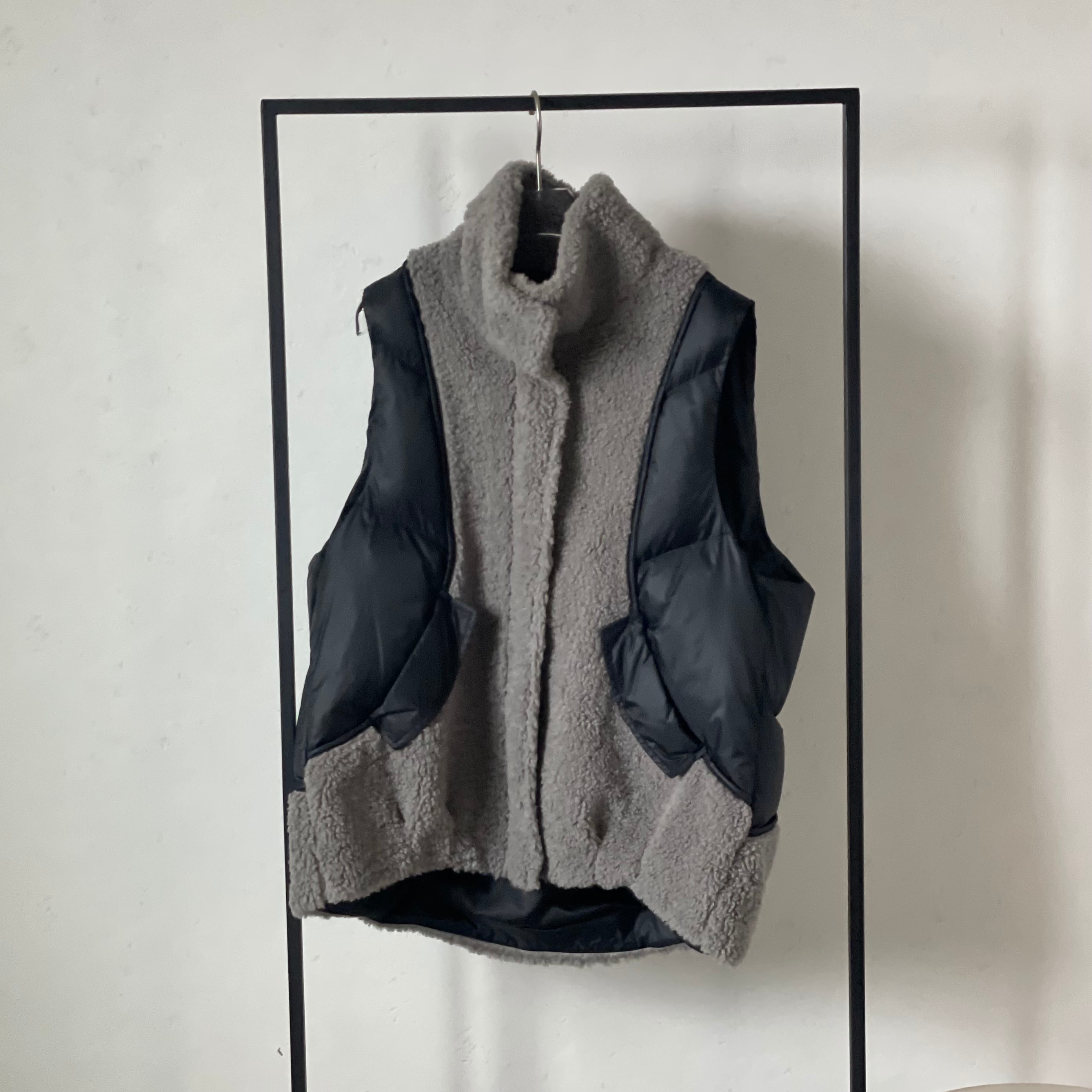 【受注予約:10月末入荷予定】teddy mix Puffer Vest/gray×black