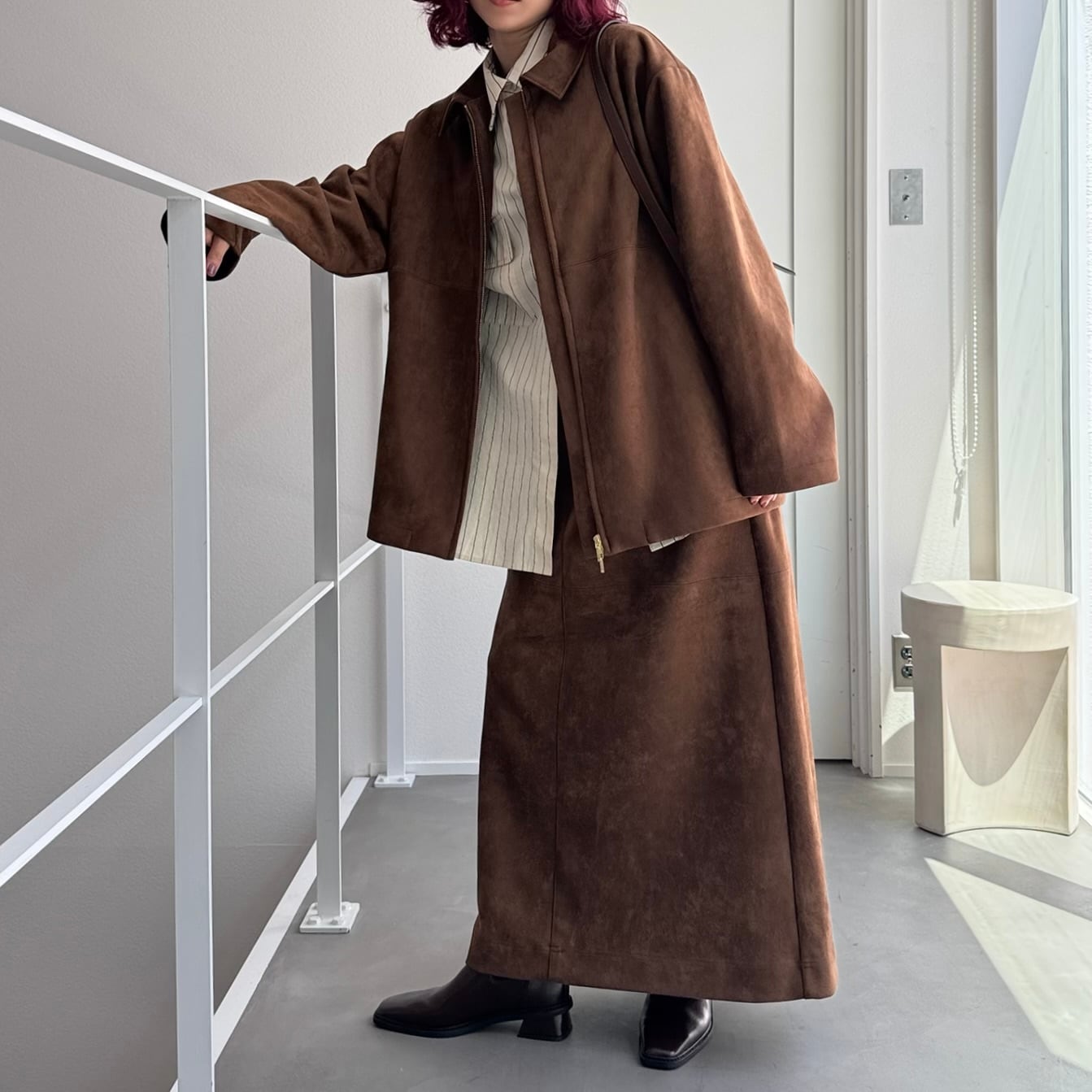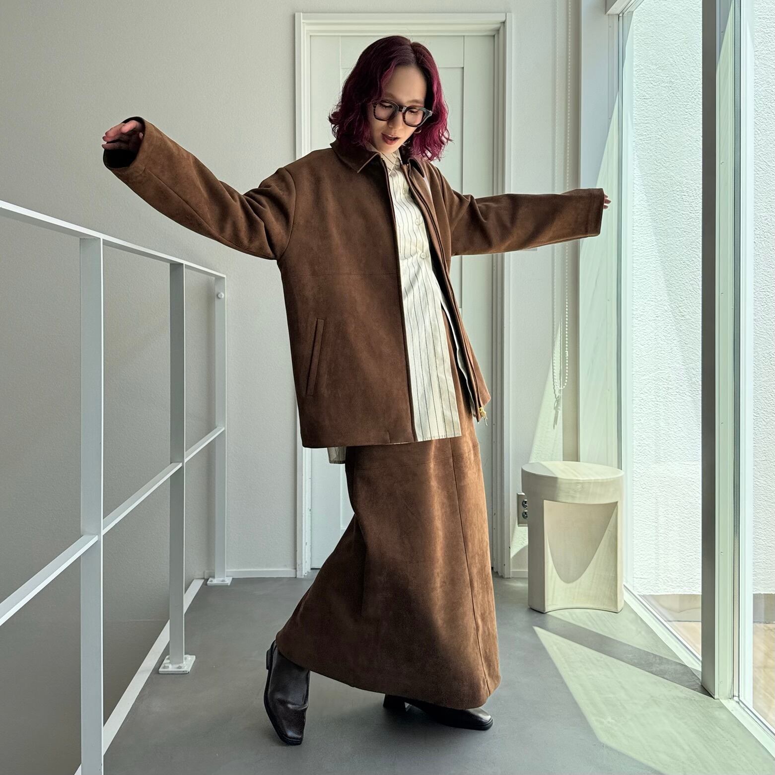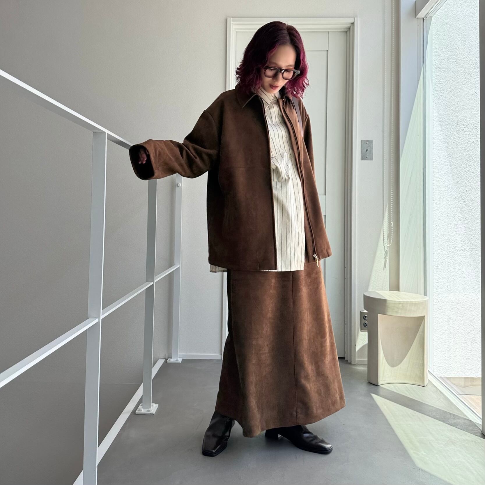 【受注予約:9月上旬入荷予定】フェイクスウェードAラインSK/ブラウン