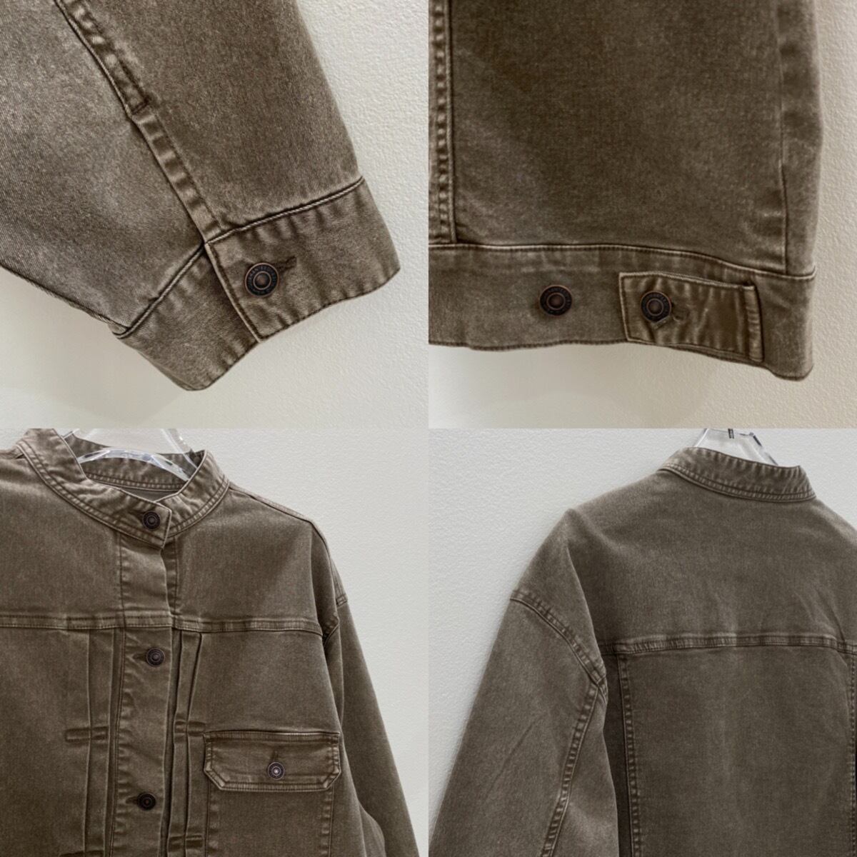 敢えて衿ではなくスタンドカラータイプのスッキリしたデニムジャケット。ストレッチいりで着心地抜群。ビンテージライクな立体感のある表情に仕上げました。リラックスし過ぎていないサイズ感のためキレイめに着用できるのもポイント。シンプルなデザインはコーディネートしやすく、気軽に羽織ることのできるデイリー使いに欠かせない1枚です。