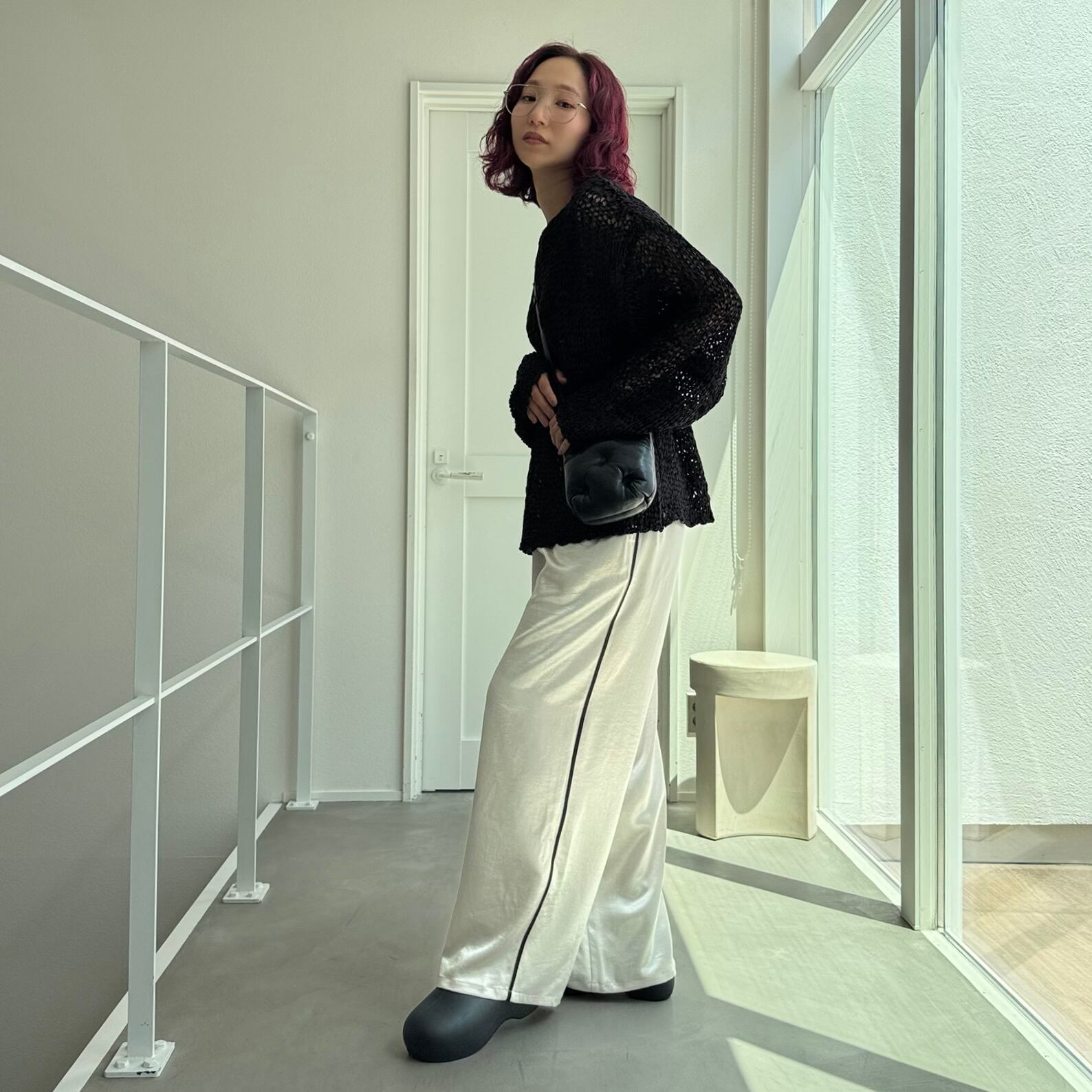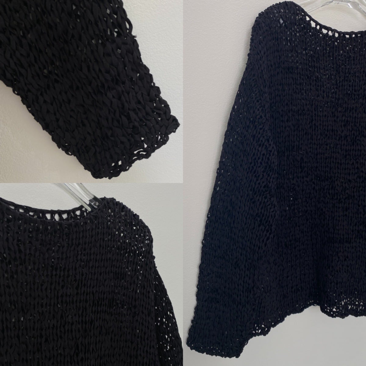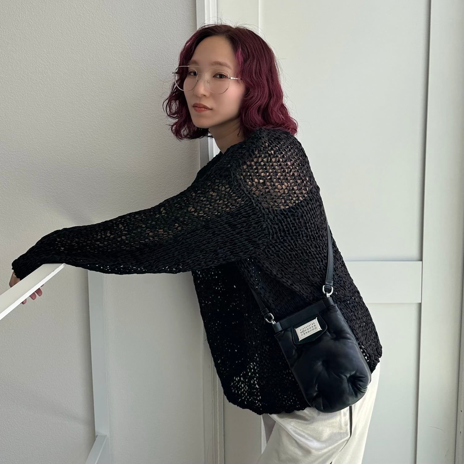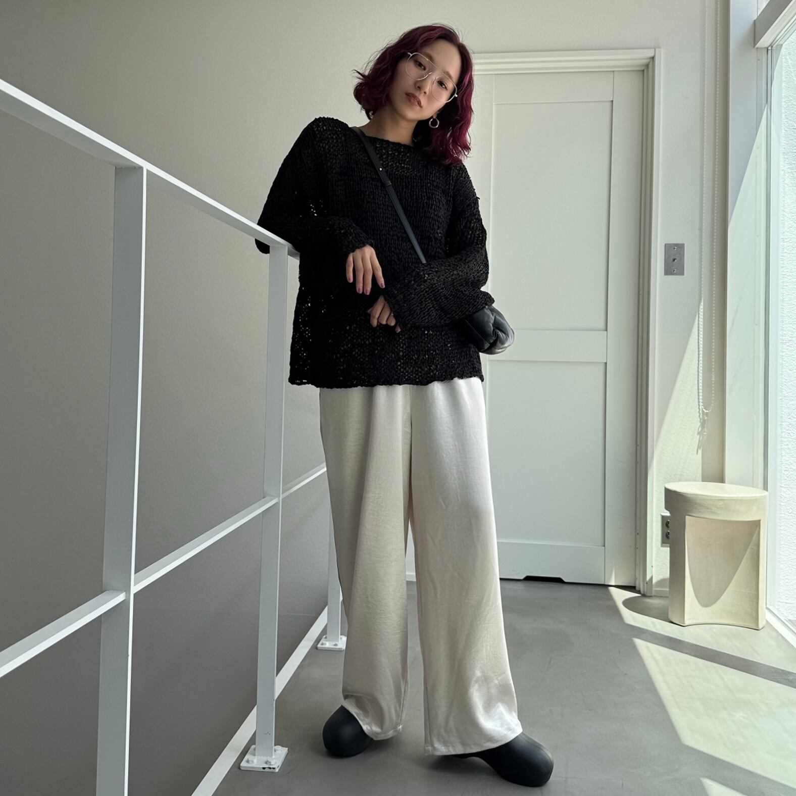 ざっくりと編まれた透け感を楽しめるペーパーヤーン編みプルオーバー。平たいテープのような太めの糸で編まれています。柔らかくサラリとしているので肌にも優しい着心地。広めにとられたネックラインは首元をきれいにみせてくれます。インナーによって雰囲気を変えられるのも嬉しいポイント。