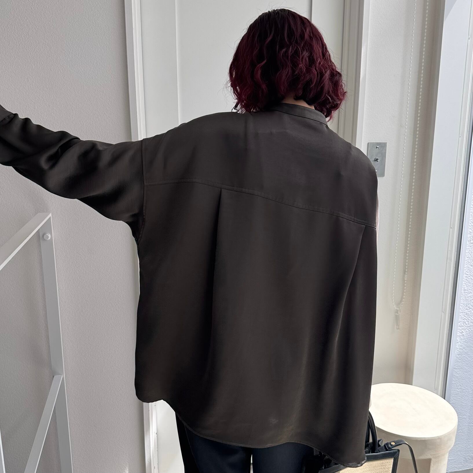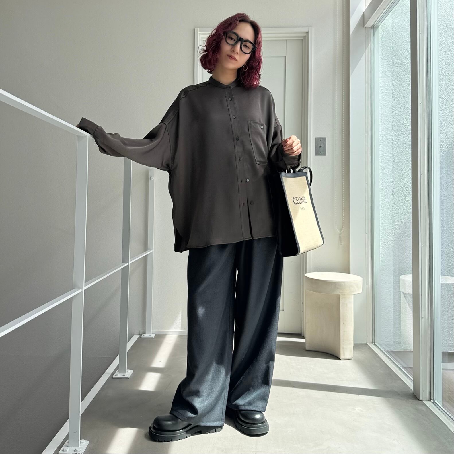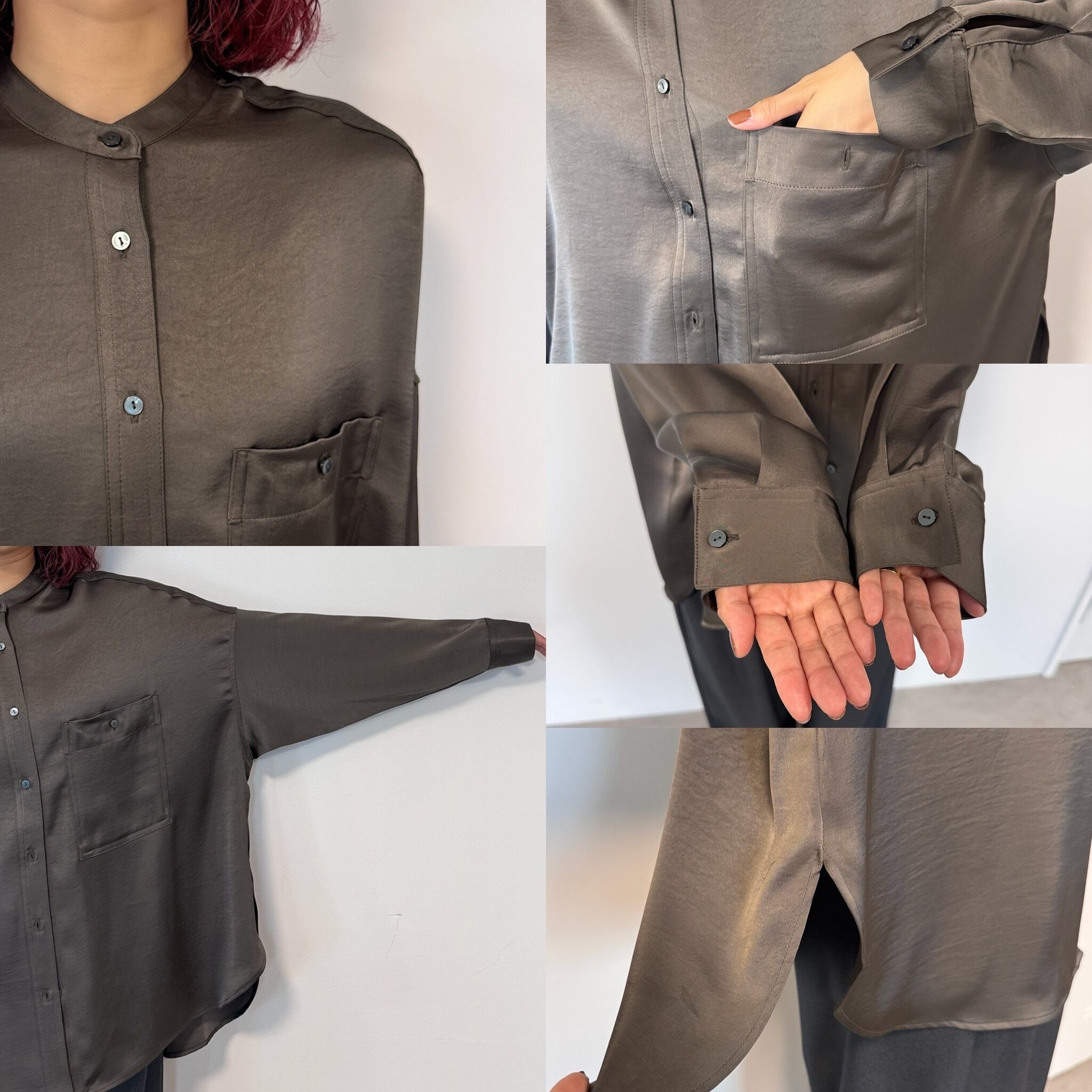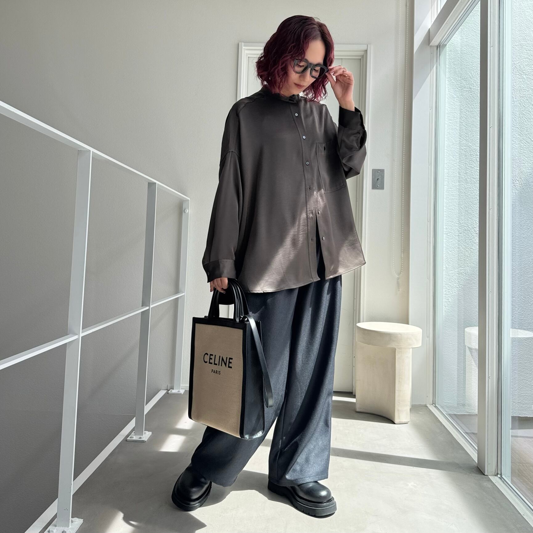 マットな光沢感の上品さに、ゆるっと落ち感のあるルーズシャツ。光沢感に加えて表面はワッシャー加工しているので表情のある生地感を使用しております。ゆったりとリラクシーに着用でき1枚でサラリとコーデに取り入れても一気にこなれ感がアップします。オーバーサイズなので腰回りもすっぽり隠れるのも嬉しいポイント。