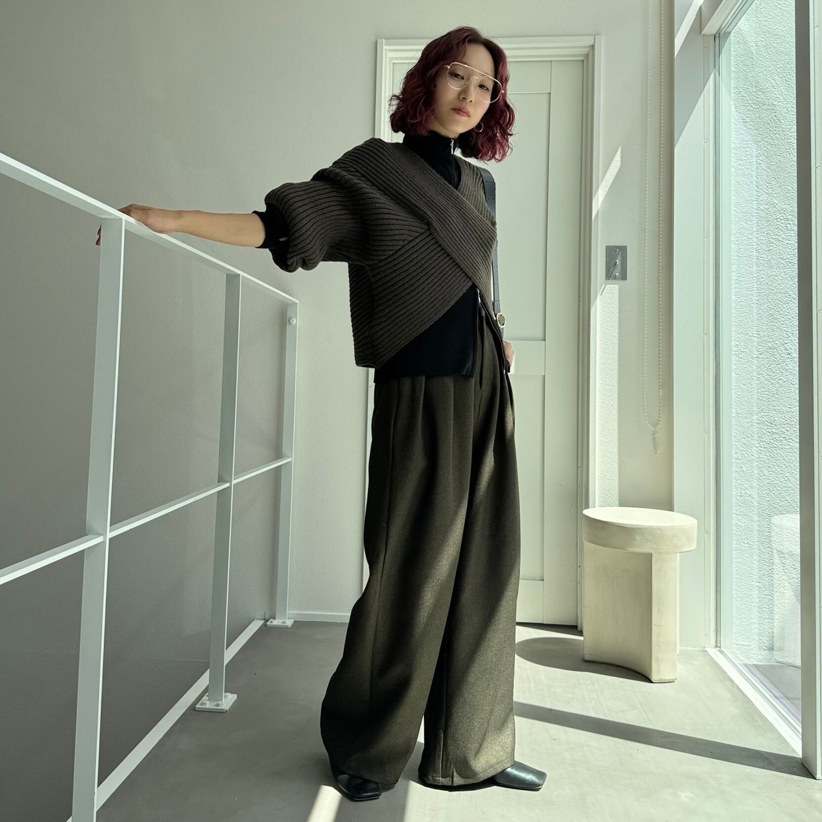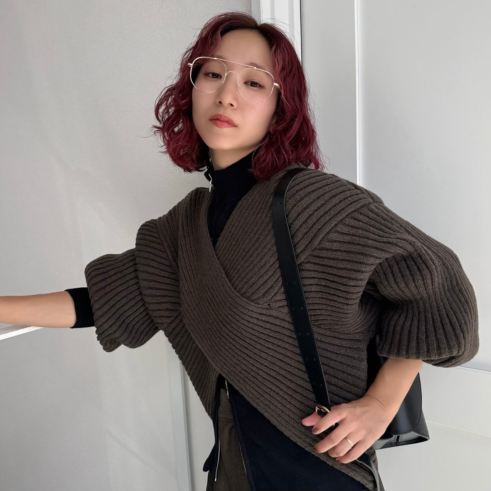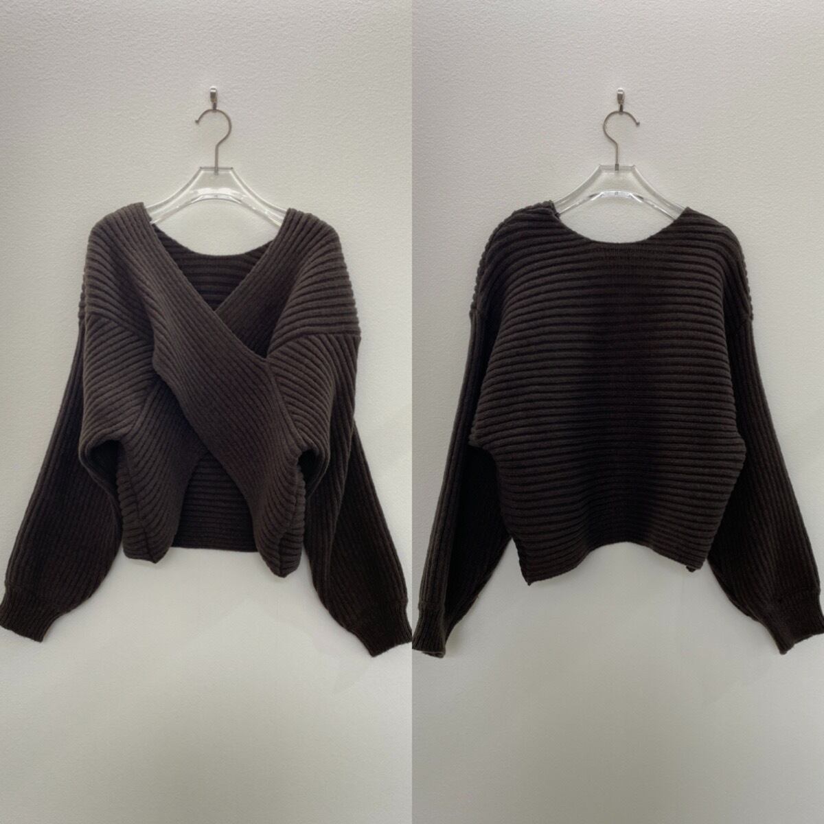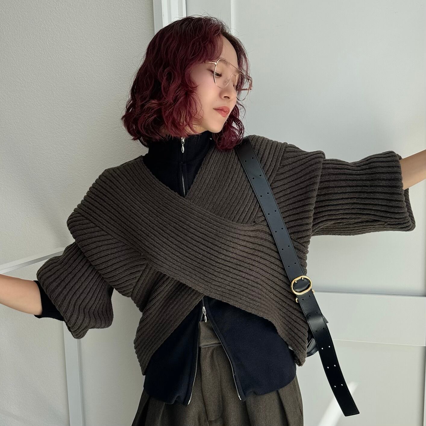 クロスデザインが目を惹くニットプルオーバー。前後2wayなのでコーディネートの幅が広がり、かつすっきりとしたショート丈なのでシャツやロンT、ワンピースなどのレイヤードスタイルで着こなしの幅もグッと広がるアイテムです。