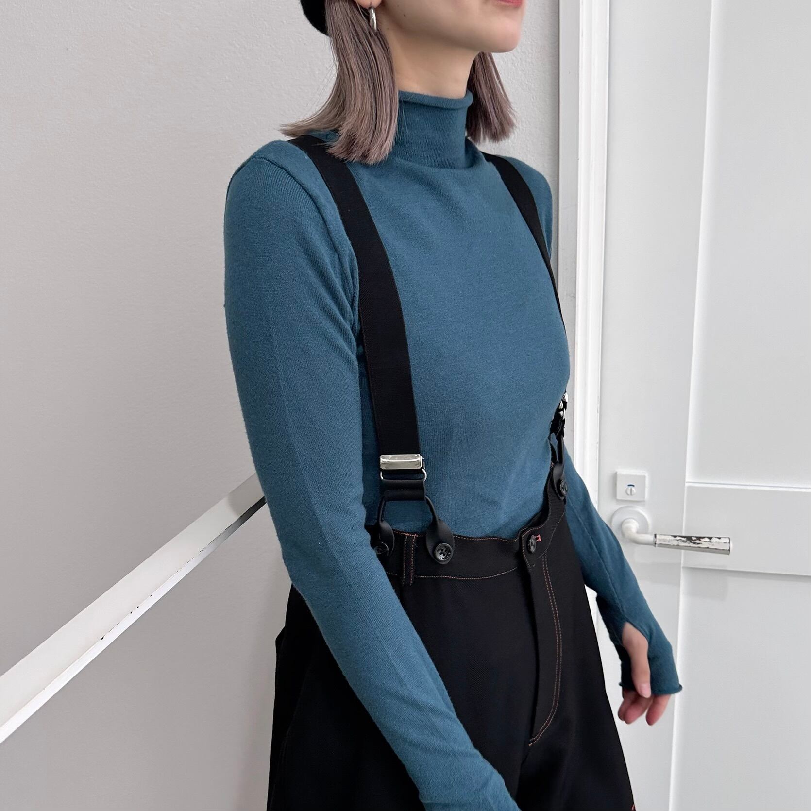 毎年大人気のくしゅモック指穴ニット。首元は、ほどよい高さのモックネック。締めつけが少なく絶妙なフィット感が魅力なポイントです。レーヨン混のモチモチとした生地感が気持ちよく、ストレスフリーな着心地。ニットベストやVネックのトップスのインナーとしても使いやすい万能な一着です。