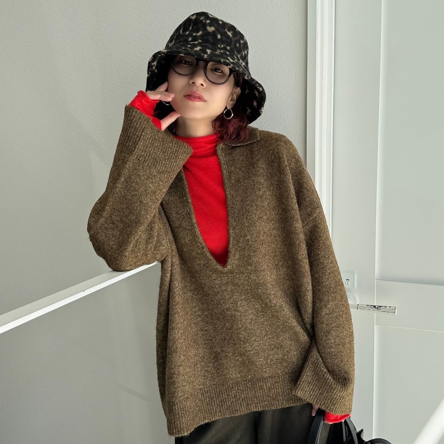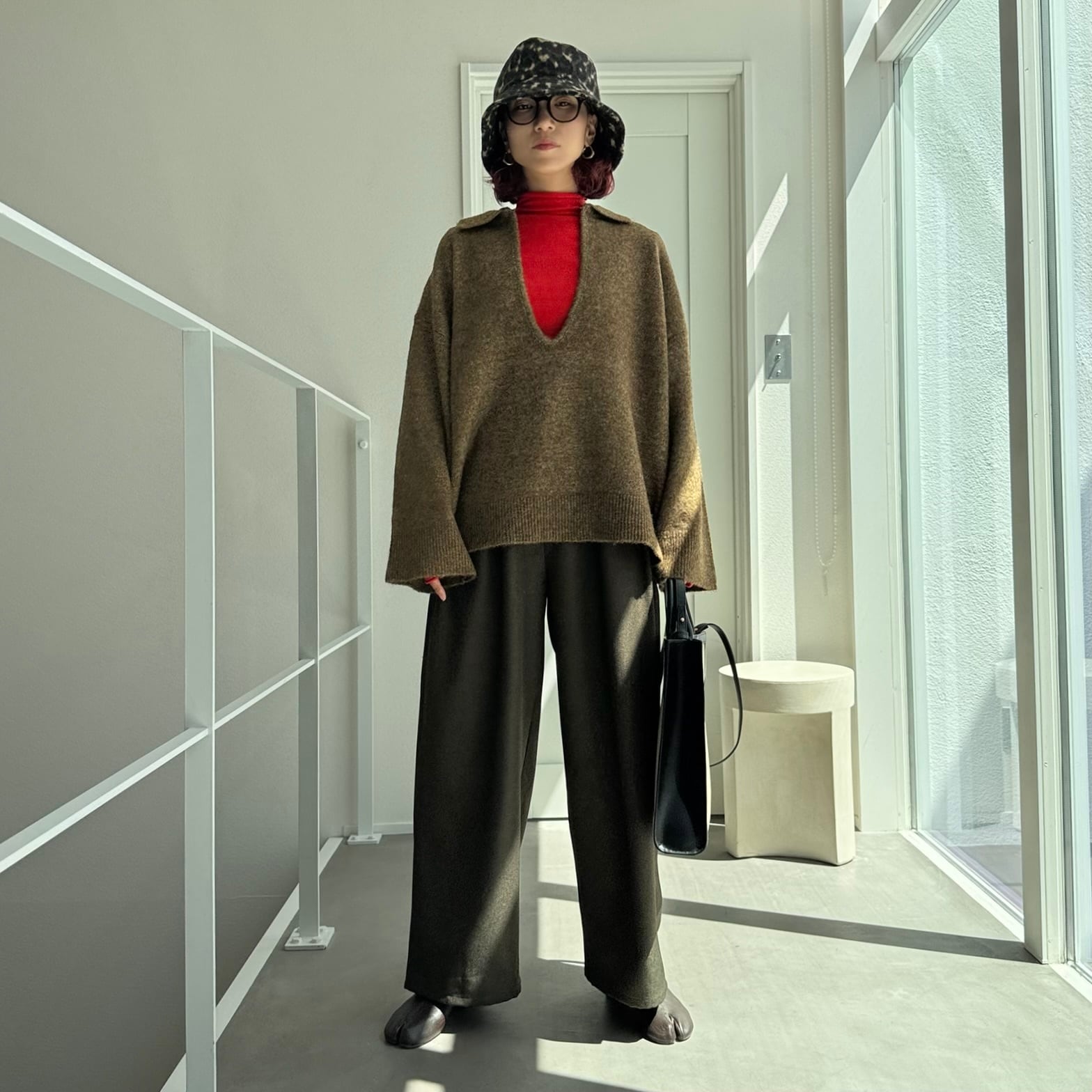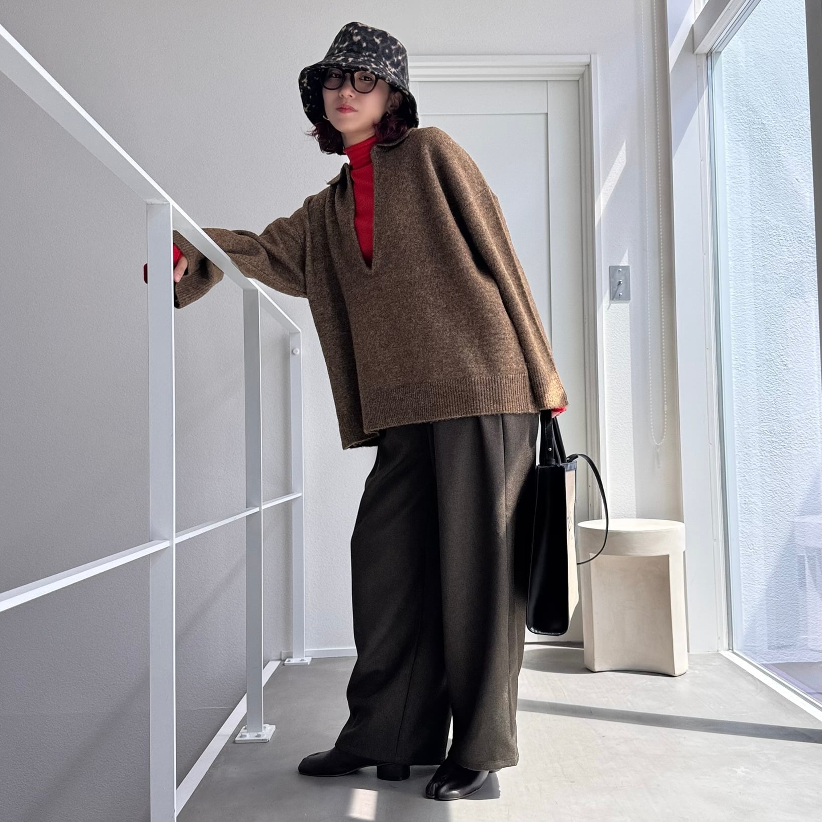 毎年大人気のくしゅモック指穴ニット。首元は、ほどよい高さのモックネック。締めつけが少なく絶妙なフィット感が魅力なポイントです。レーヨン混のモチモチとした生地感が気持ちよく、ストレスフリーな着心地。ニットベストやVネックのトップスのインナーとしても使いやすい万能な一着です。