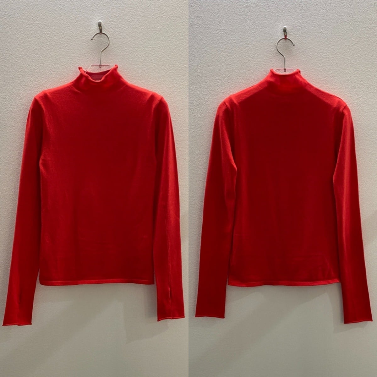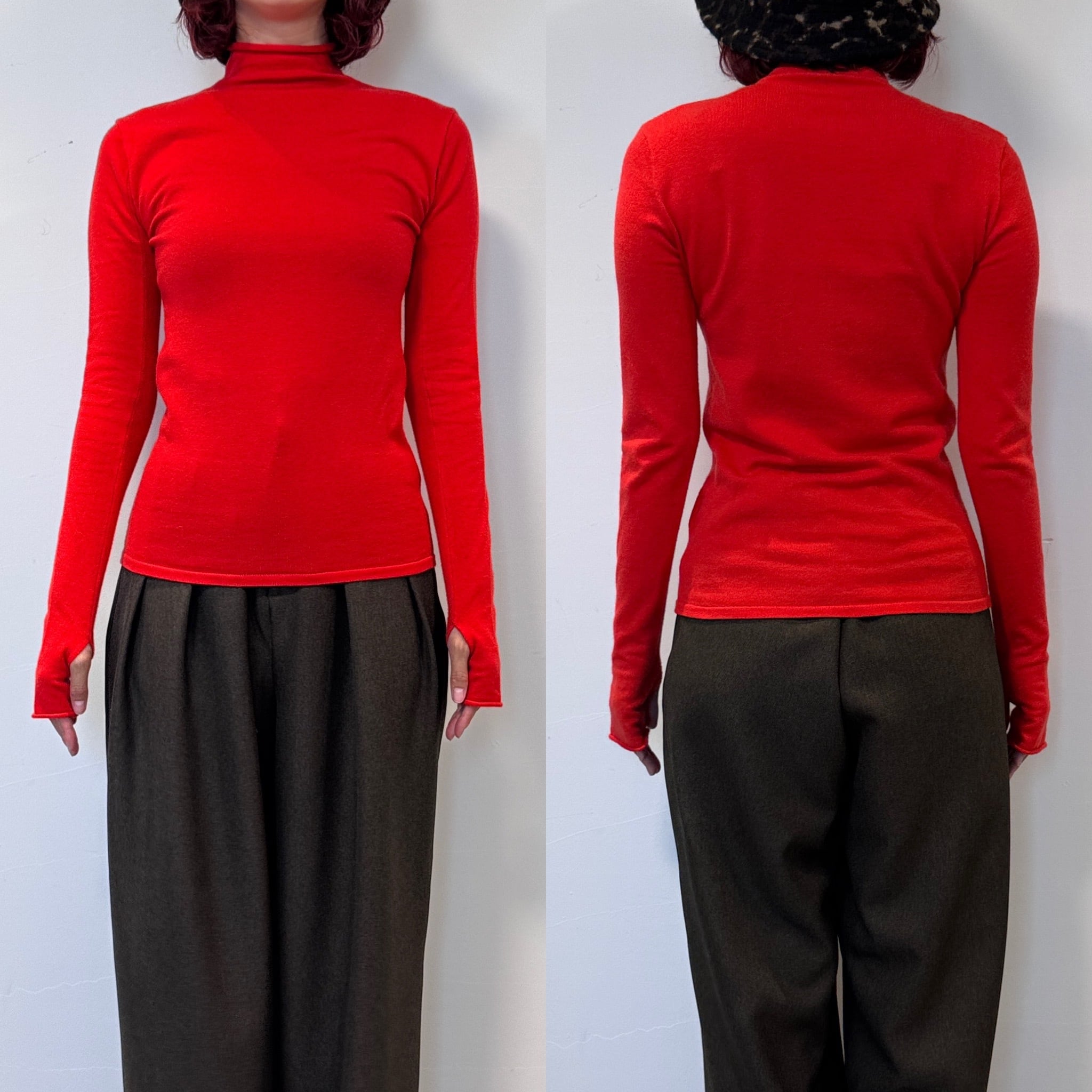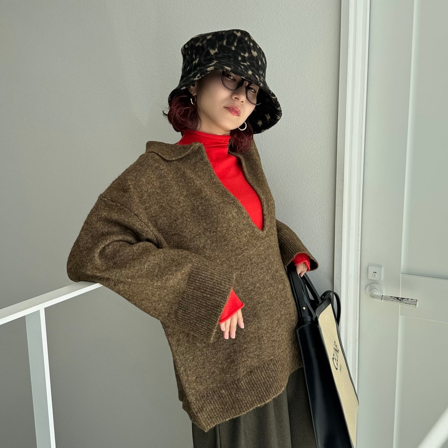 毎年大人気のくしゅモック指穴ニット。首元は、ほどよい高さのモックネック。締めつけが少なく絶妙なフィット感が魅力なポイントです。レーヨン混のモチモチとした生地感が気持ちよく、ストレスフリーな着心地。ニットベストやVネックのトップスのインナーとしても使いやすい万能な一着です。