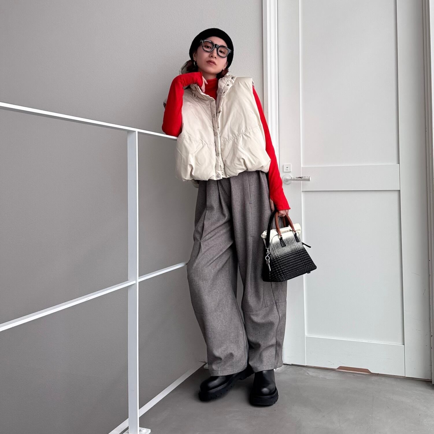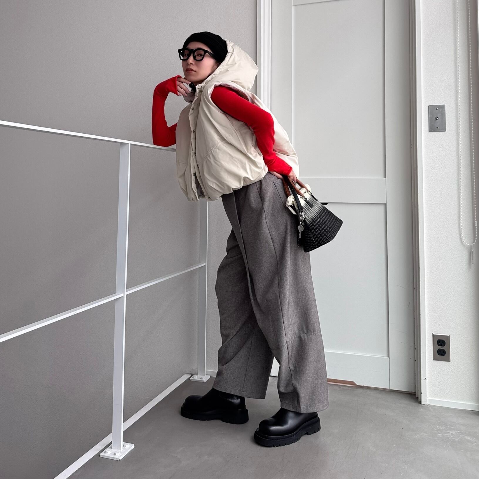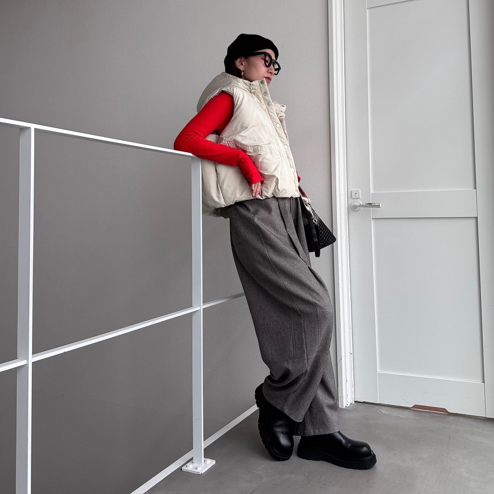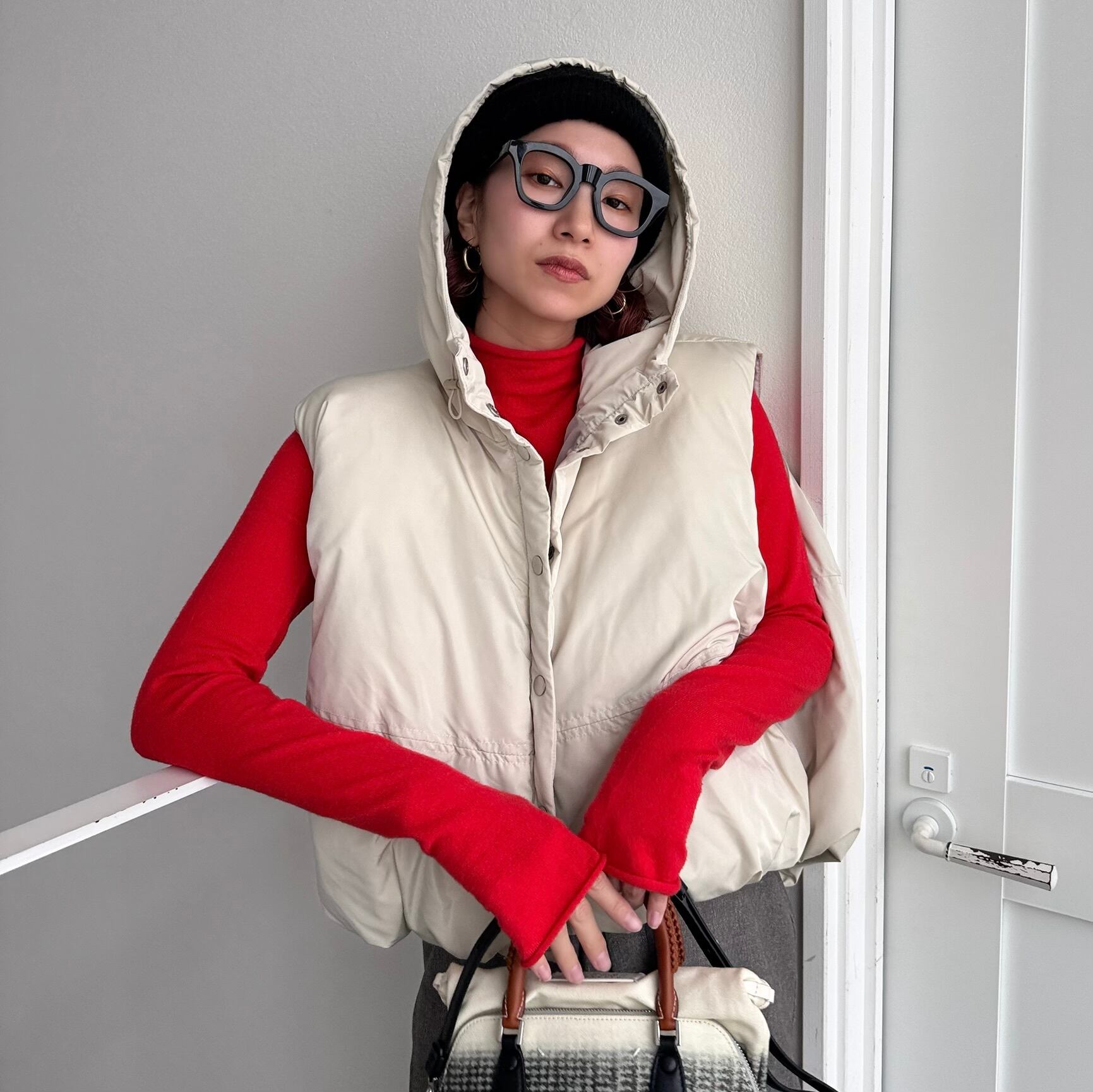 vest:フーディーマットファイバーダウンvest/エクリュ