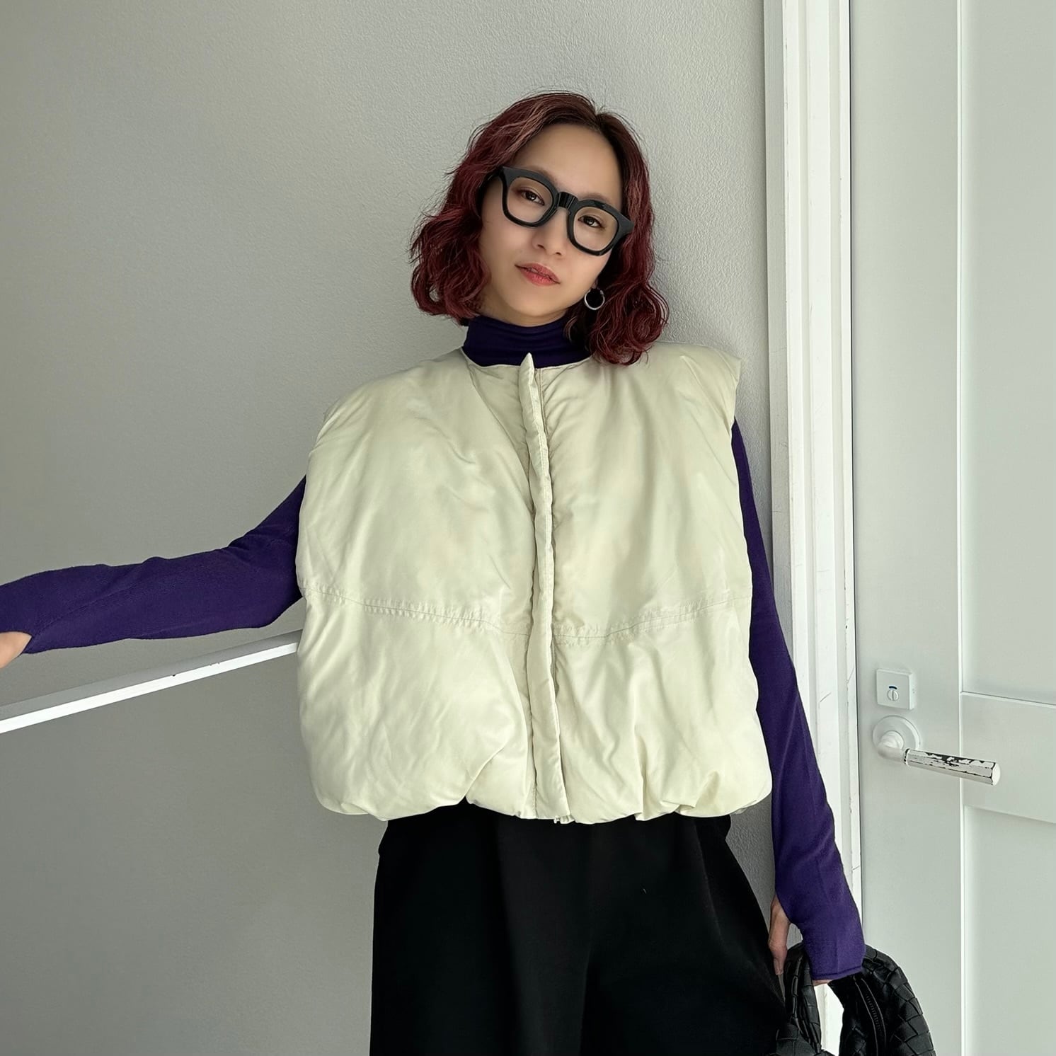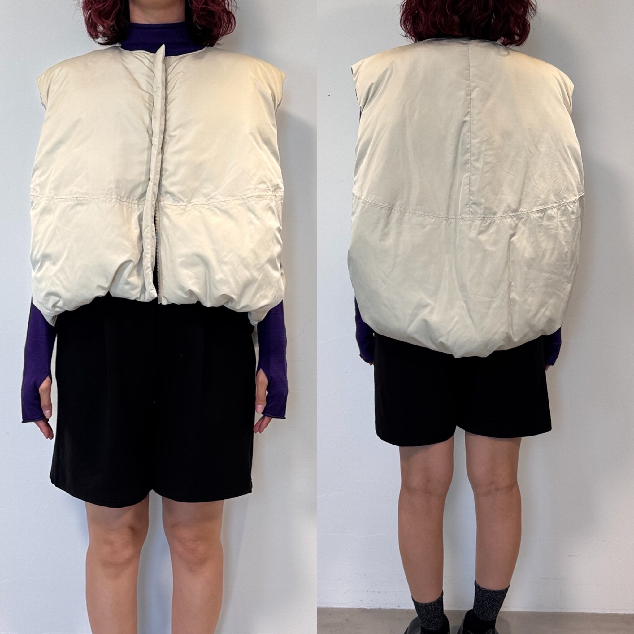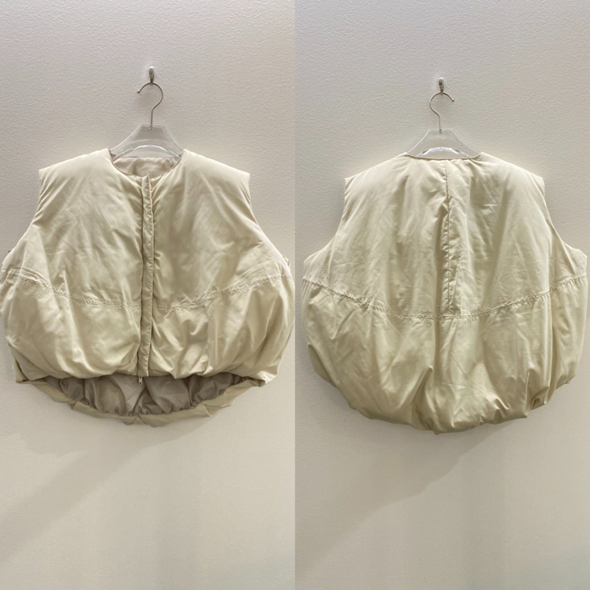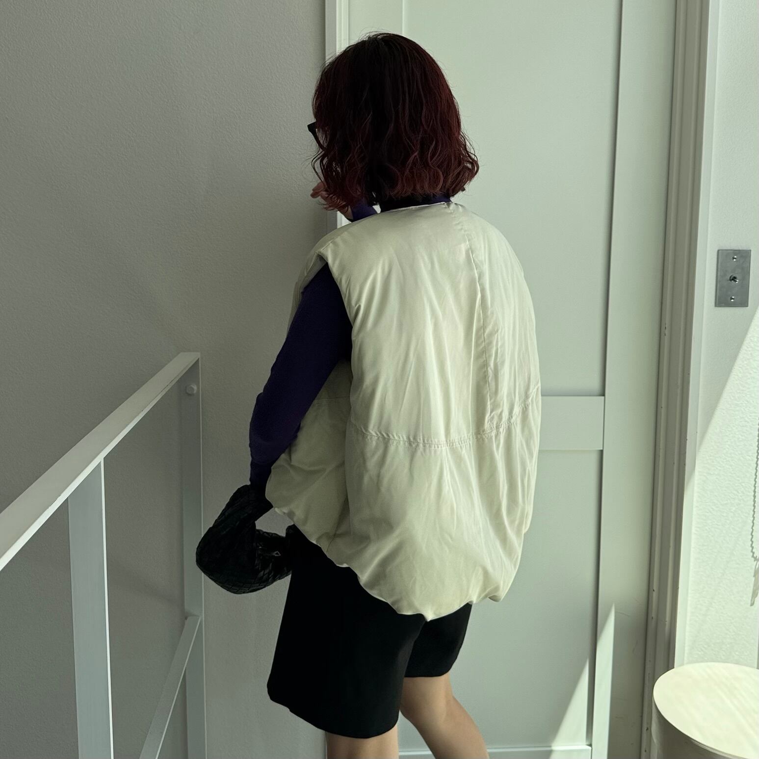 ノーカラーマットファイバーダウンvest/エクリュ