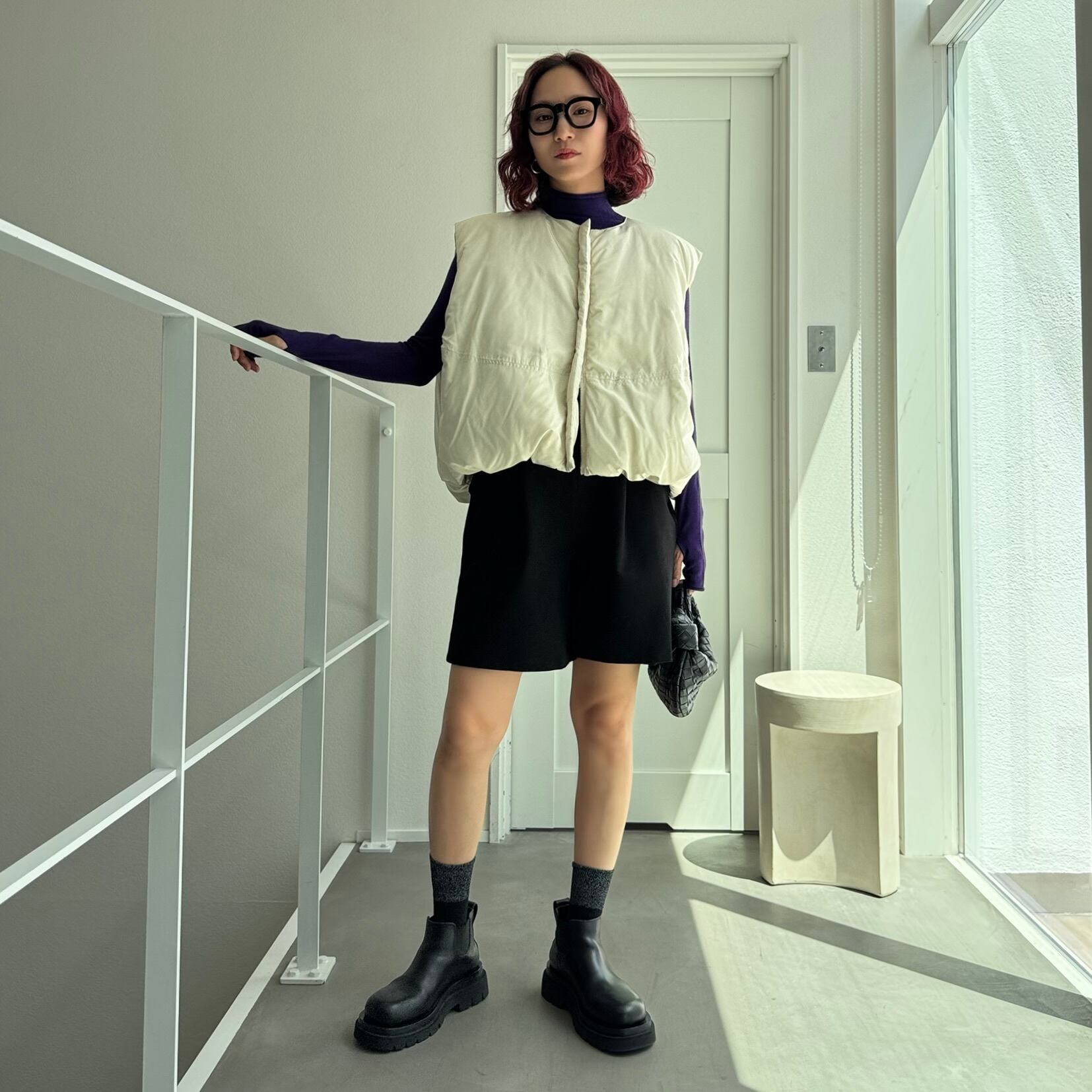 ダウンのような温かさのあるファイバーダウンを使用したノーカラーベスト。すっきりとしたノーカラーデザインでパーカーやハイネックのインナーとも相性抜群。非常に高い保温性もある為防寒としてもピッタリ。裾がバルーンになっており、コロンとしたフォルムが可愛く前後差のあるデザインなのでこなれ感もプラスされています。