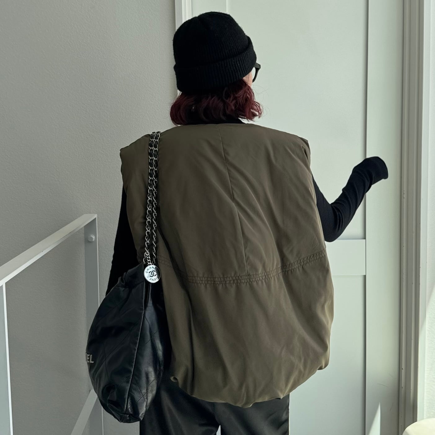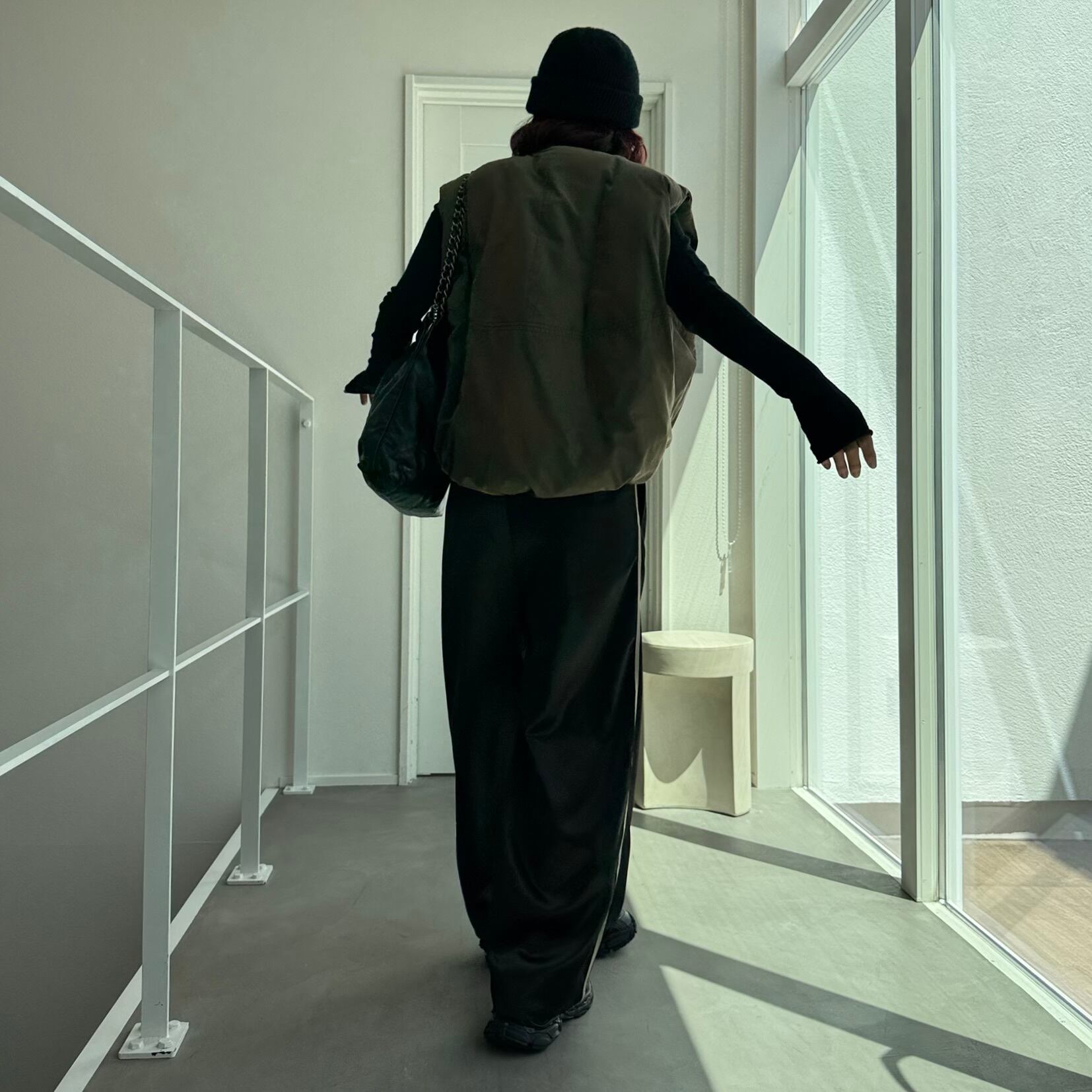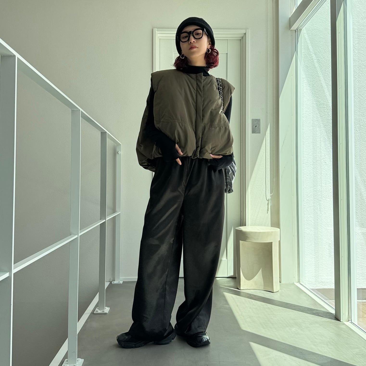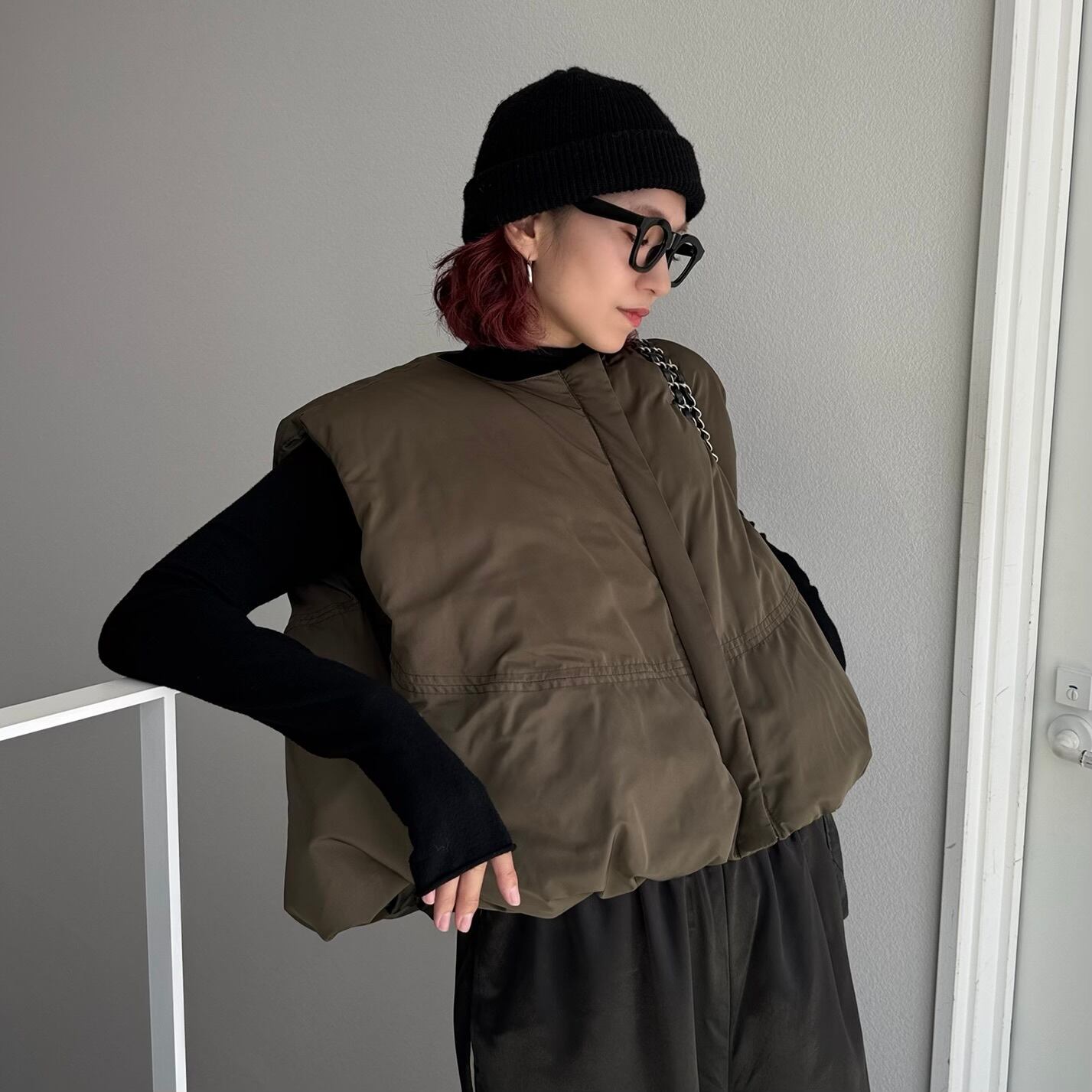 ダウンのような温かさのあるファイバーダウンを使用したノーカラーベスト。すっきりとしたノーカラーデザインでパーカーやハイネックのインナーとも相性抜群。非常に高い保温性もある為防寒としてもピッタリ。裾がバルーンになっており、コロンとしたフォルムが可愛く前後差のあるデザインなのでこなれ感もプラスされています。