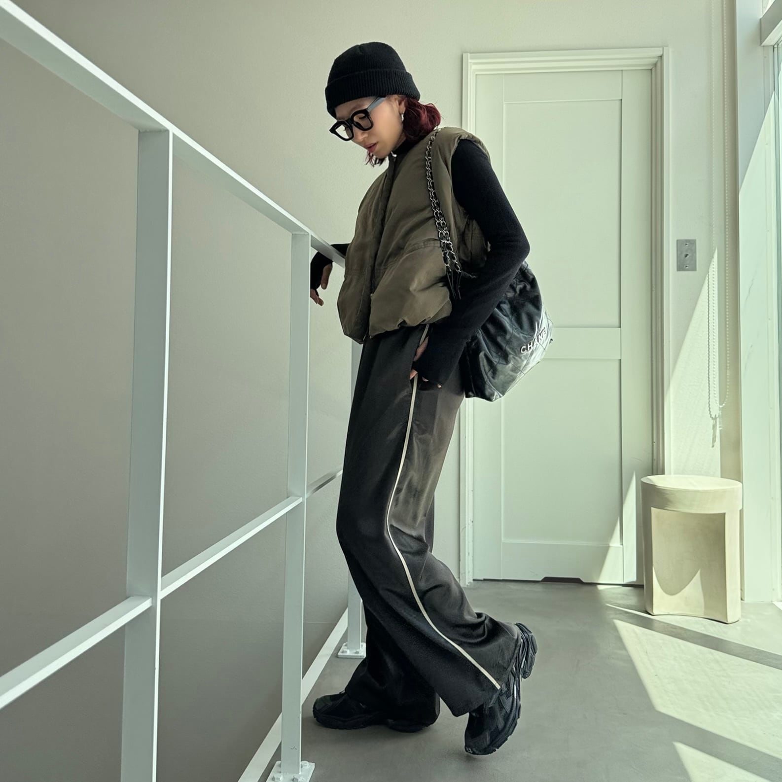 tops:2025くしゅモック指穴knit/ブラック