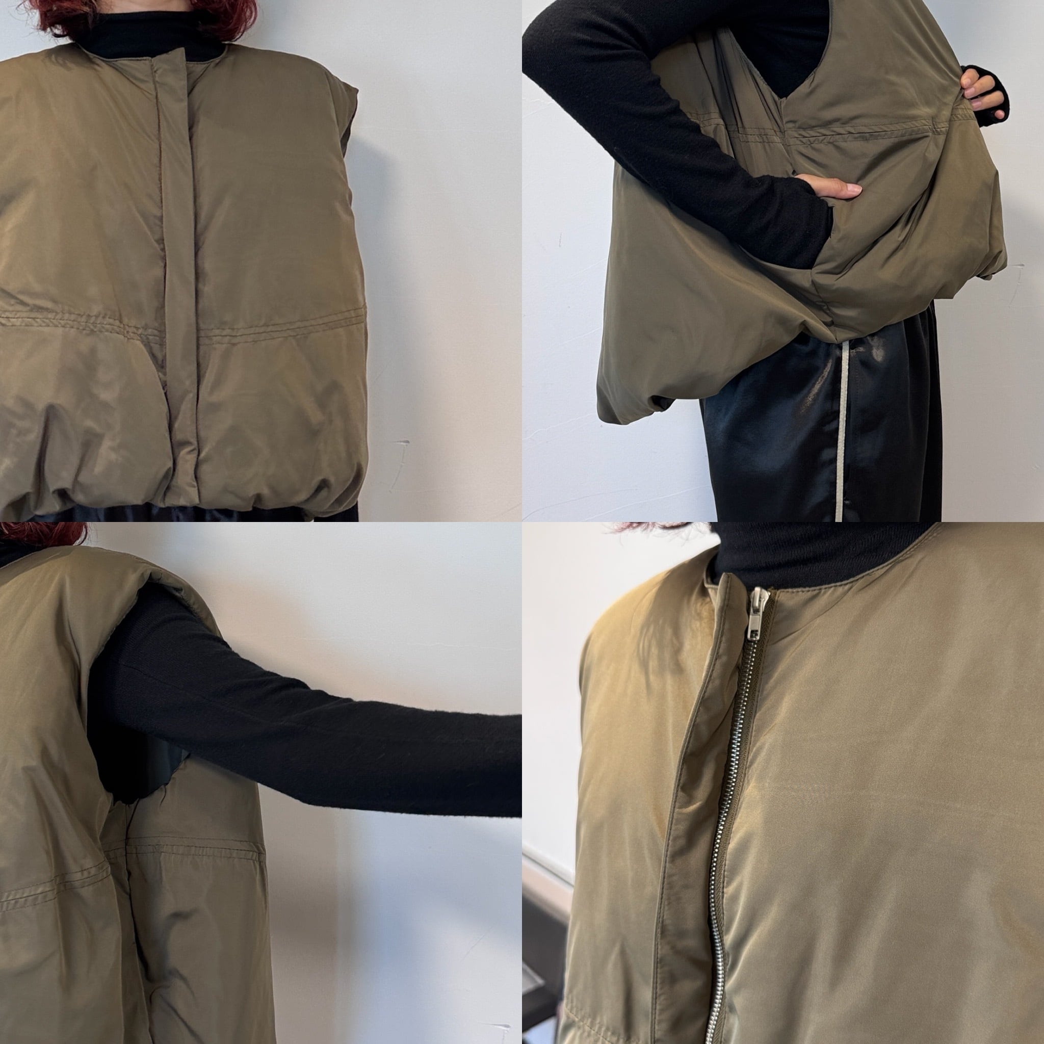 ノーカラーマットファイバーダウンvest/オリーブ