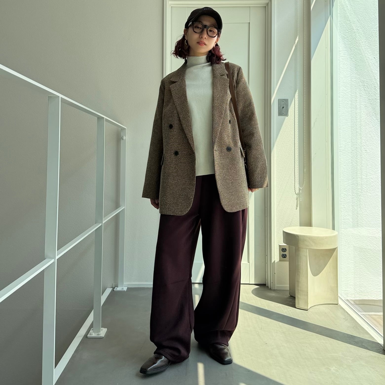 オーバーなサイズ感がこなれてみせてくれるテーラードジャケット。複数の糸を織りまぜ、表情のあるミックスカラーのツイード素材は、さらっとしたタッチで普段使いからちょっとしたおでかけまで、スタイリング次第で様々なシーンで着用頂けます。ダブル仕様なので、ボタンを開けてゆったり着て頂くのもおすすめ。シックなスタイリングはもちろん、デニムやスウェットなどカジュアルなアイテムとのスタイリングもおすすめです。
