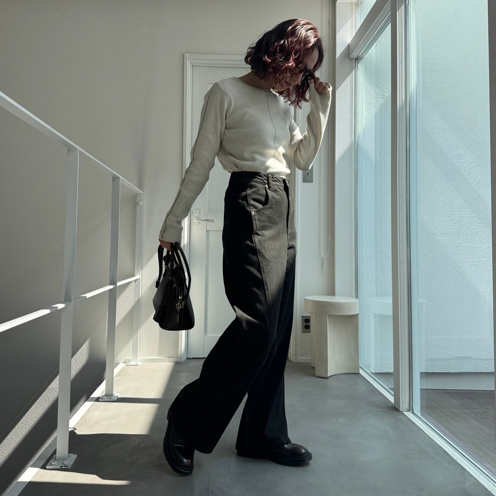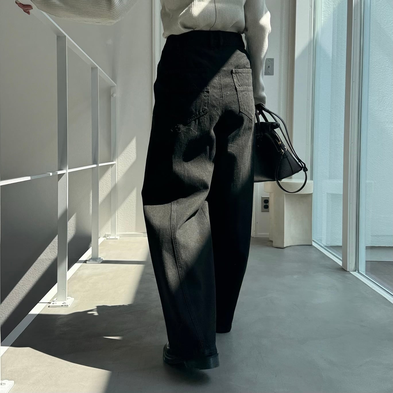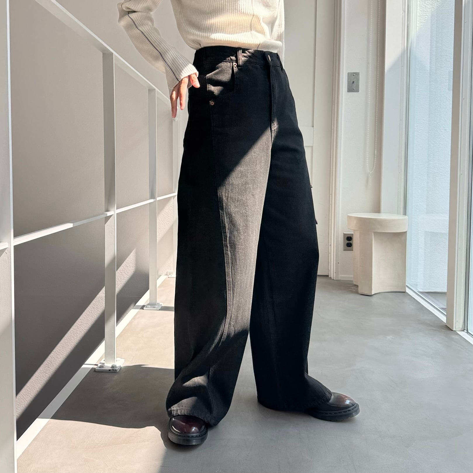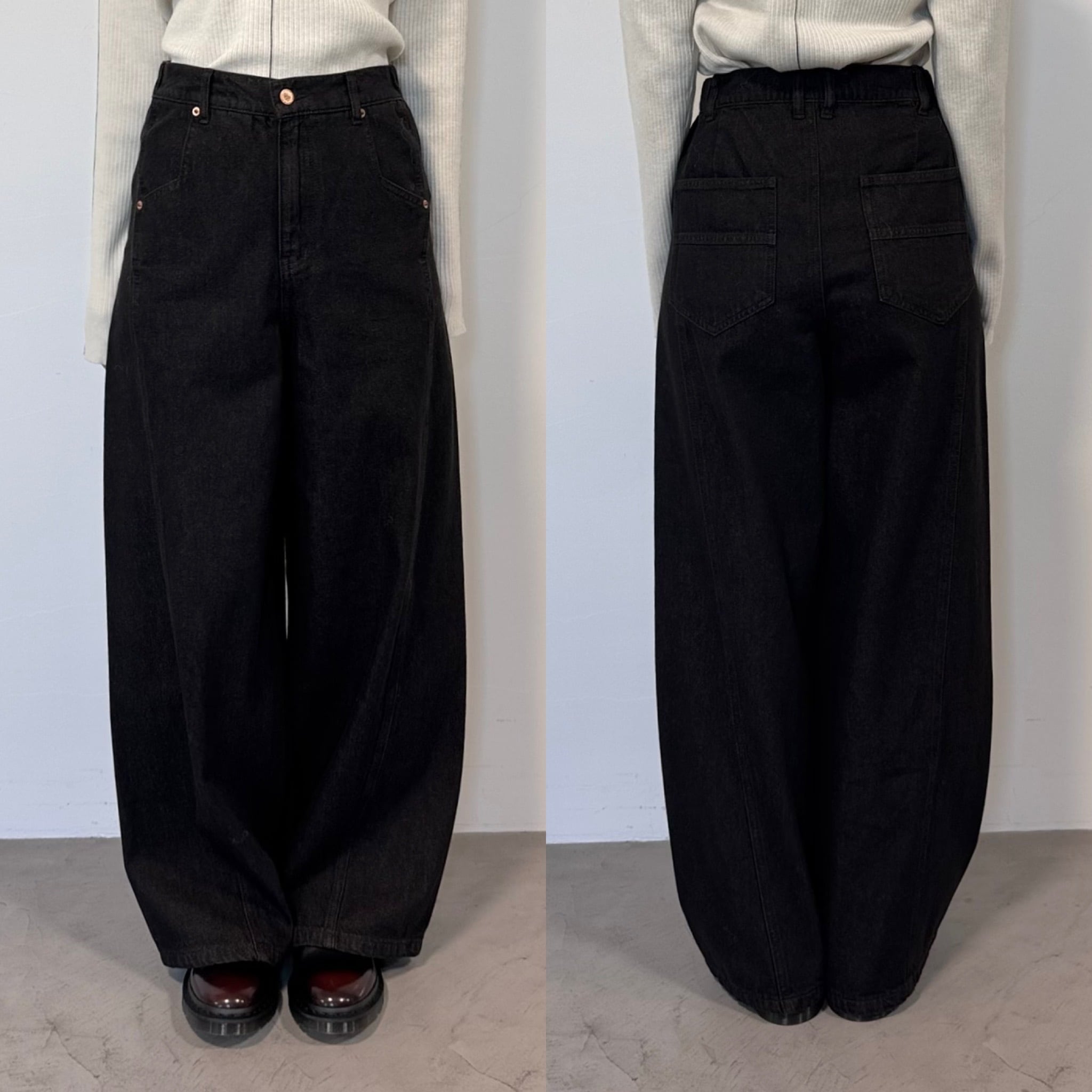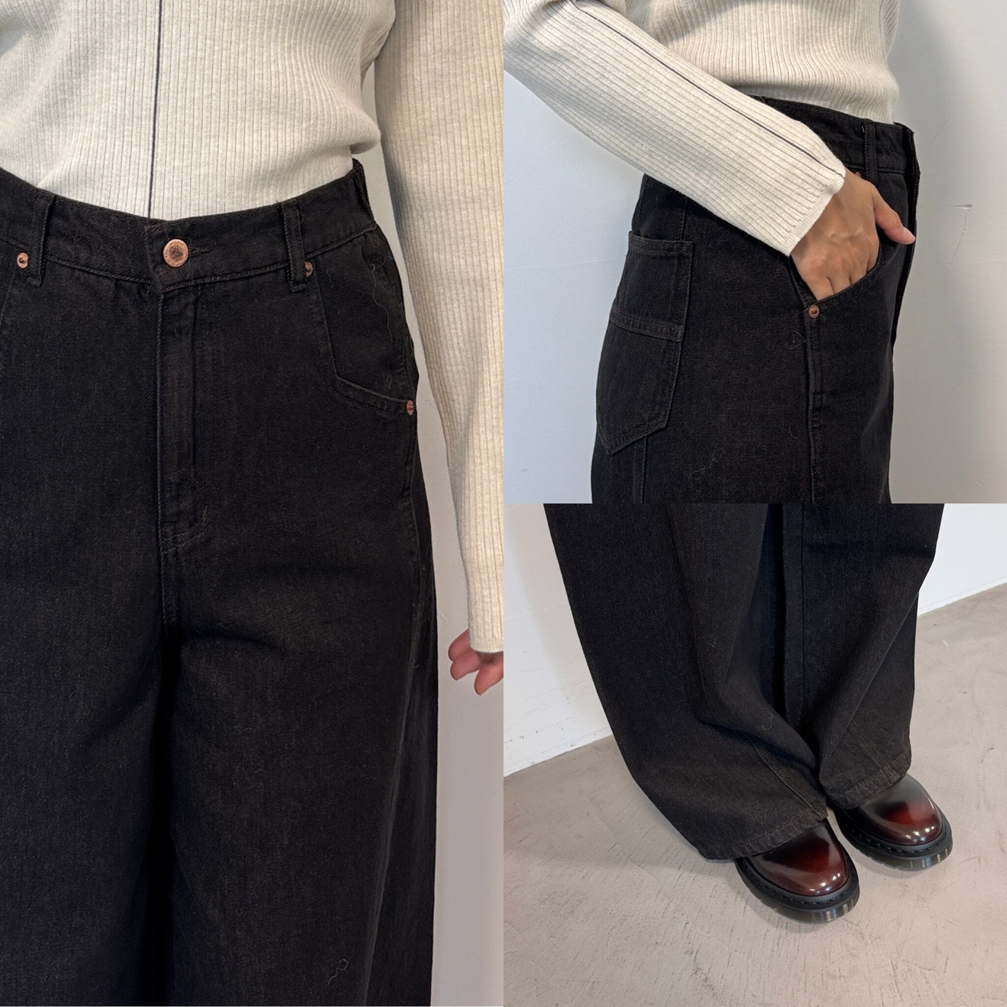 切替ワイドデニムPT/ブラック