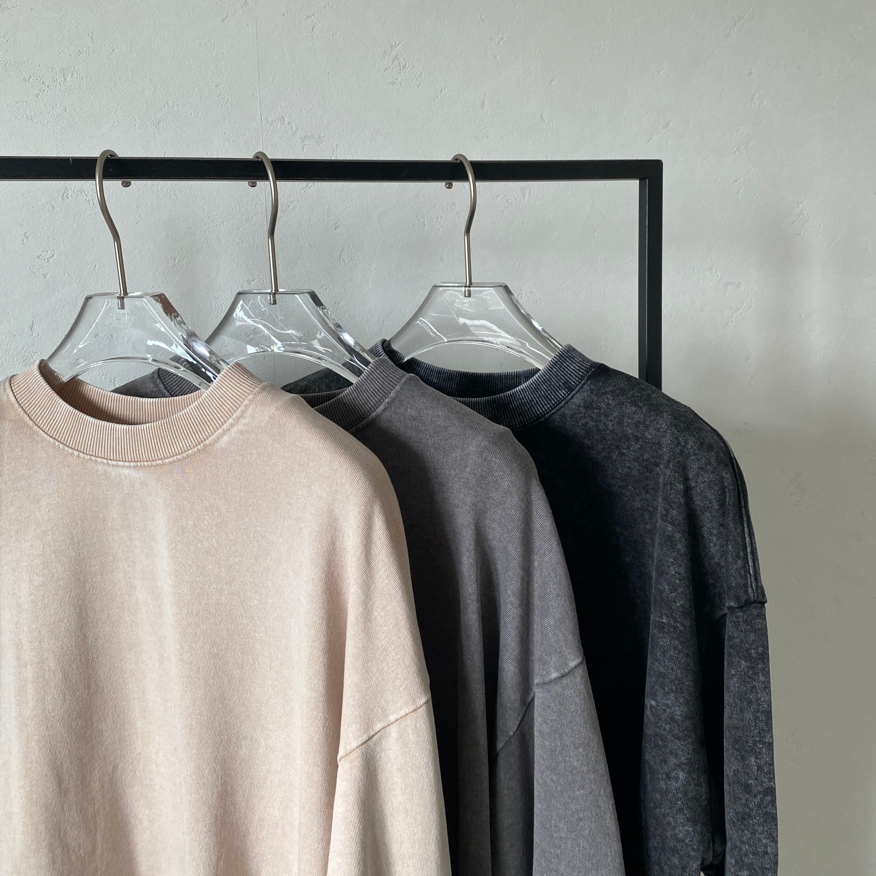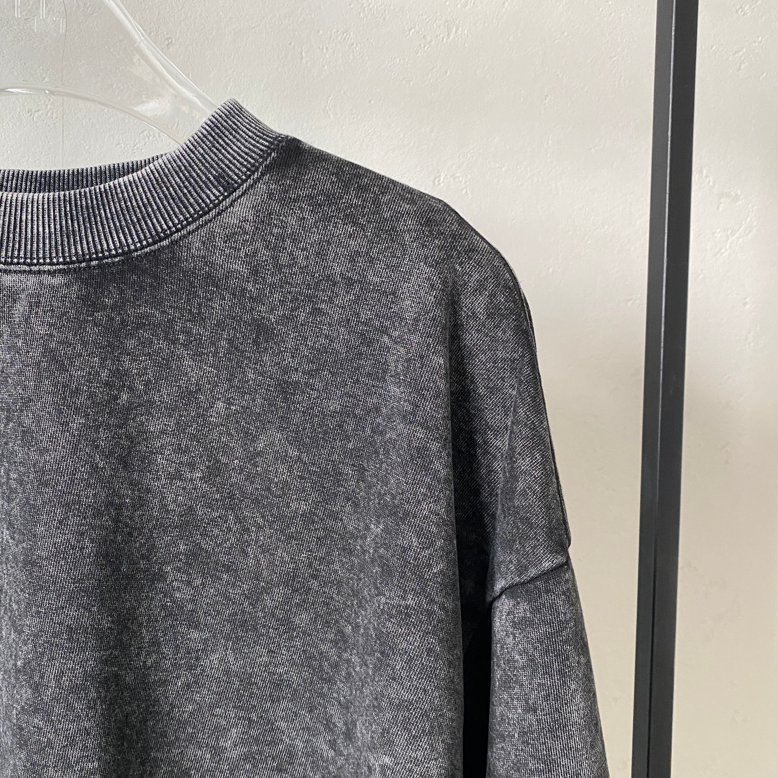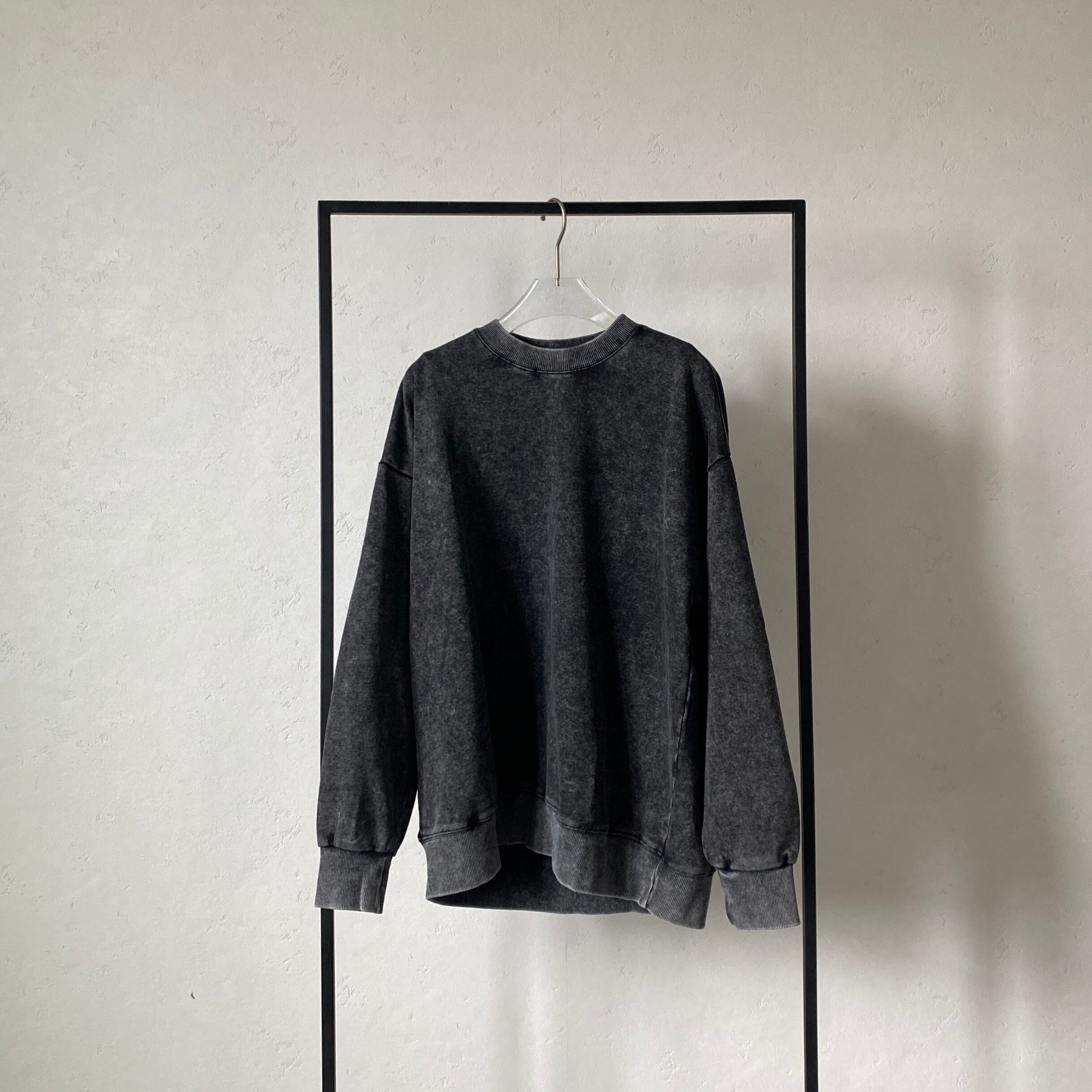 ヴィンテージ感が楽しめるウォッシュ加工を施したスウェットプルオーバー。トレンドのヴィンテージ感/グランジ感と相性がよく、まるで使いこんだような色味を楽しんでいただけます。加工によりヘビー過ぎず着やすさも考慮した風合いに。腰にかかるコンパクトな丈感でありながらゆったりとした身幅と袖丈で、大人のルーズな着こなしが叶います。