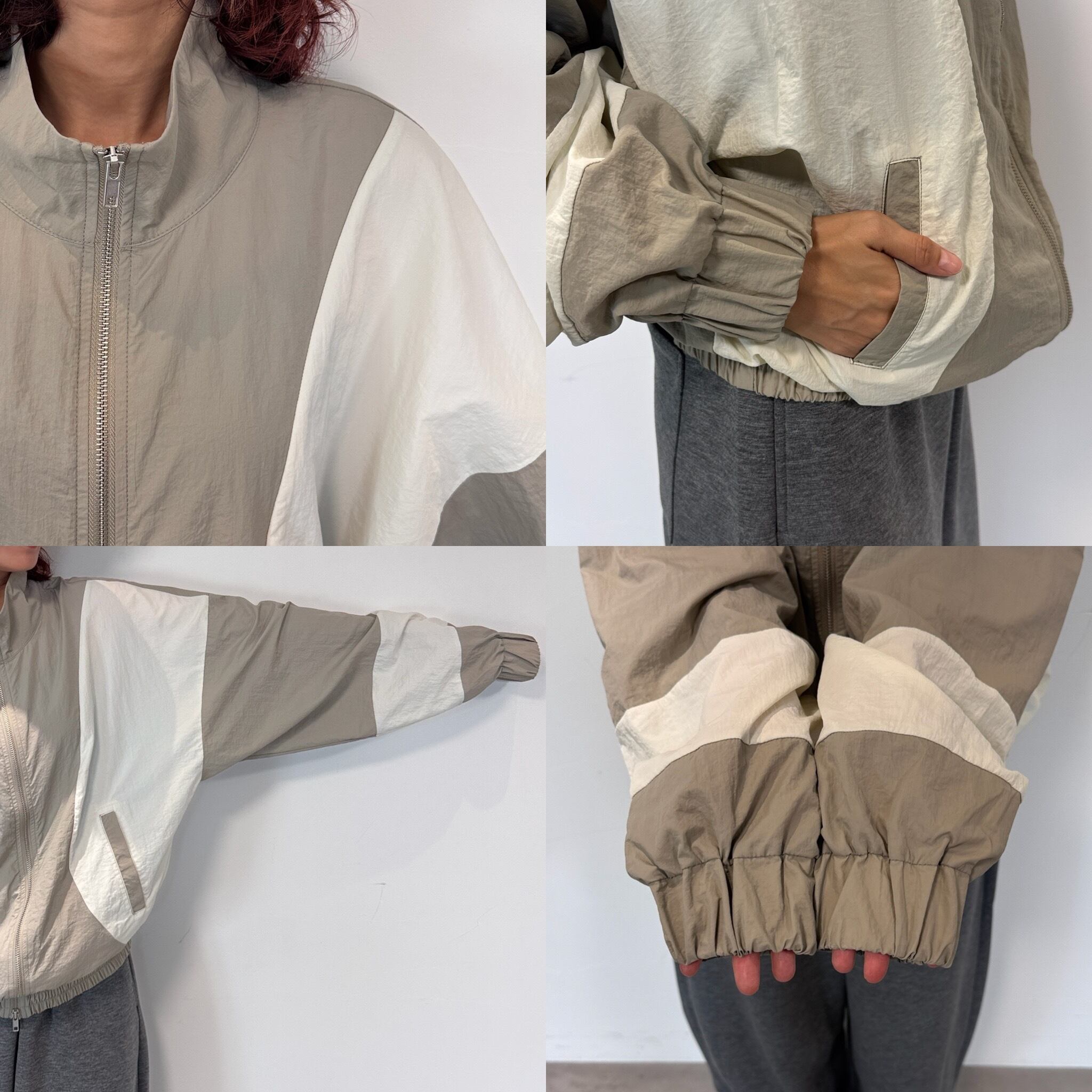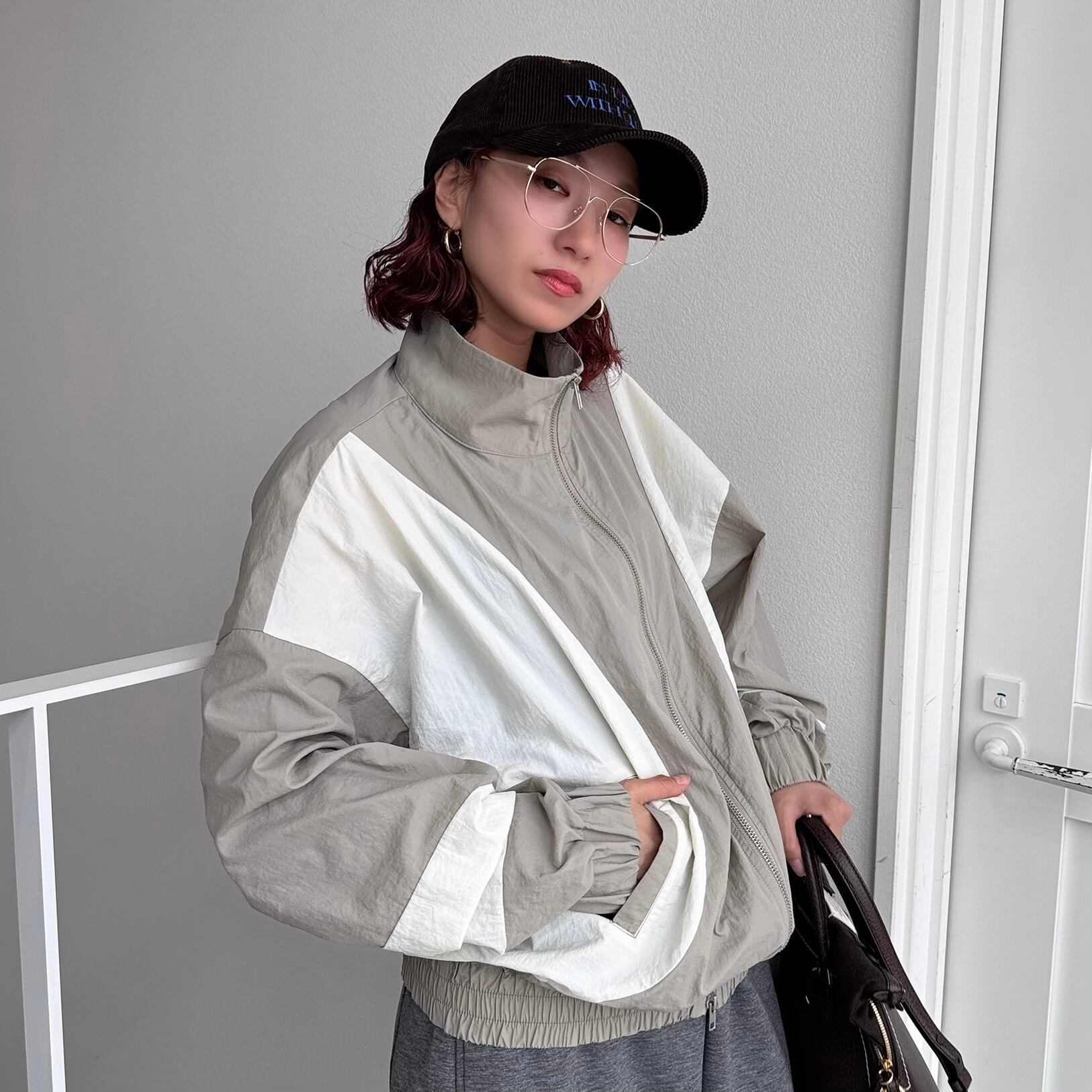細かなシボ感と軽やかな素材感が特徴の素材を使用したスポーティーブルゾン。軽量で軽やかな着心地を実現。ラグランスリーブで動きやすく、リラックスしたシルエットのデザイン。トレンド感のあるバイカラーデザインが、コーディネートのアクセントに。カジュアルにはもちろん、スカートやワンピースと合わせたミックススタイルにもおすすめの一枚です。