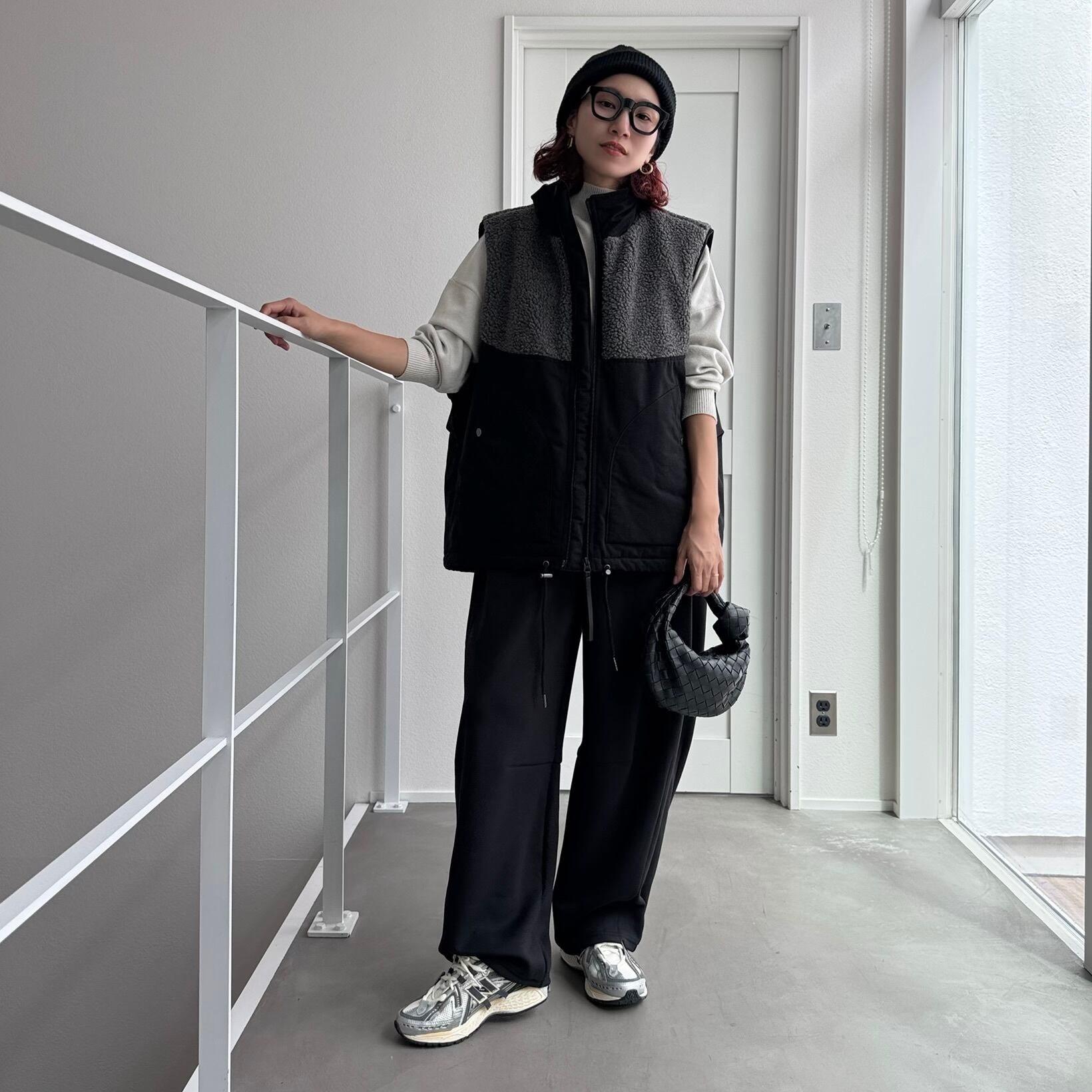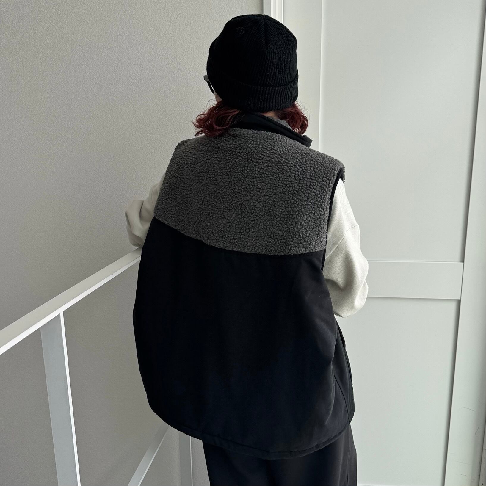 【予約:10月上旬入荷予定】ピーチボア切替中綿vest/ブラック