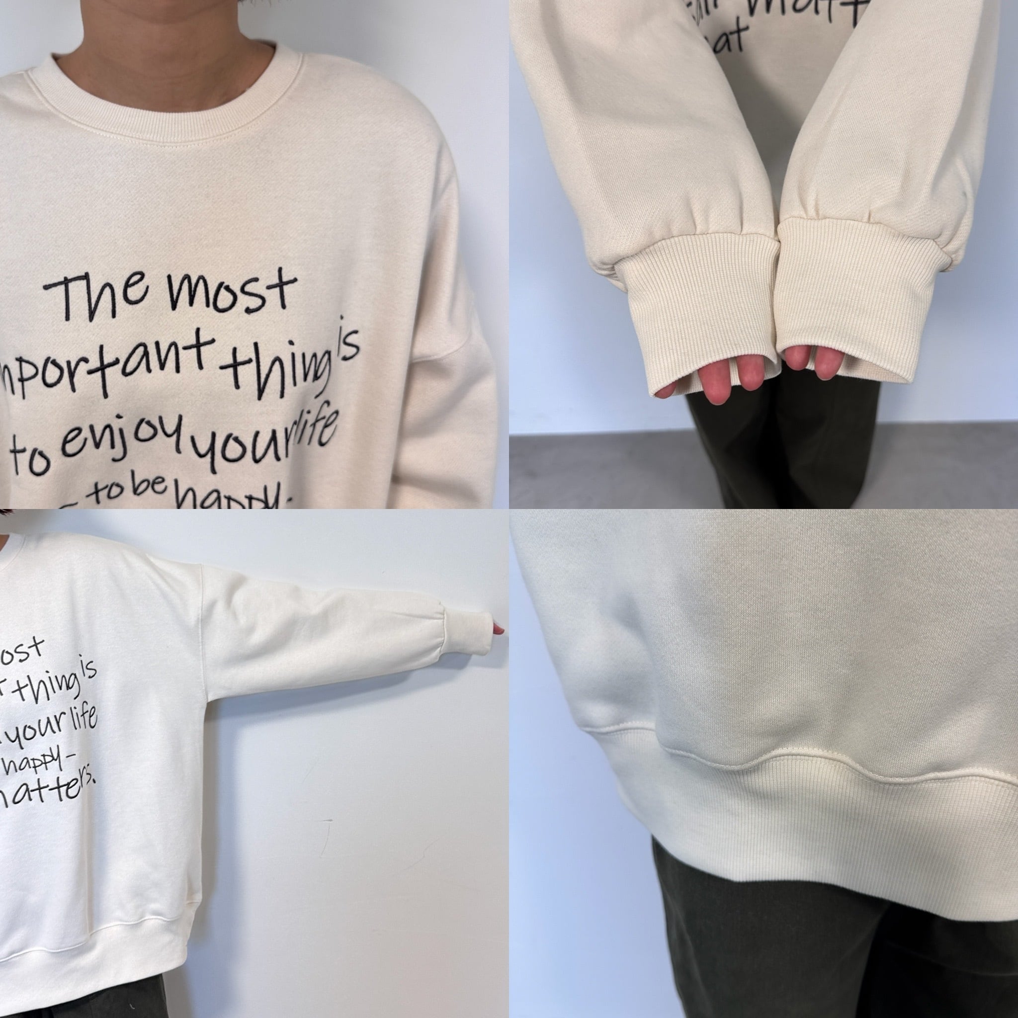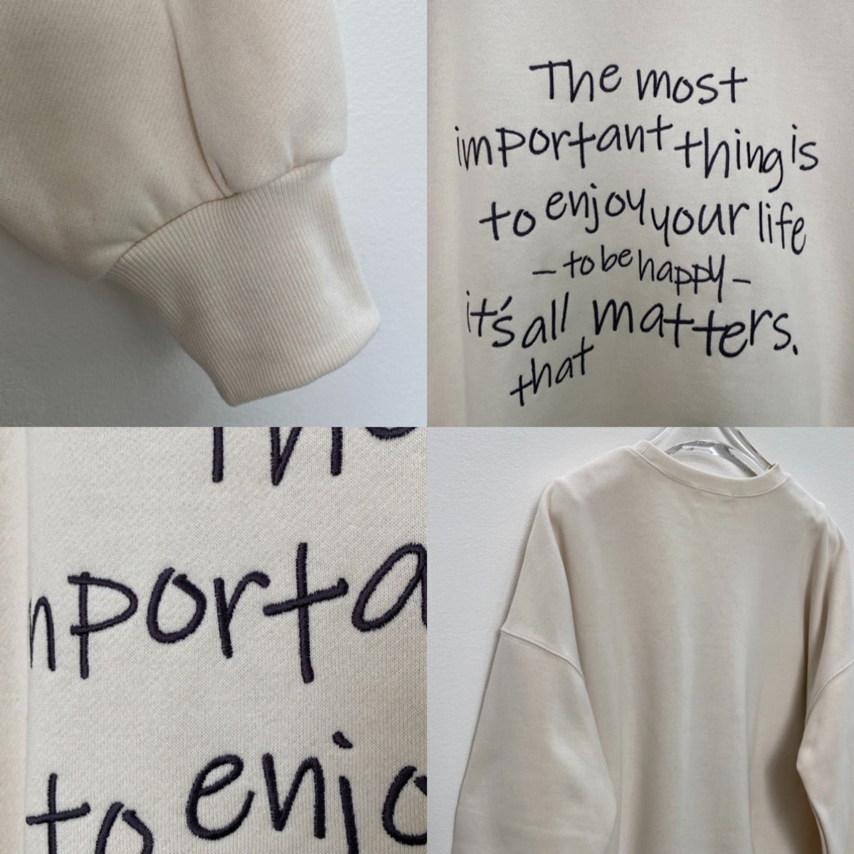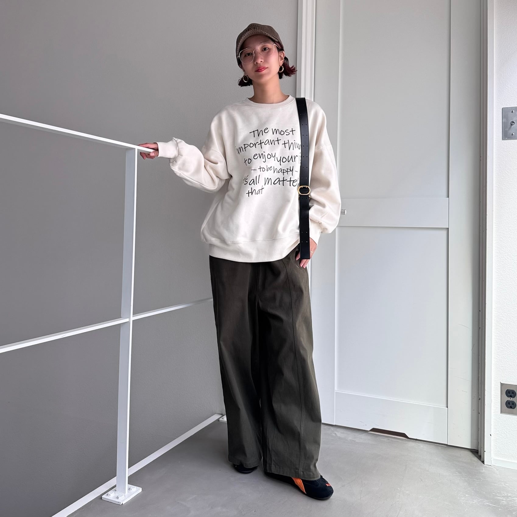 手書き風のレタリング刺繍がコーデのアクセントになる刺繍スウェット。ふっくらとした柔らかな裏起毛素材なので暖かく着用頂けます。ドロップショルダーデザインは肩をスッキリ見せて、こなれ感もプラス。ボリュームスリーブにゆったりとしたサイジングなのでコーデにほどよい抜け感がでる1枚です。