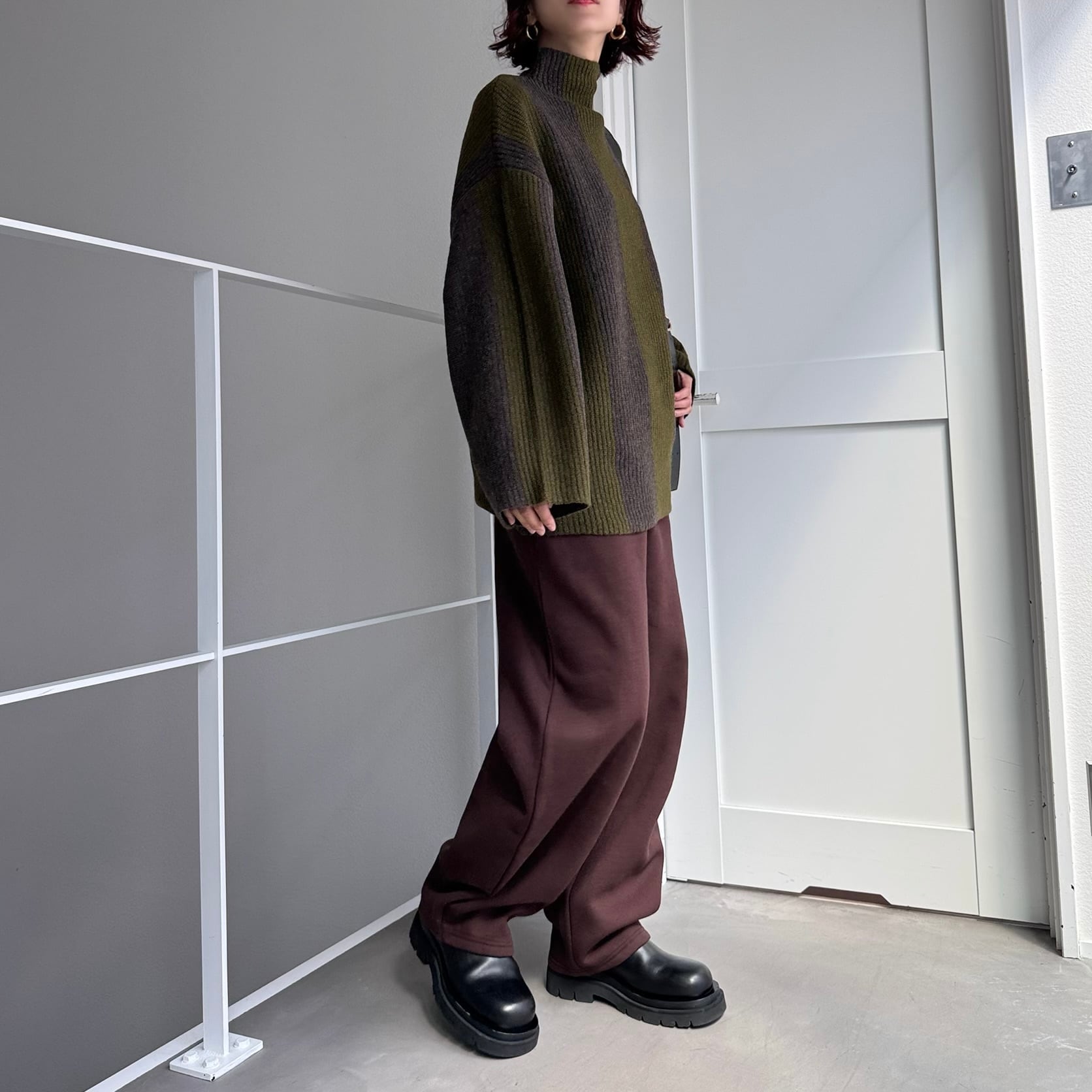 オーバーラインニットボトルネックPO/カーキ