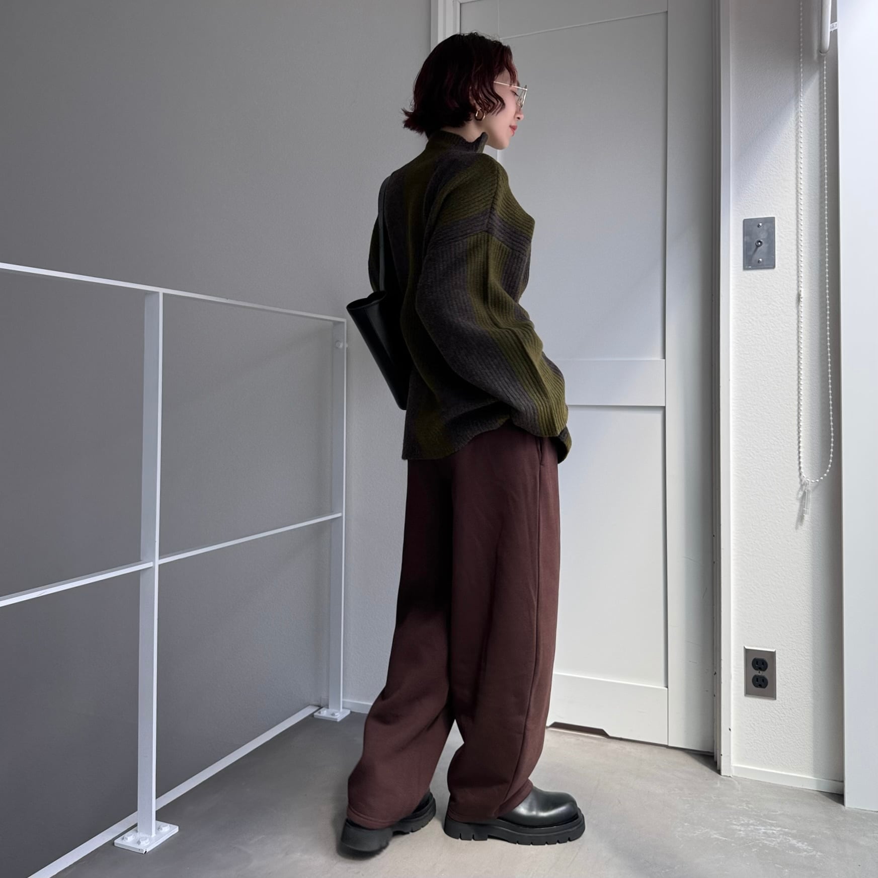 bottom:裏起毛ルーズスウェットカーブPT/ブラウン