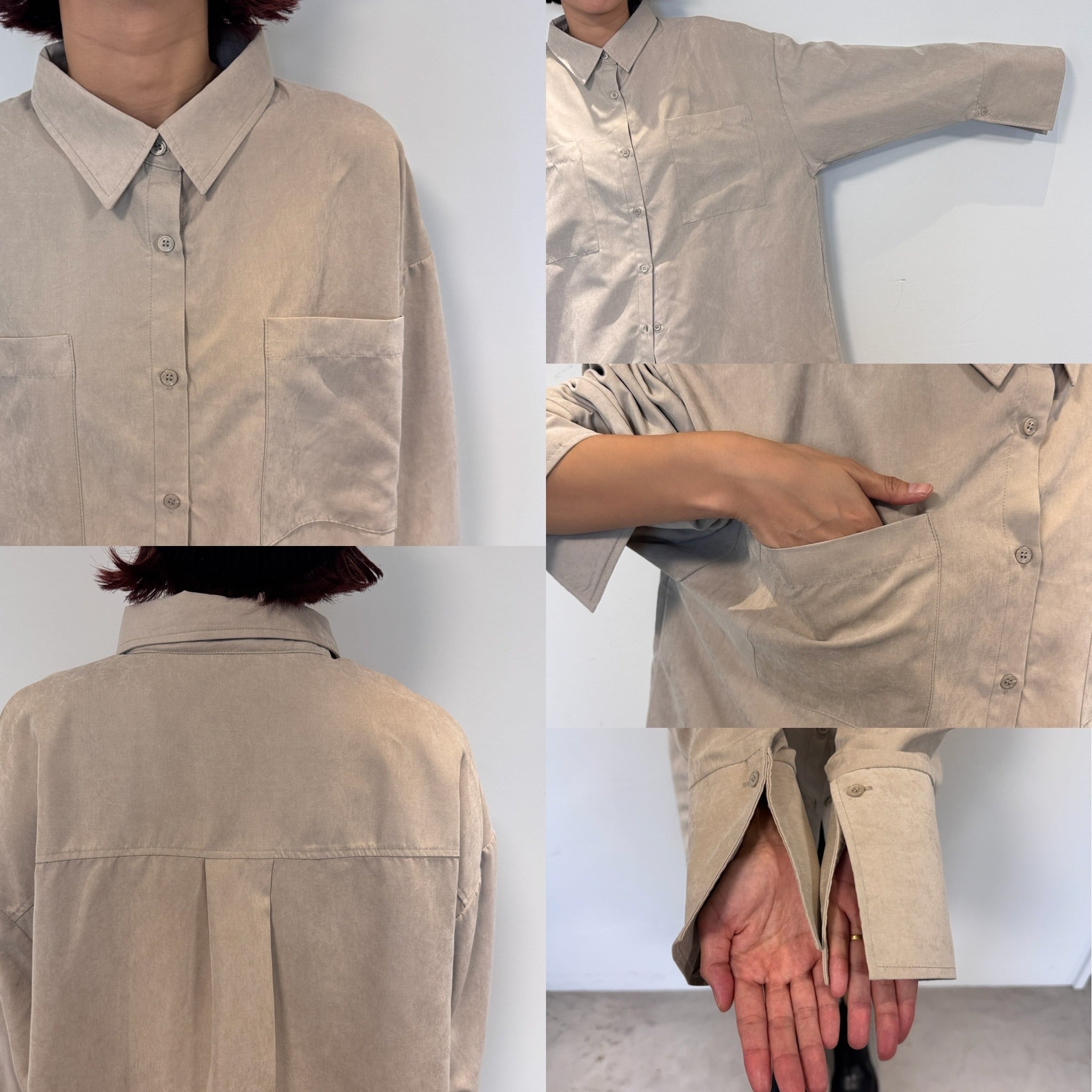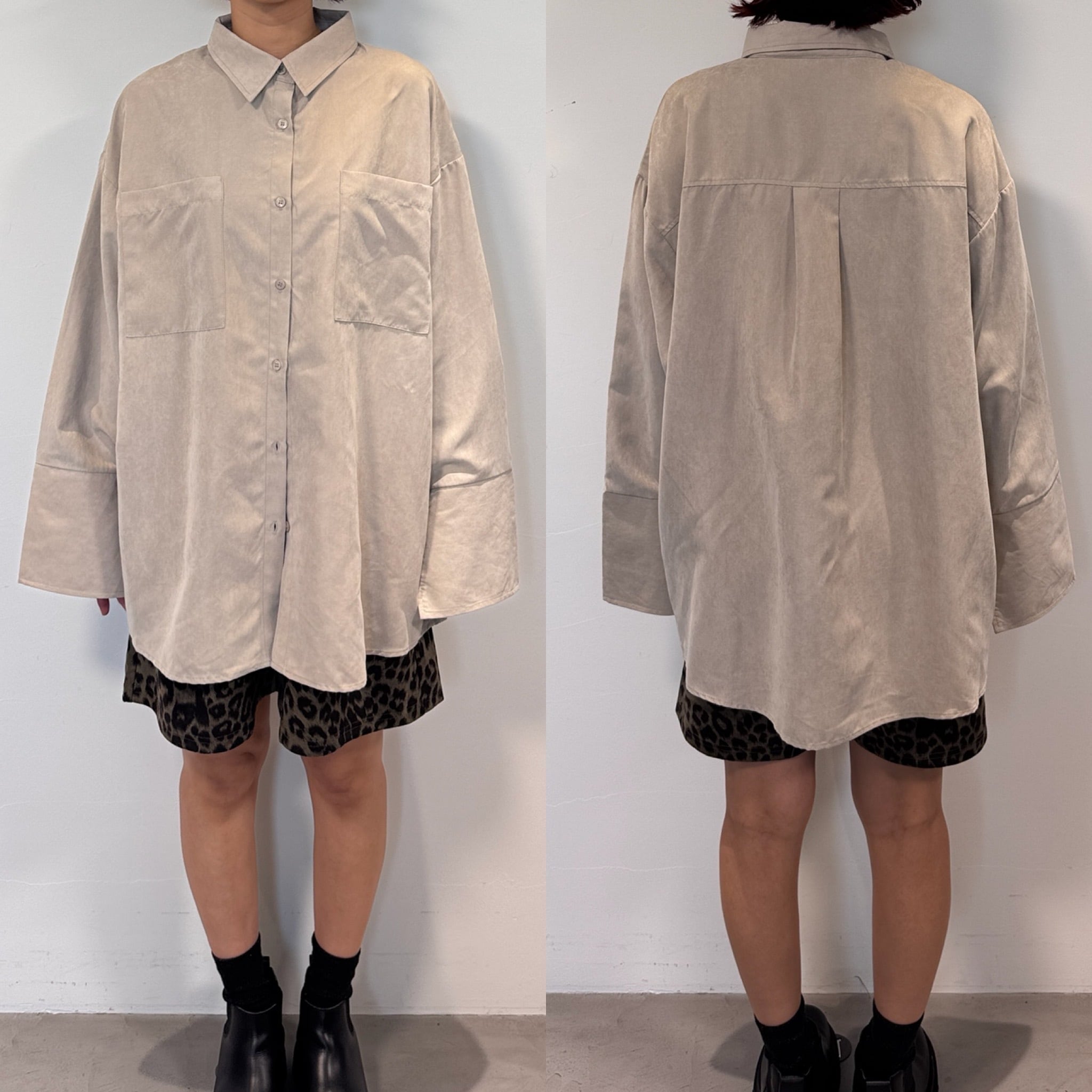 滑らかなスウェード素材のオーバーシャツ。ポケットとカフスをあえて大きめデザインにすることでコーデのアクセントに。袖丈も長めなので萌袖になるところもポイントです。肌寒くなるとインナーにタイトなニットも着用できるので長い期間コーデを楽しめます。