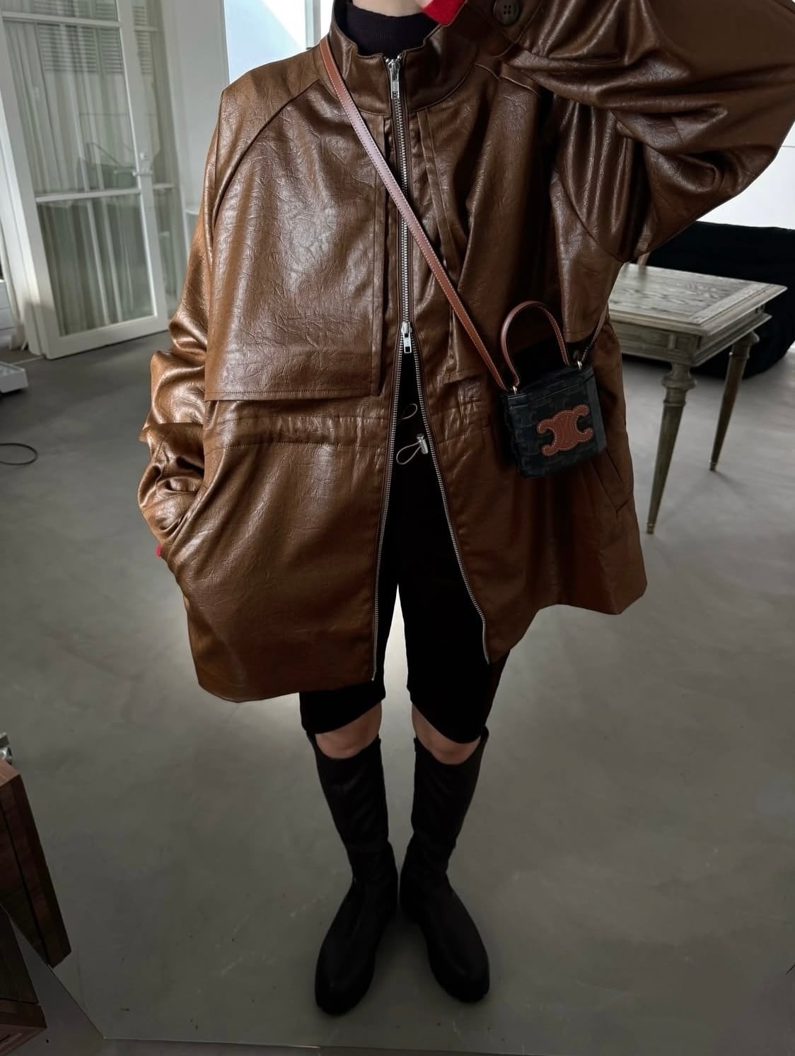 着古したような雰囲気を楽しめるヴィンテージライクなレザーライクジャケット。きめ細かい革が無骨さを演出してくれます。ダブルジップ仕様でニットやトレーナーの上からでもゆったり着ていただけ、春秋冬のアウターとしてお使いいただけます。中にはドローコードが仕込まれており、ウエスト部分を絞ってシルエットの変化を楽しめます。