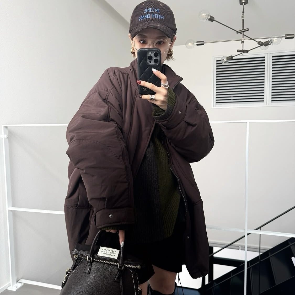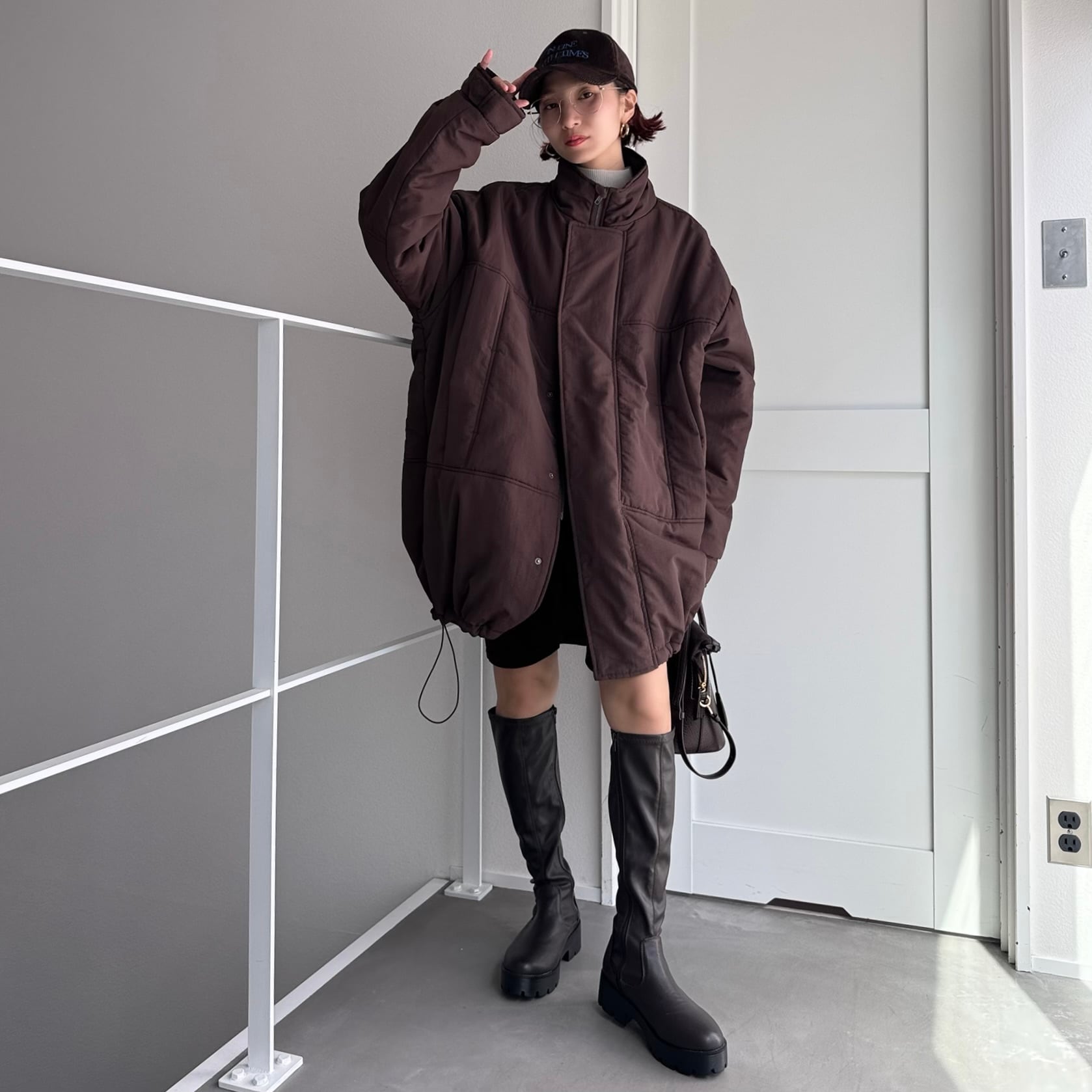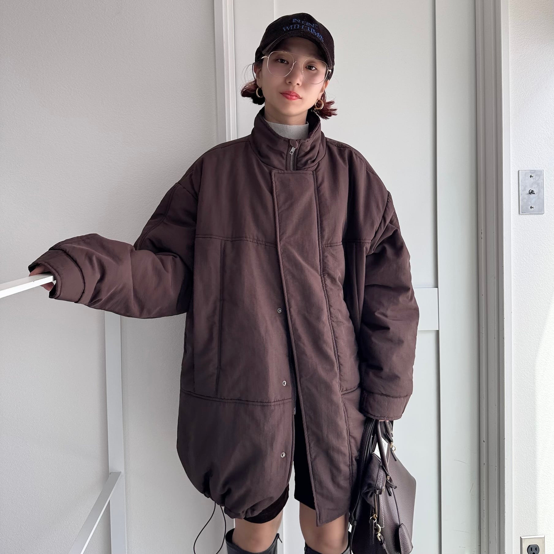 ミドル丈Bigシルエット中綿CO/ブラウン