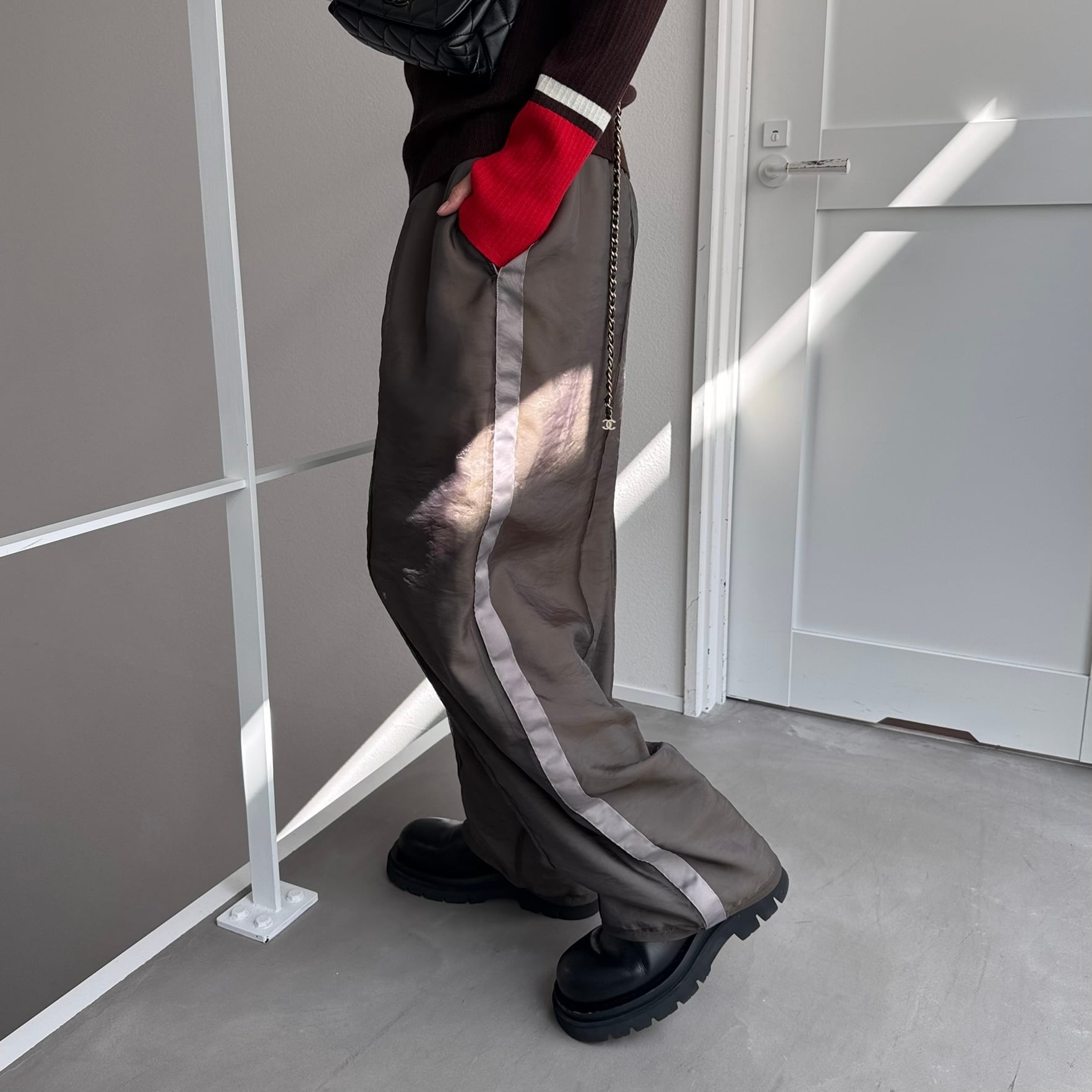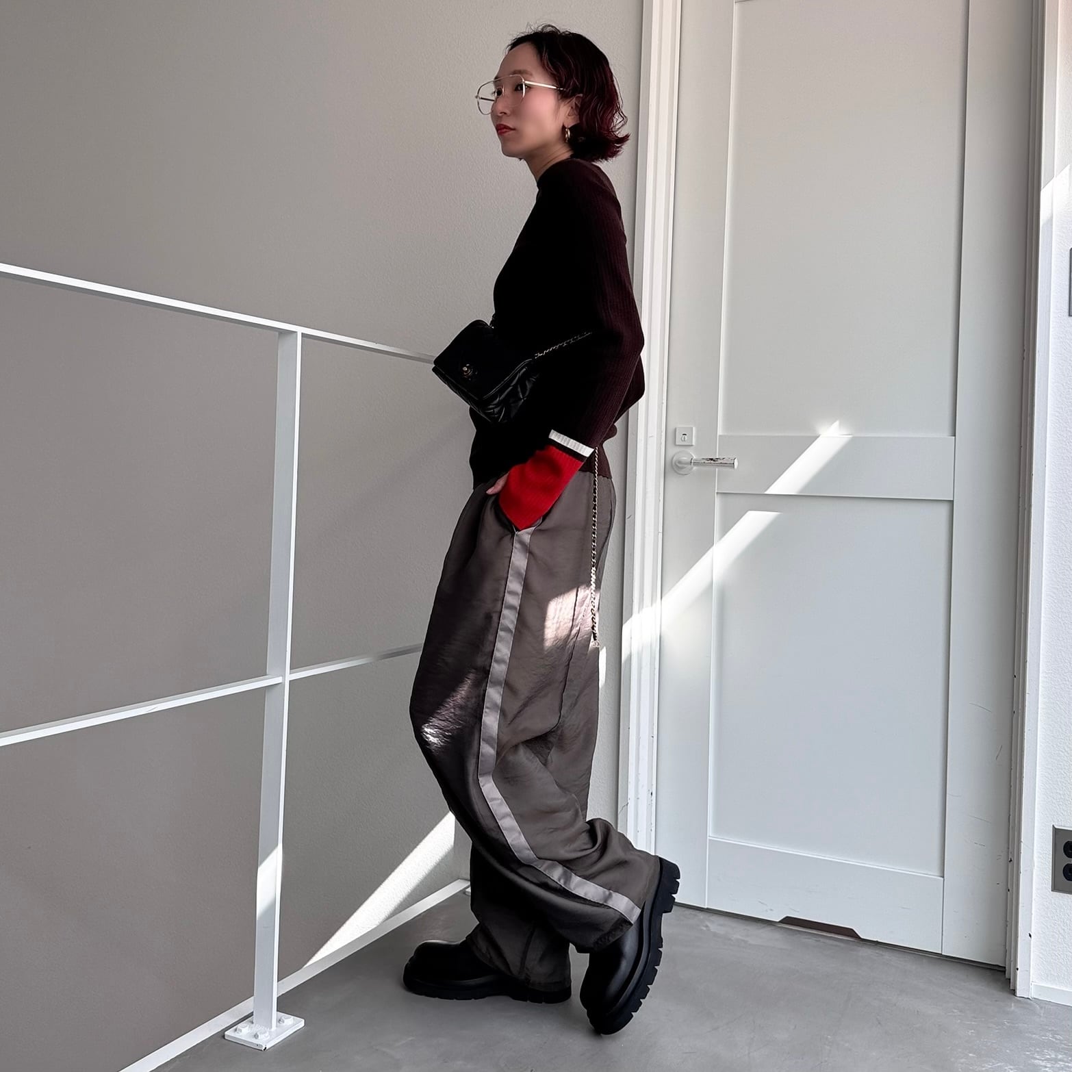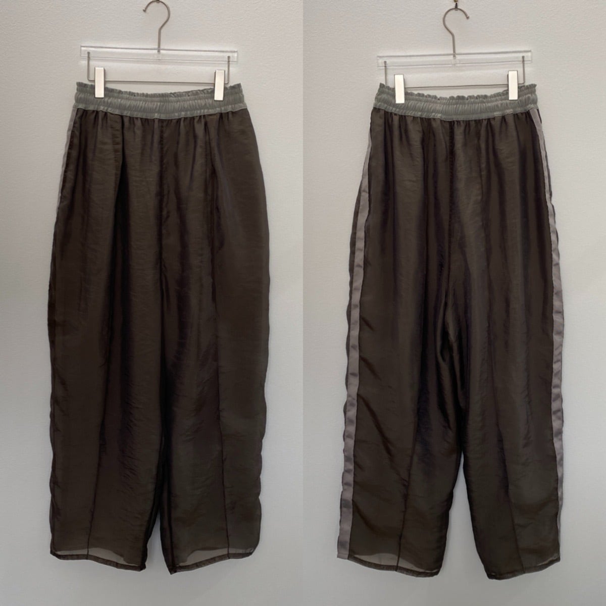 今期トレンドのレイヤードデザインにサイドラインが施されたイージーパンツ。柔らかいシアー素材をドッキングする事により動きのあるアイテムに。ウエストもゴム仕立てなので着心地もバツグンです。ウエスト部分やサイドに施されたラインはあえて別カラーに。股上の深いハイライズデザインなのでゆったりとリラクシーに着用頂けます。