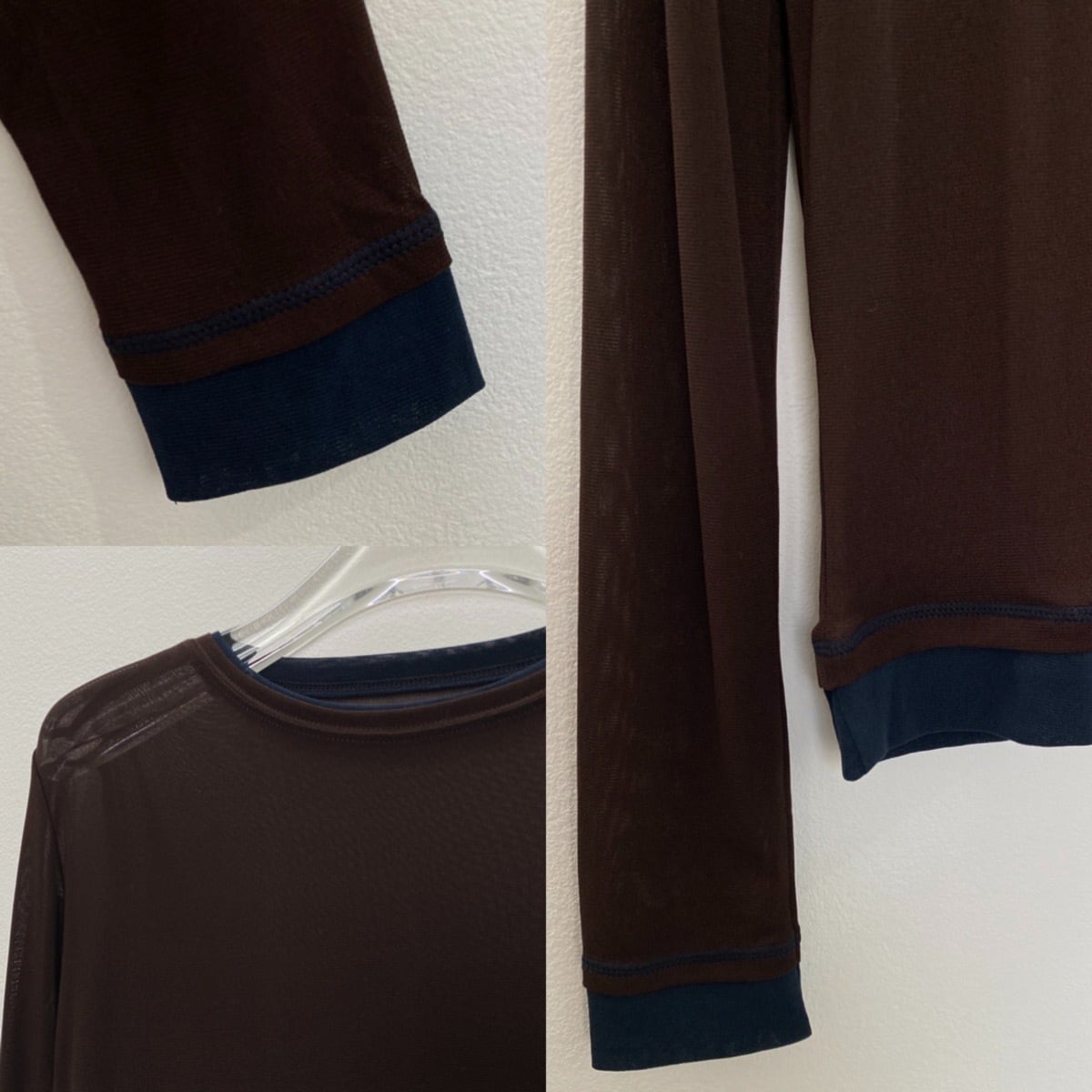 バイカラー切替メッシュtops/ブラウン