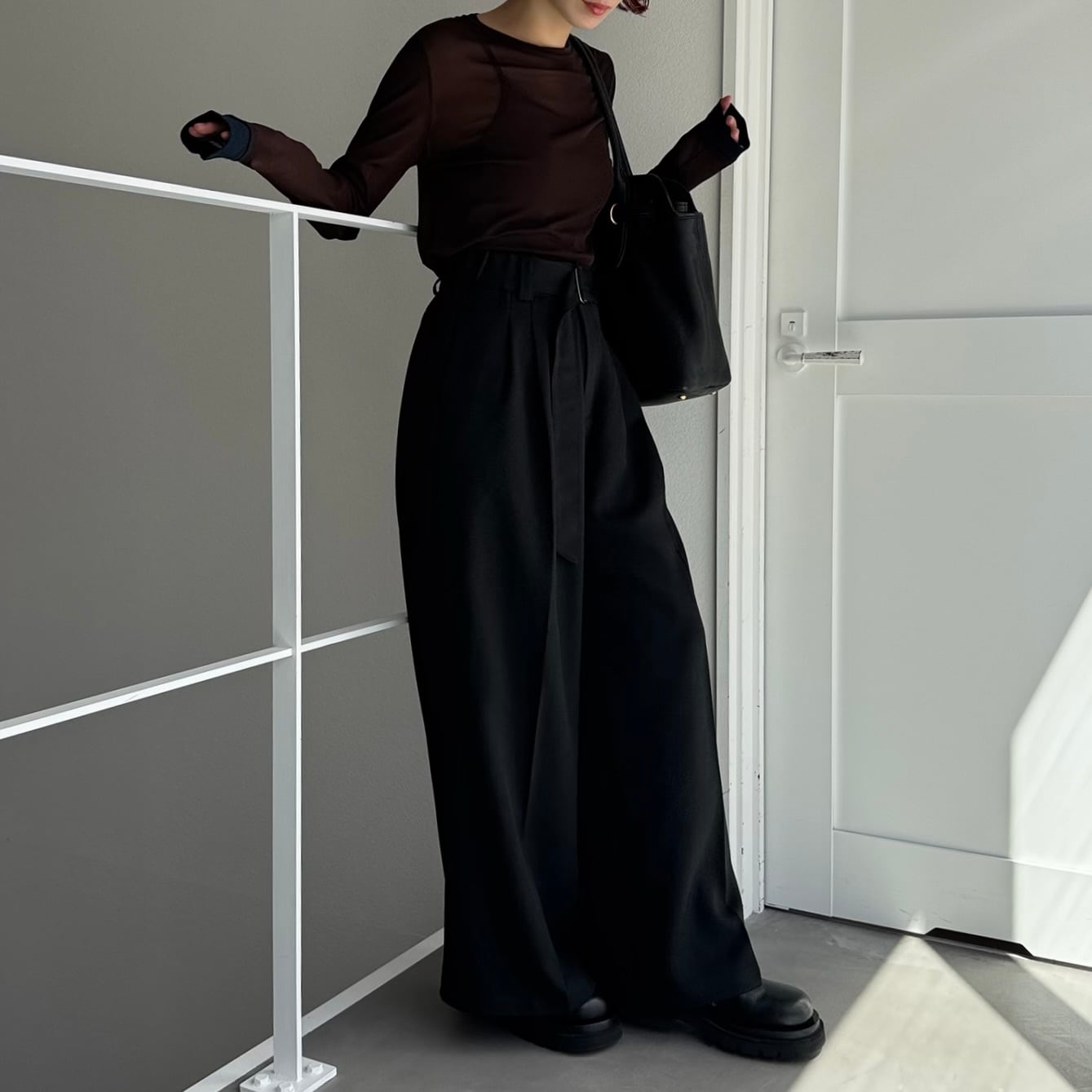 bottom:ベルト付タックワイドPT/ブラック