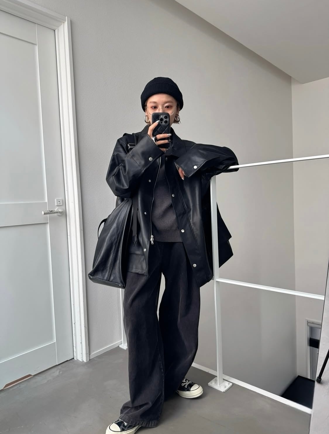 outer:ジップアップエコレザーオーバーJK/ブラック