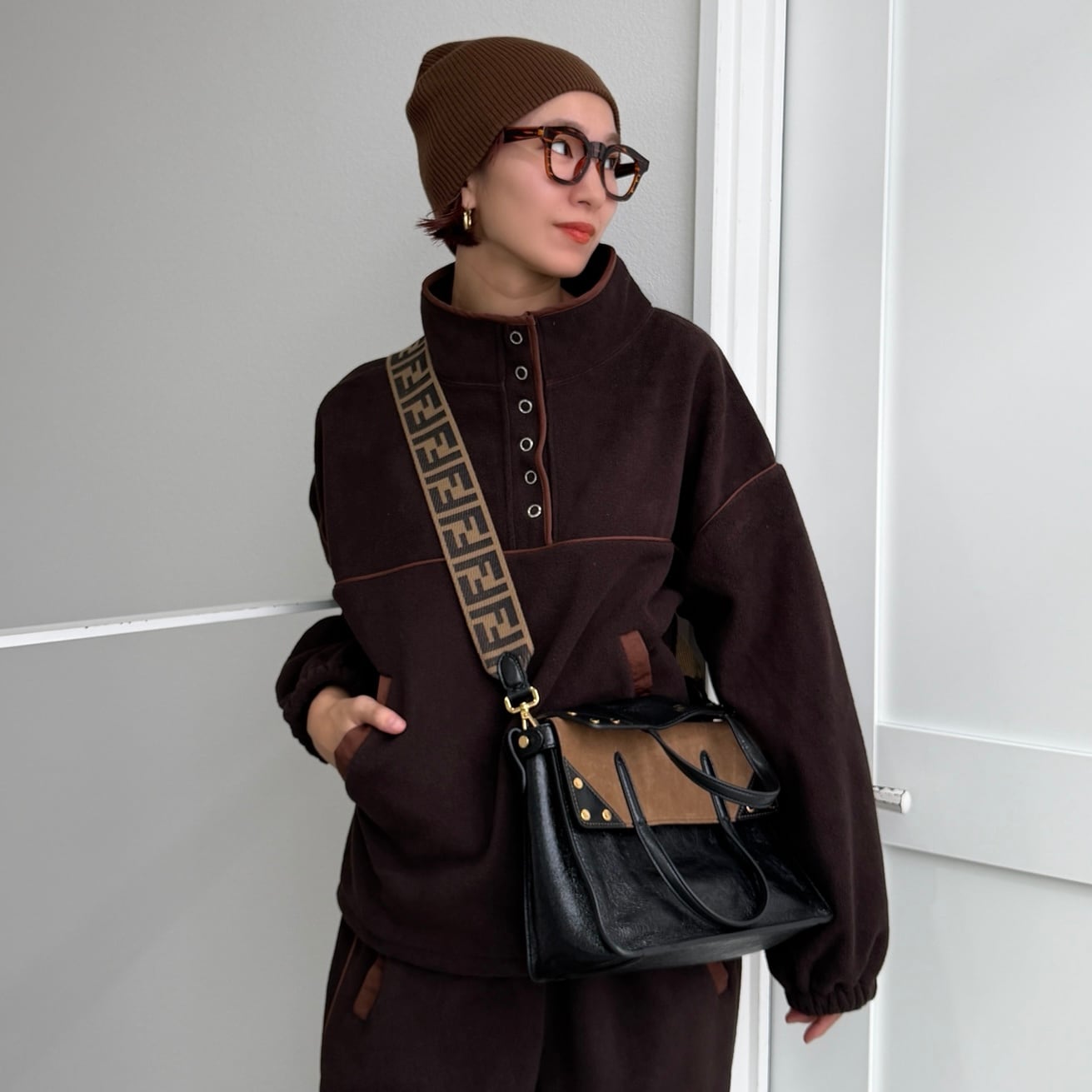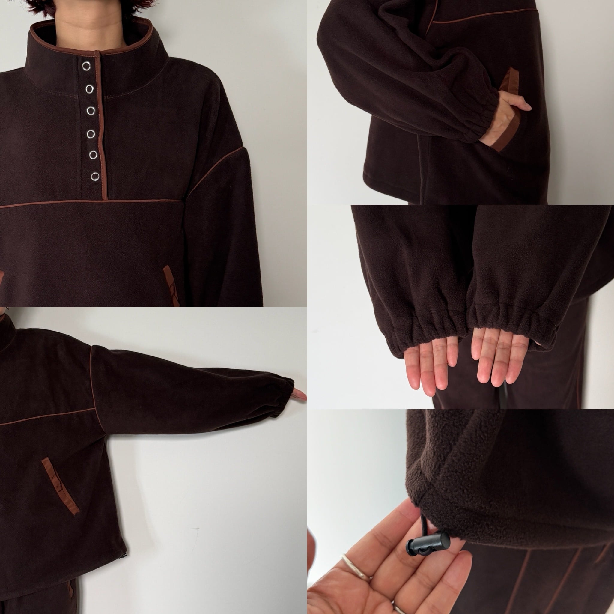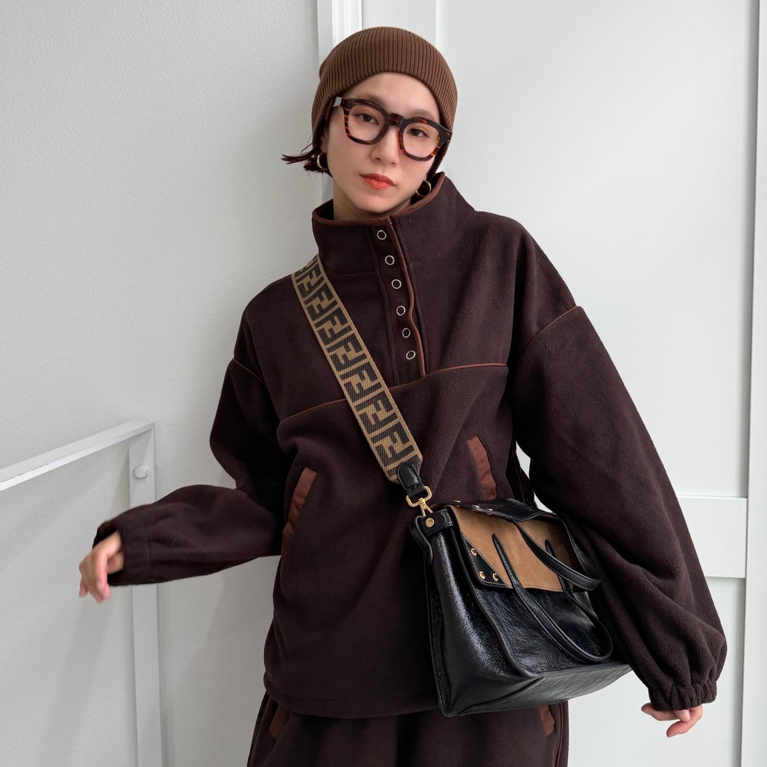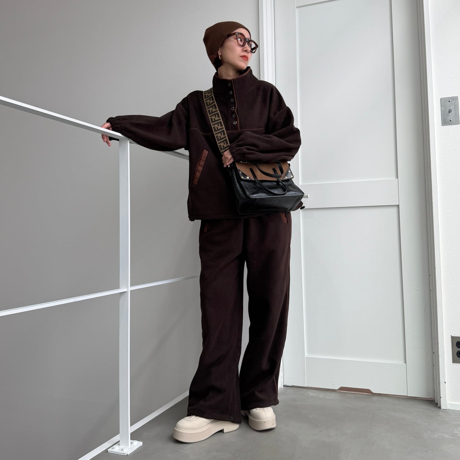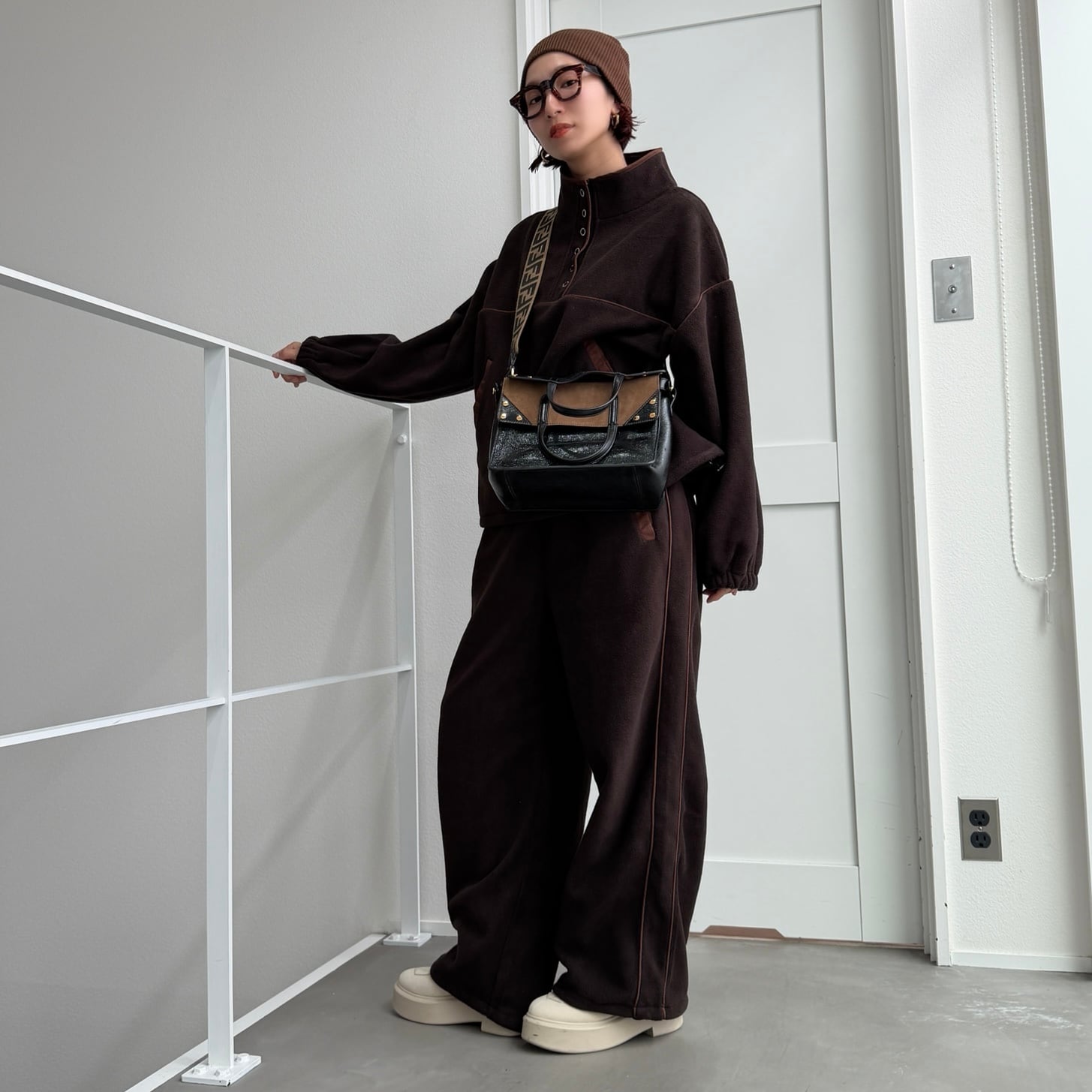 bottom:サイドライン裾ドロストフリースPT/ダークブラウン