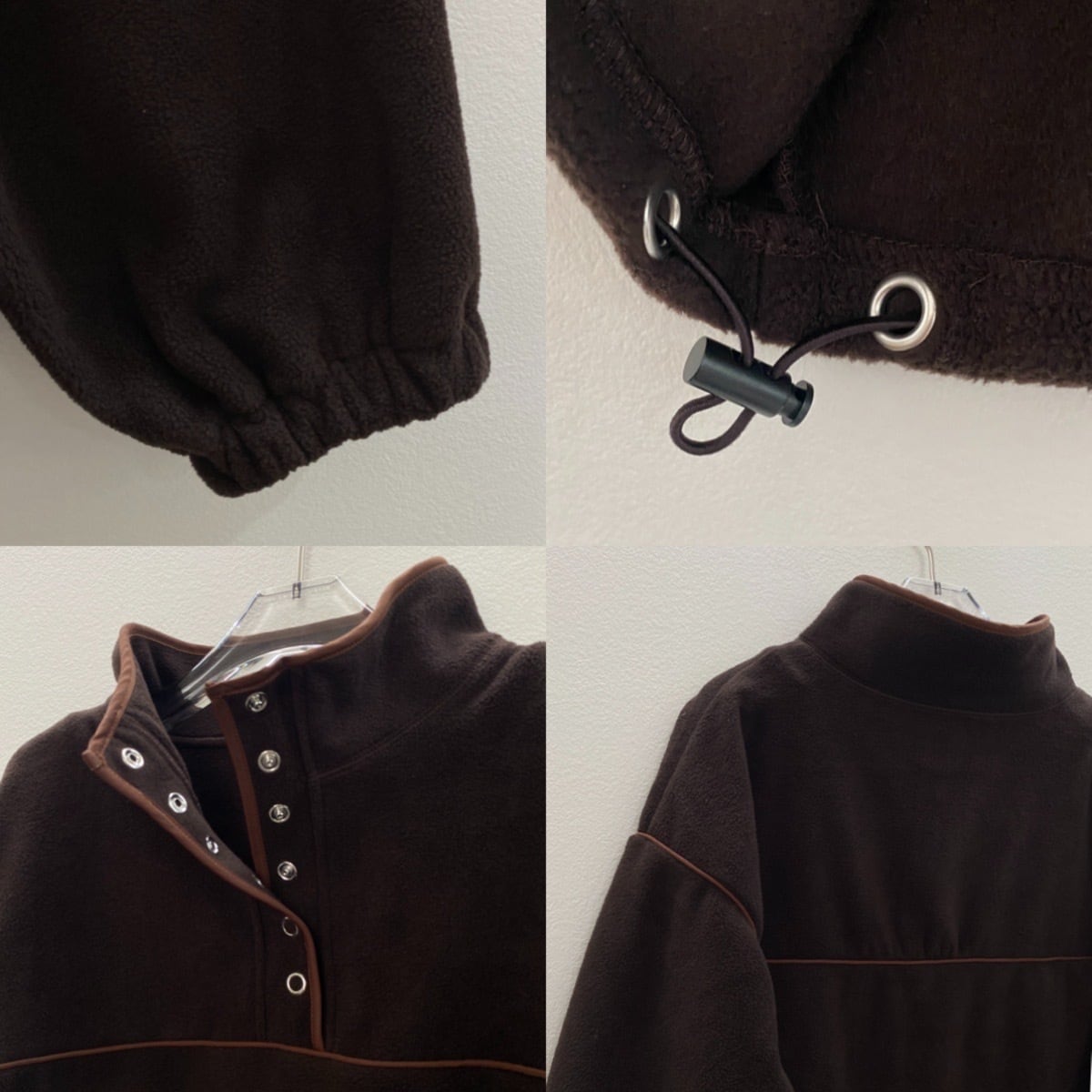 カジュアルながら抜け感たっぷりスナップボタンフリースプルオーバー。柔らかく暖かいフリース素材で、肌触り抜群。ゆったりとしたルーズシルエットでこなれ感◎ 袖はゴム仕様になっていて普段使いからアウトドアまで幅広く活躍するアイテム。便利なポケット付きで裾にはドローコード付きでアレンジが効く1枚です。同生地の[サイドライン裾ドロストフリースPT]とのSET UPコーデもおすすめ。