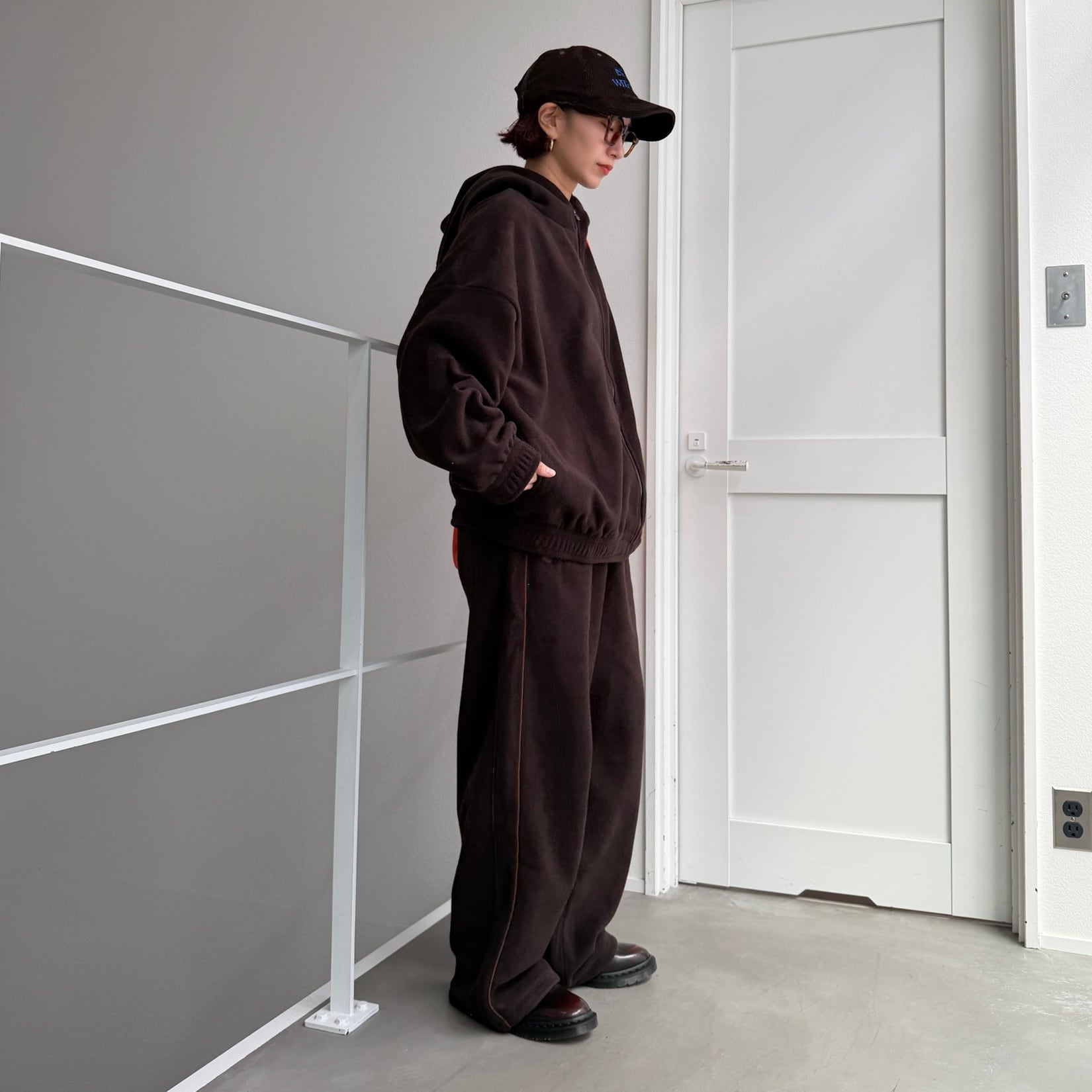 bottom:サイドライン裾ドロストフリースPT/ダークブラウン