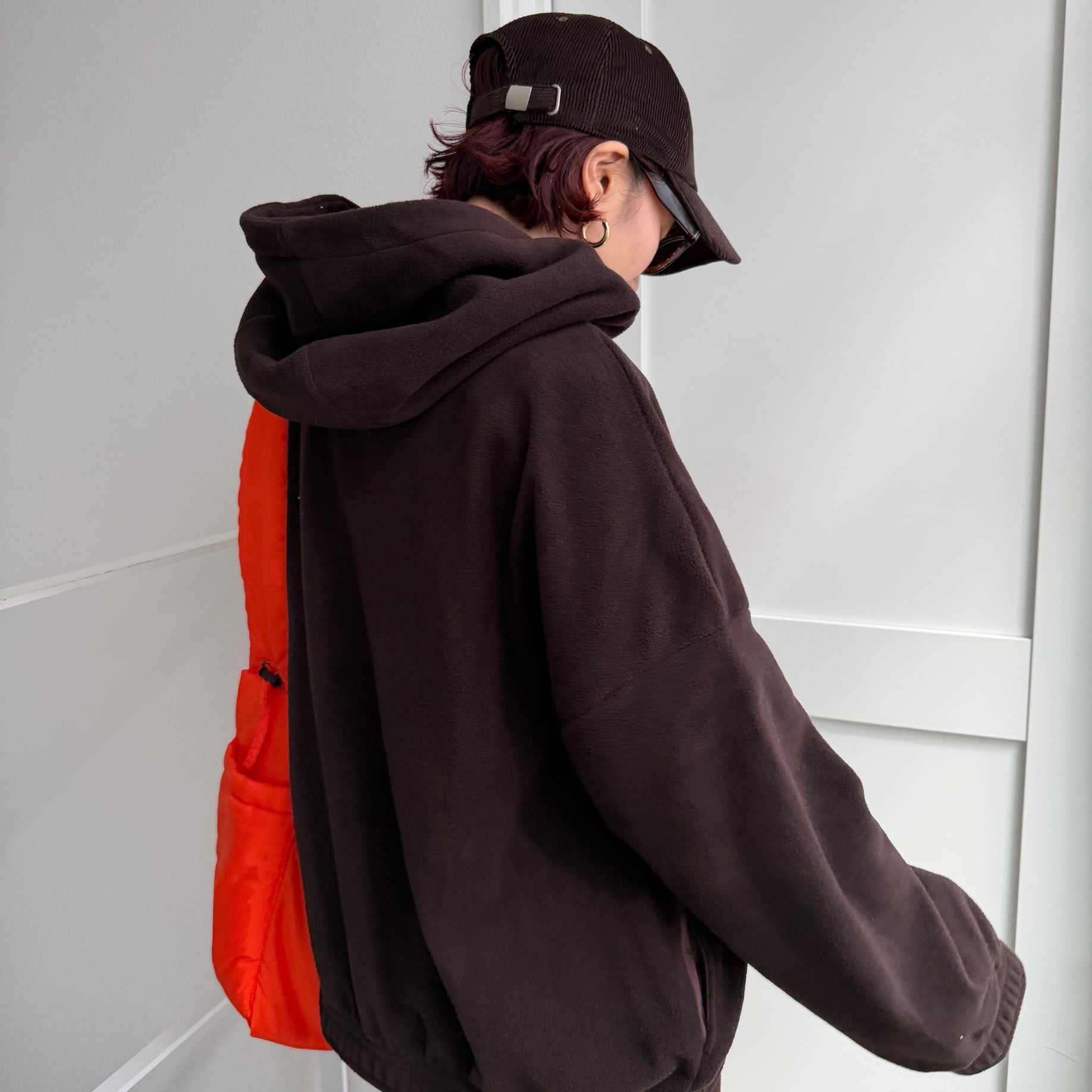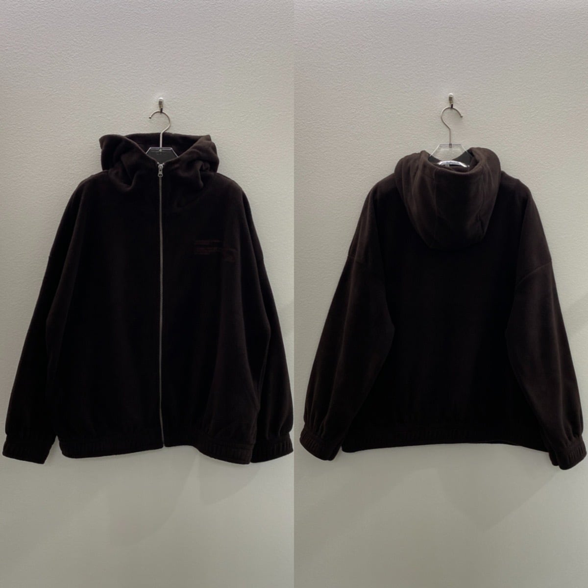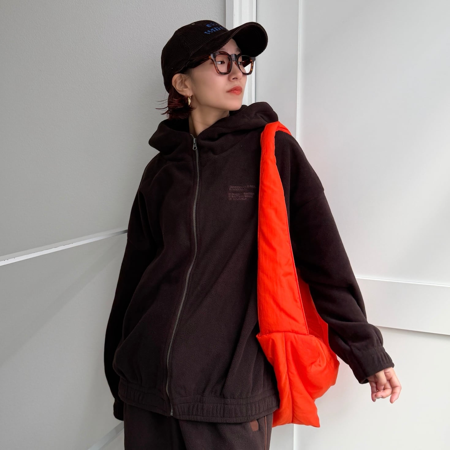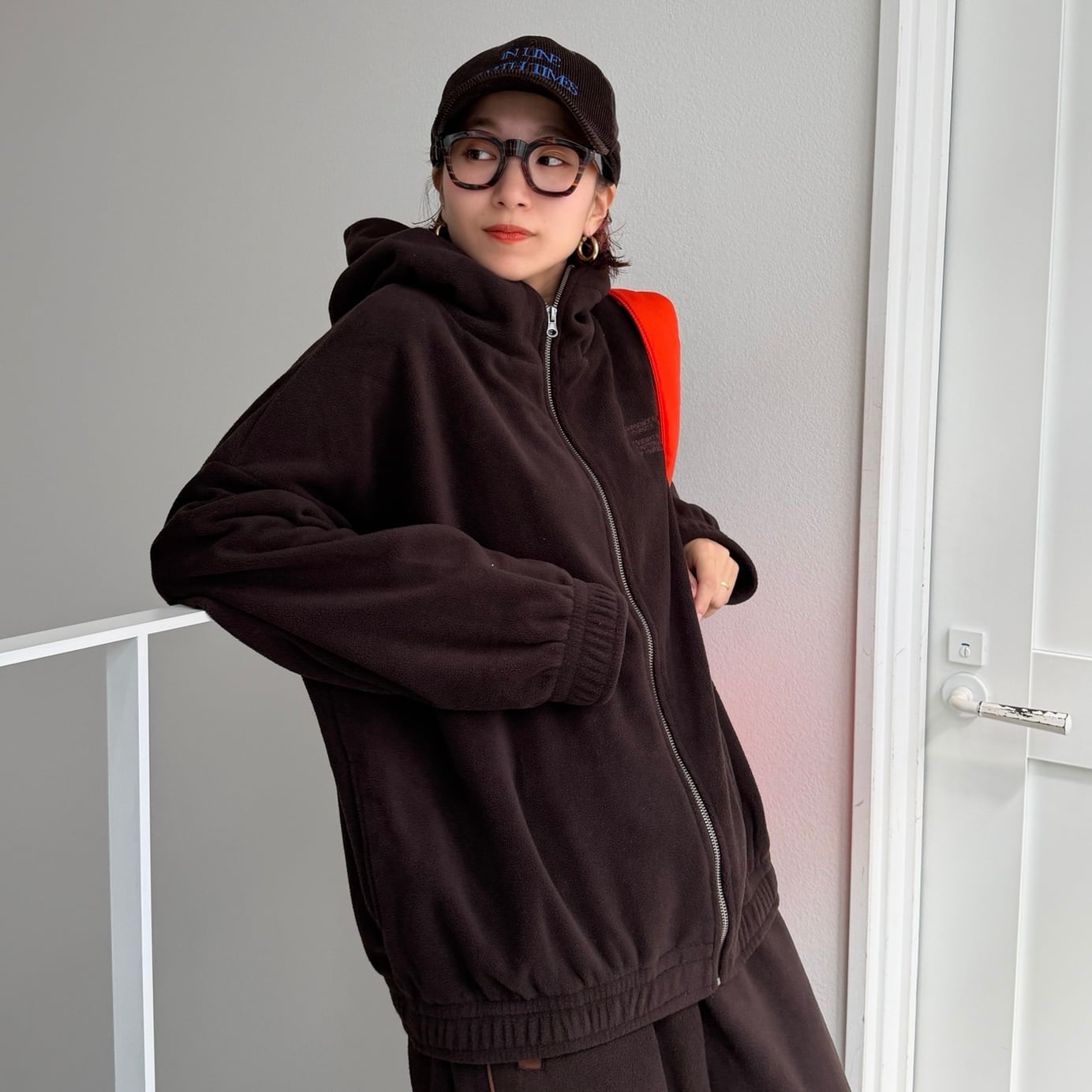 レタリング刺繍がアクセントになったフリースジップパーカー。フロントに施されたレタリング刺繍が、シンプルながらもおしゃれな印象に。軽くて柔らかなフリース素材が保温性と快適な着心地を両立。ドロップショルダーとゆったり広めの身幅で、体を包み込むようなオーバーサイズ感が魅力。フロントはジップ仕様で着脱しやすく、フード付きで防寒性も◎