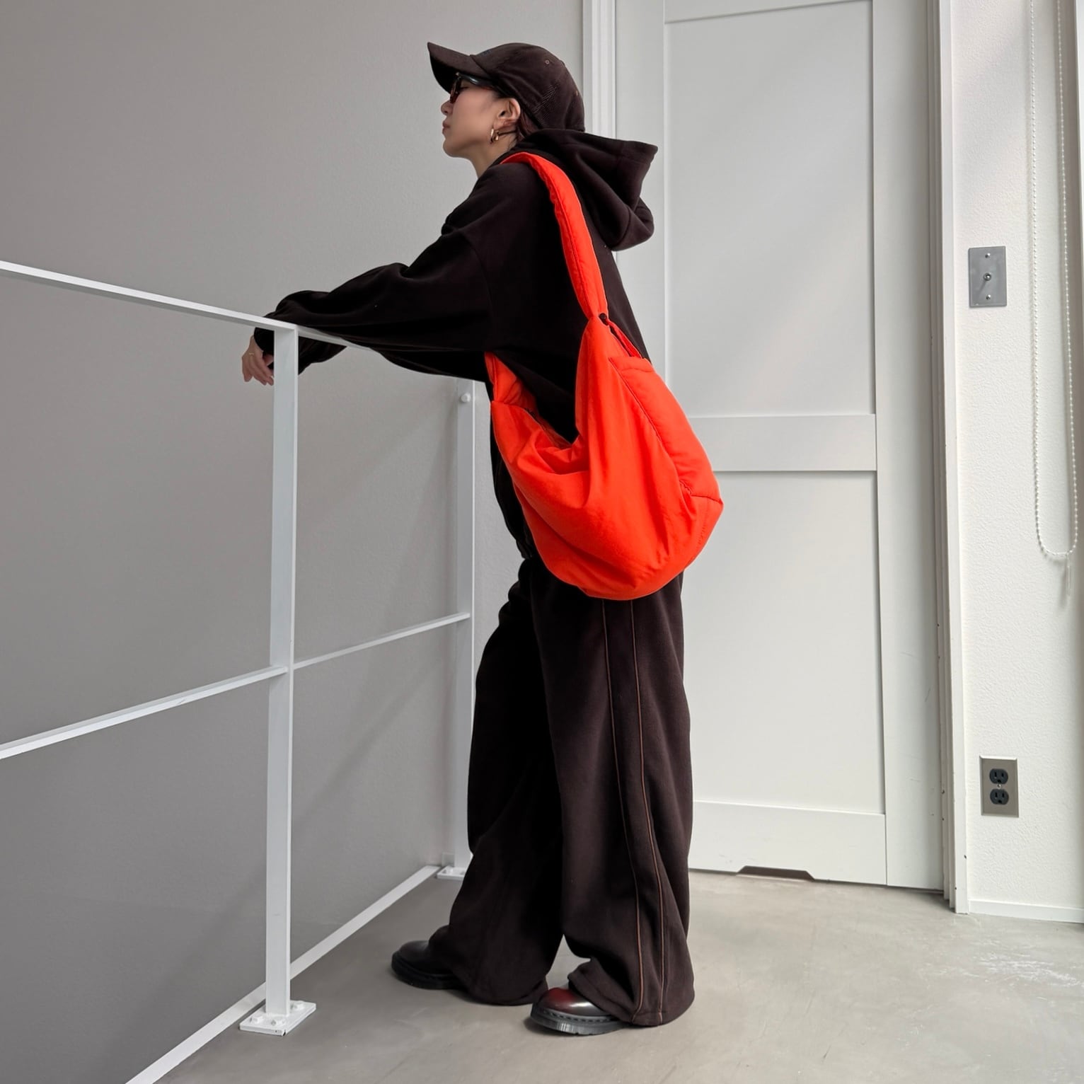 同生地の[サイドライン裾ドロストフリースPT]とのSET UPコーデもおすすめ。